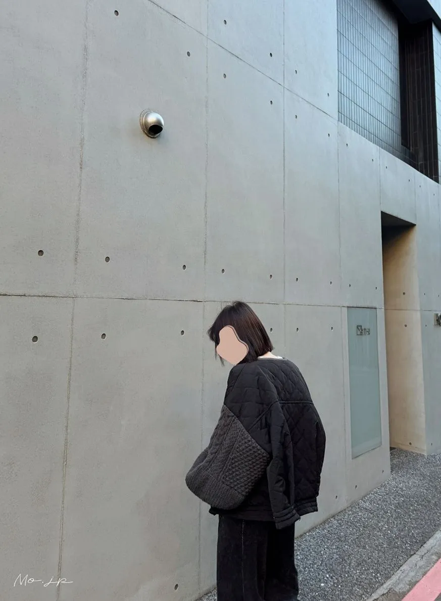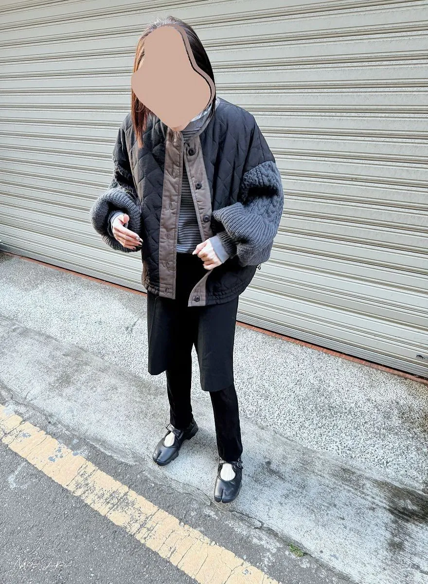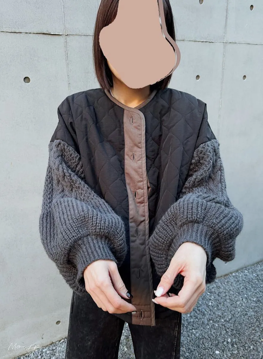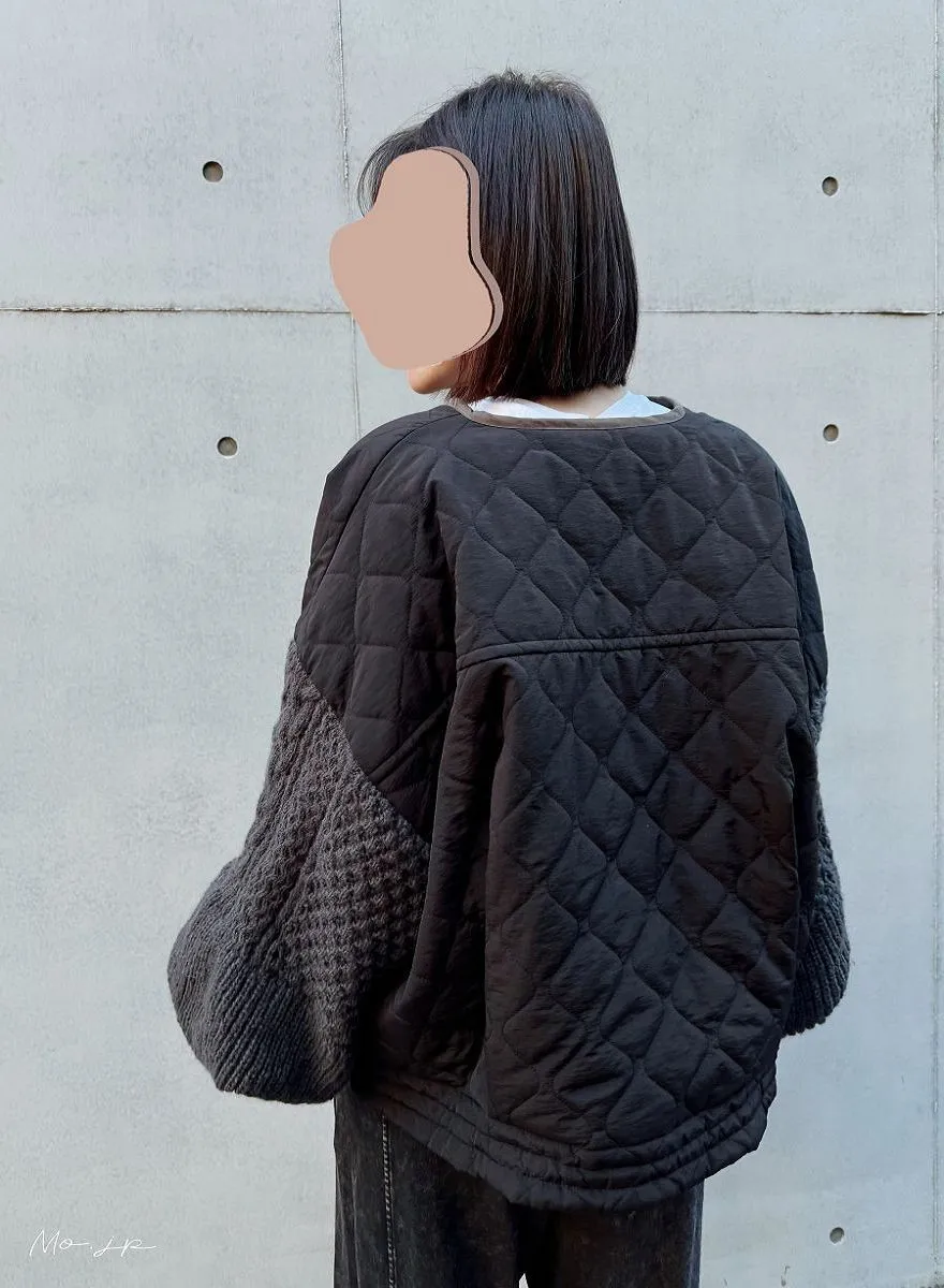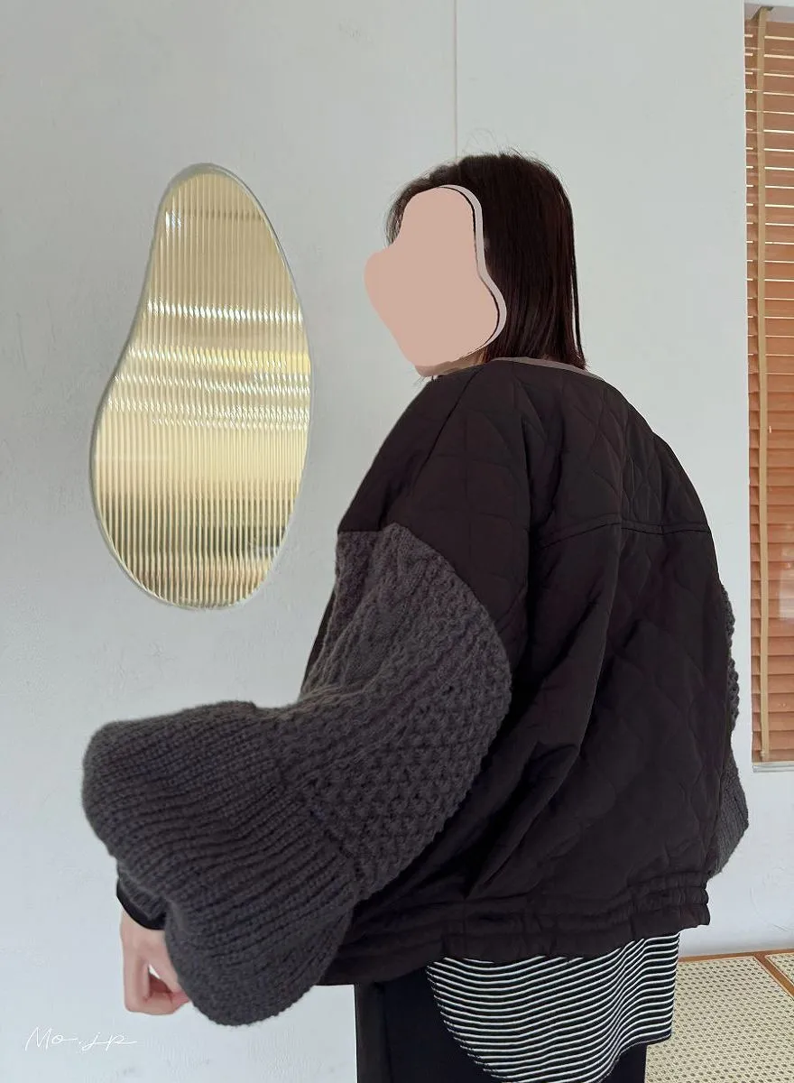 厚實手勾麻花針織拼接立體立體絎縫大衣
