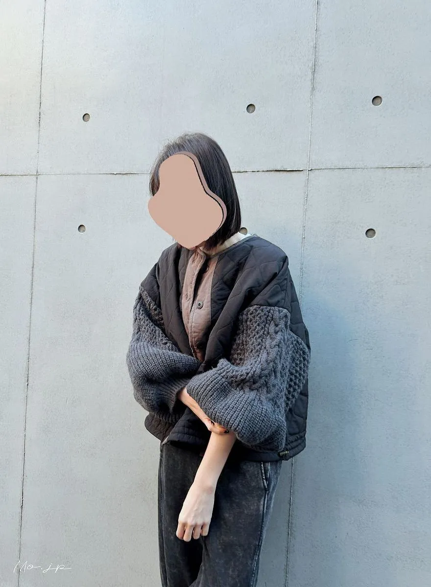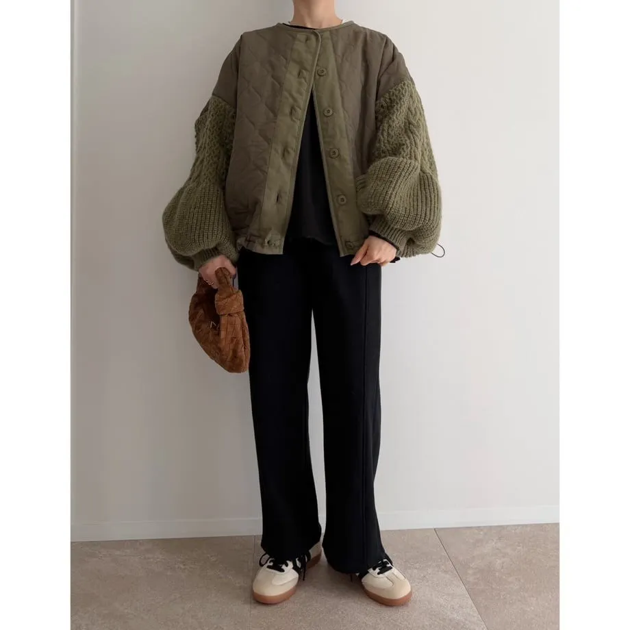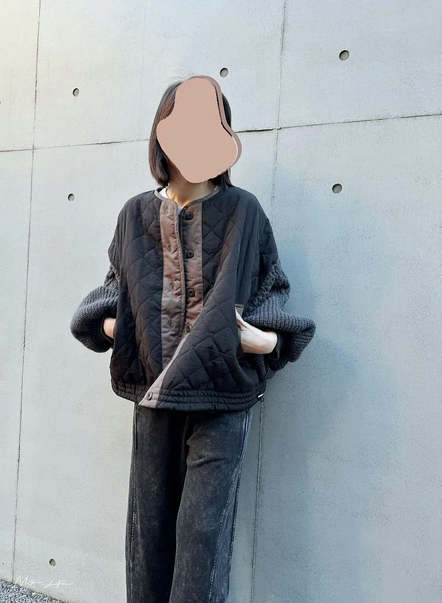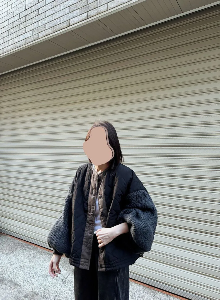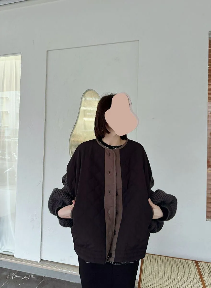 厚實手勾麻花針織拼接立體立體絎縫大衣