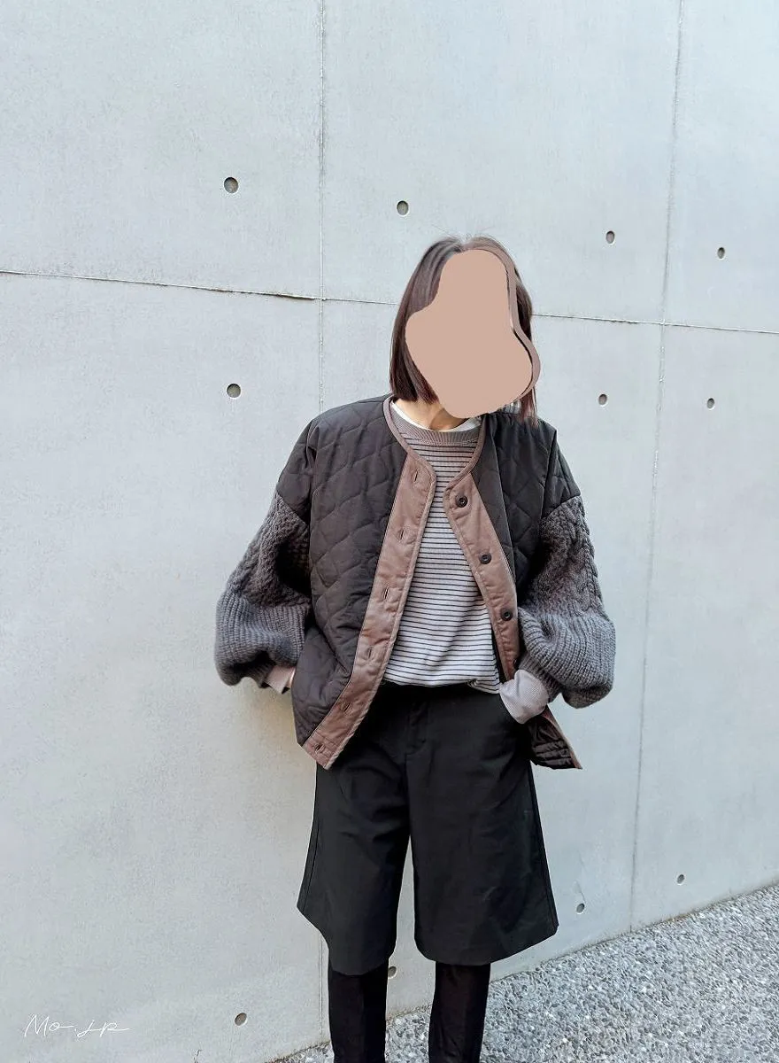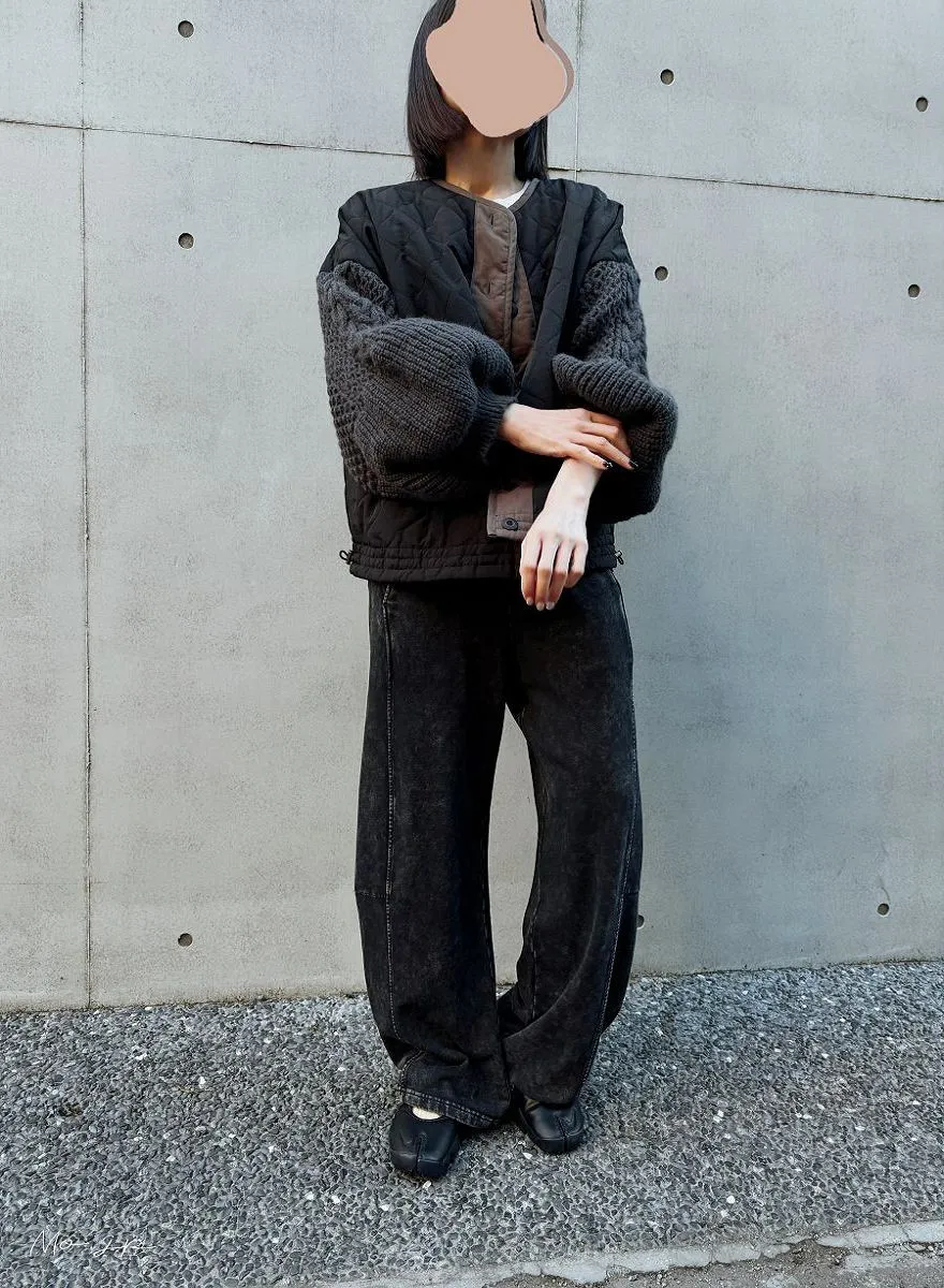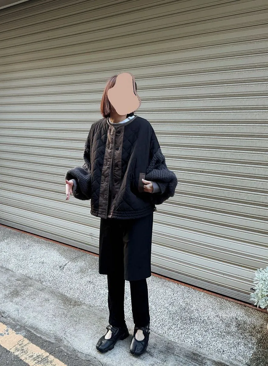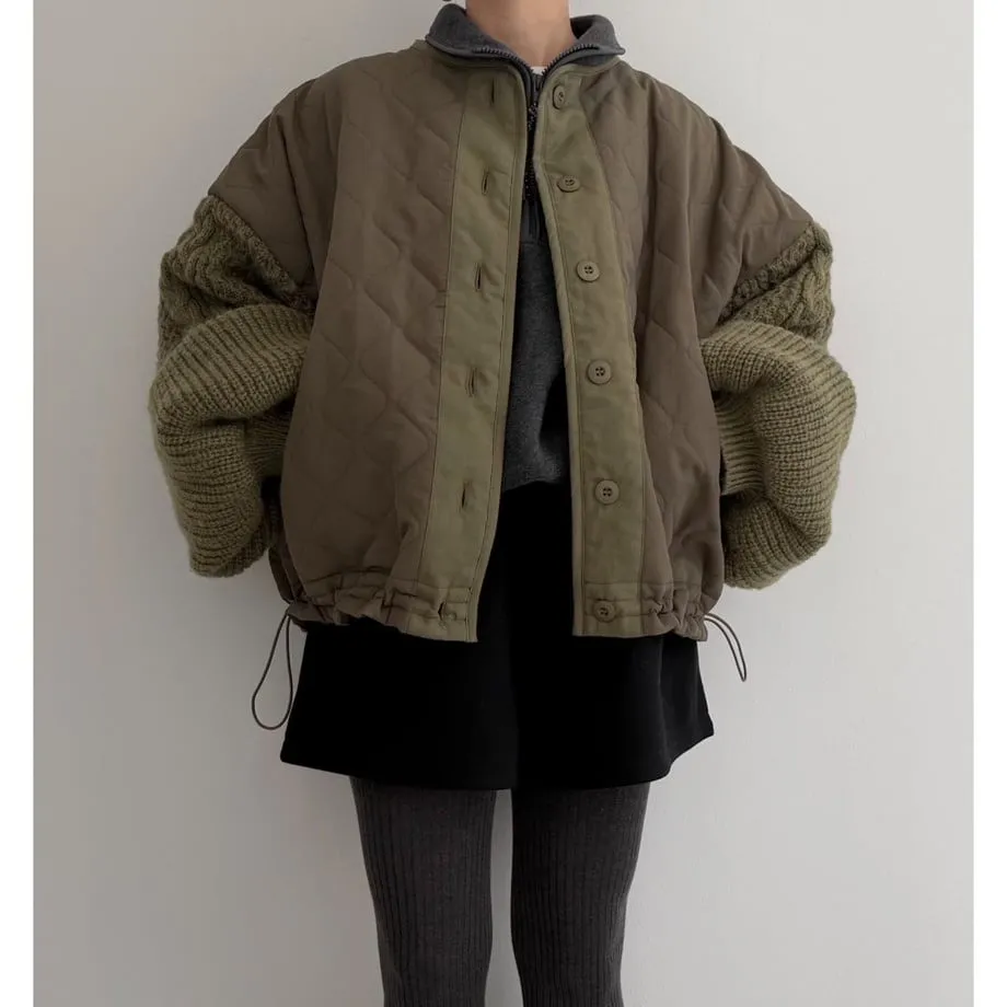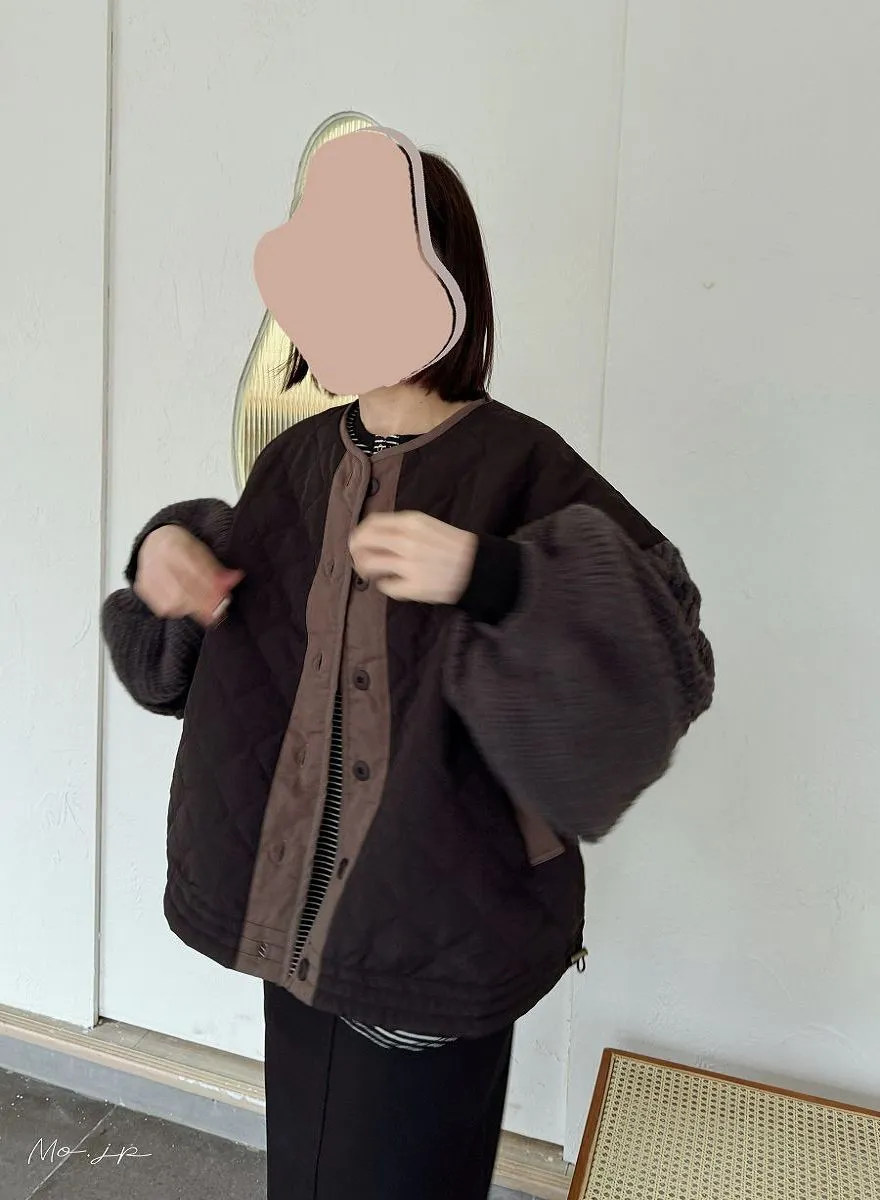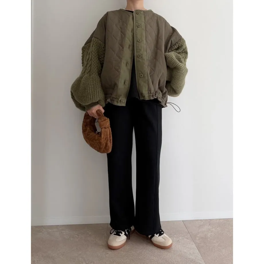 厚實手勾麻花針織拼接立體立體絎縫大衣