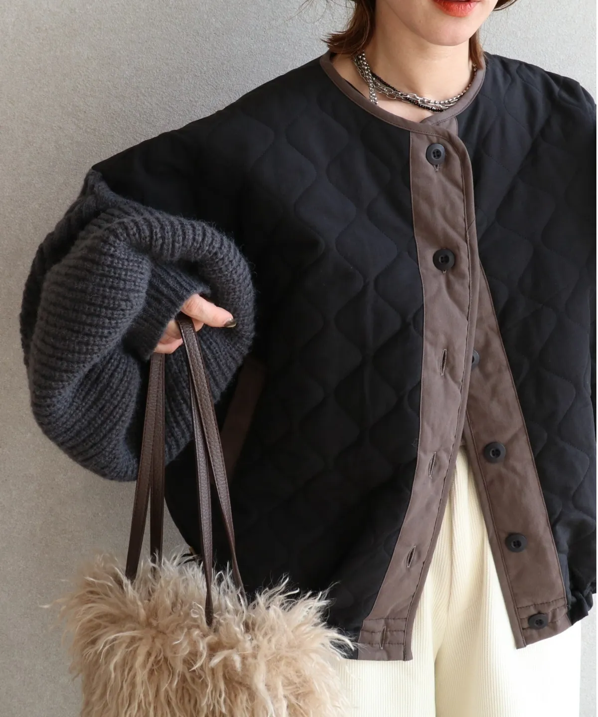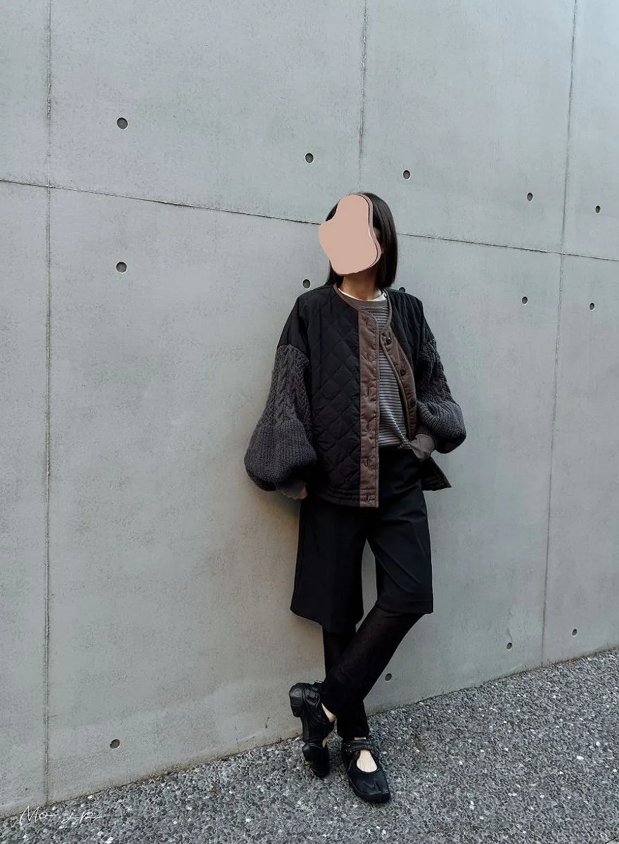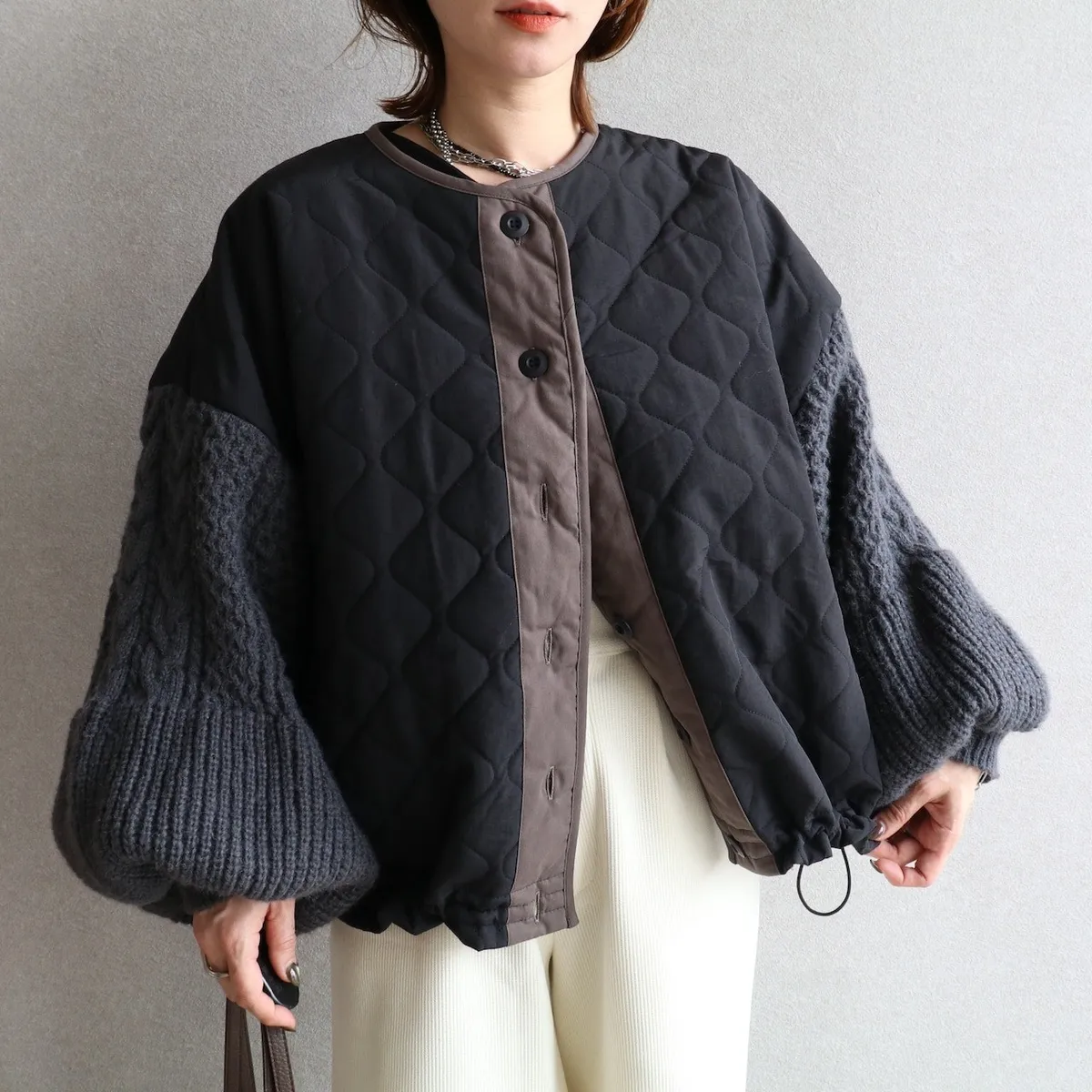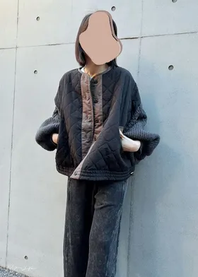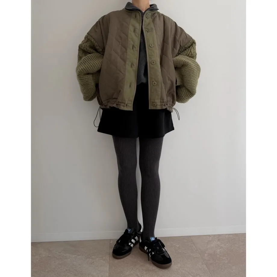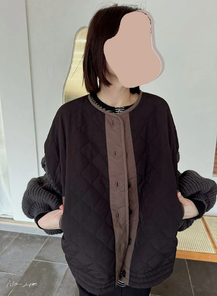 厚實手勾麻花針織拼接立體立體絎縫大衣