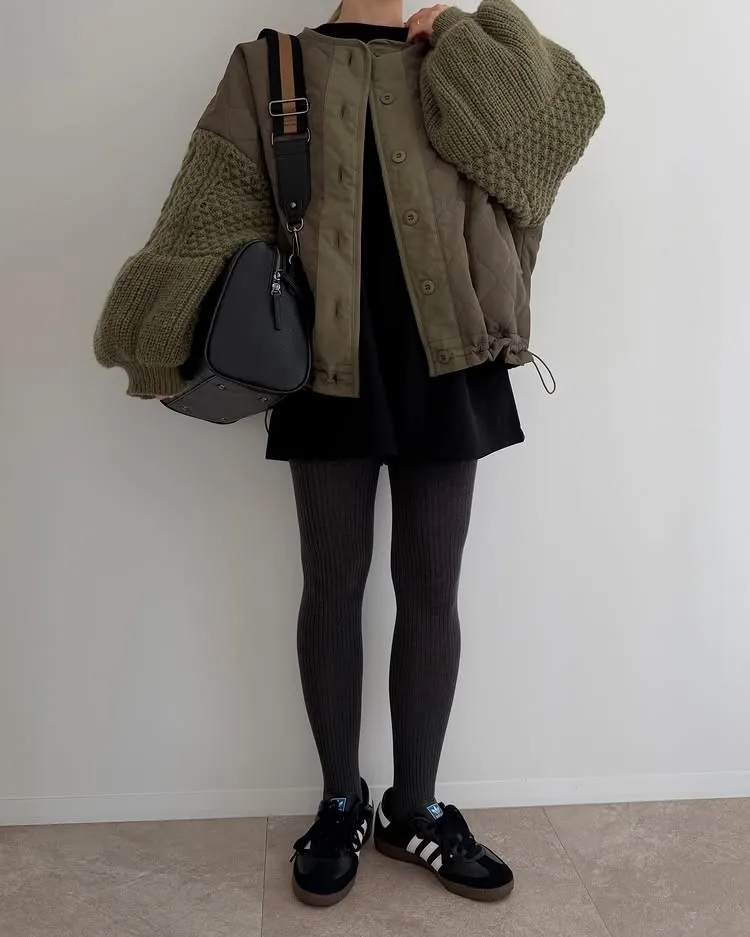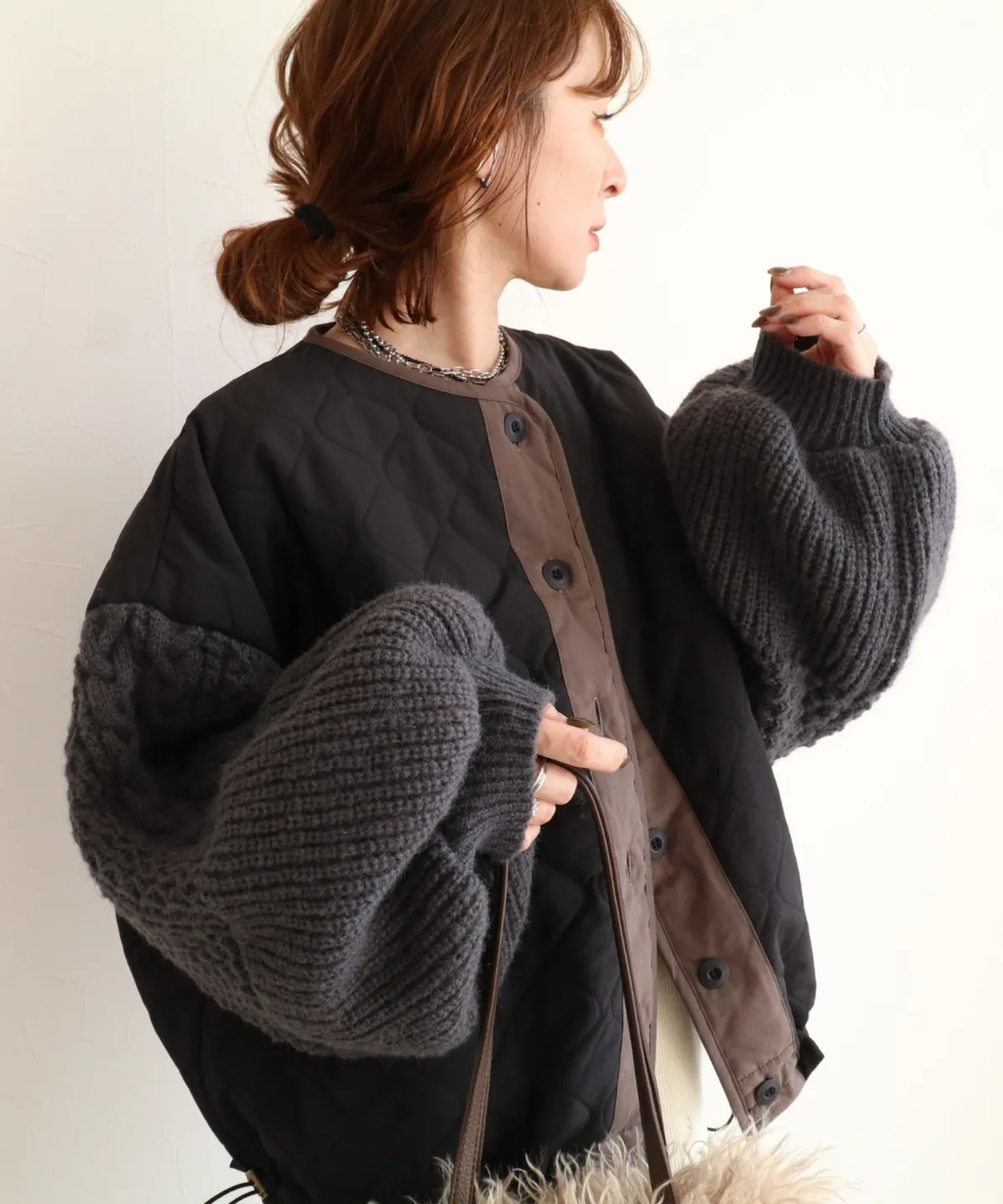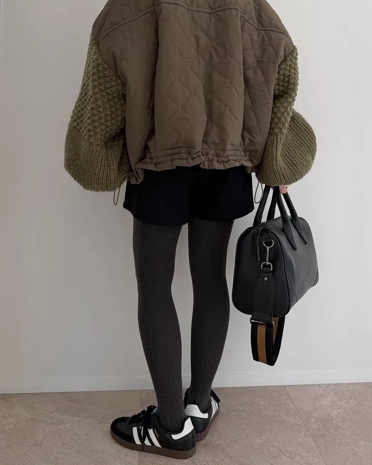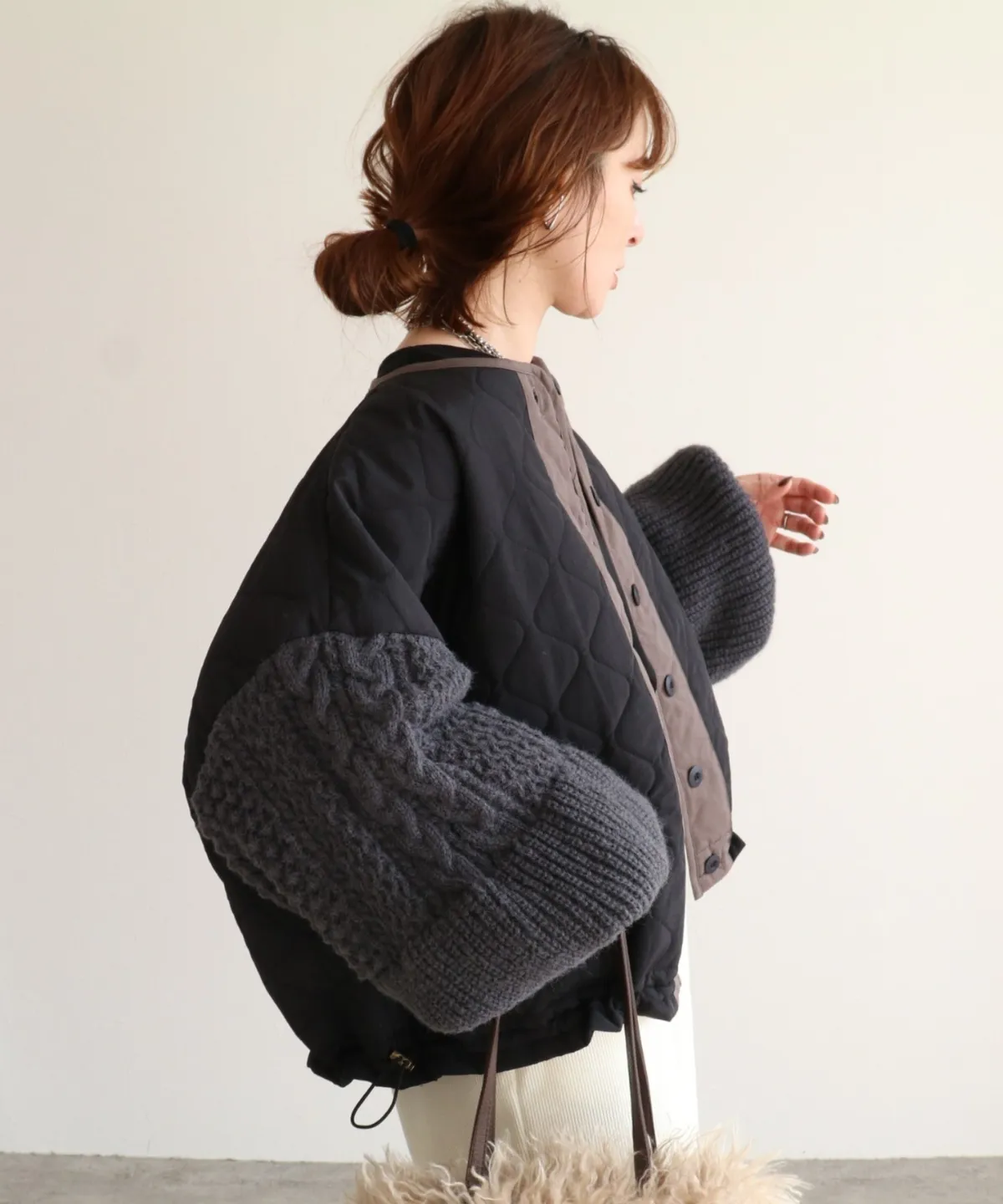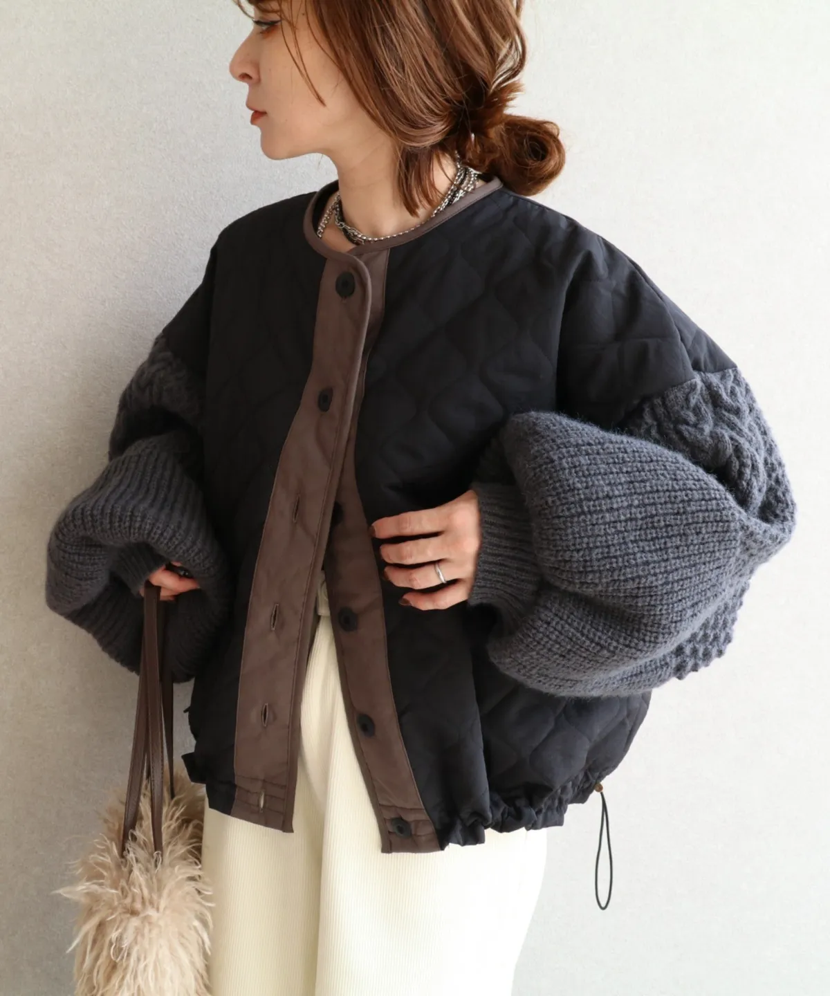 厚實手勾麻花針織拼接立體立體絎縫大衣