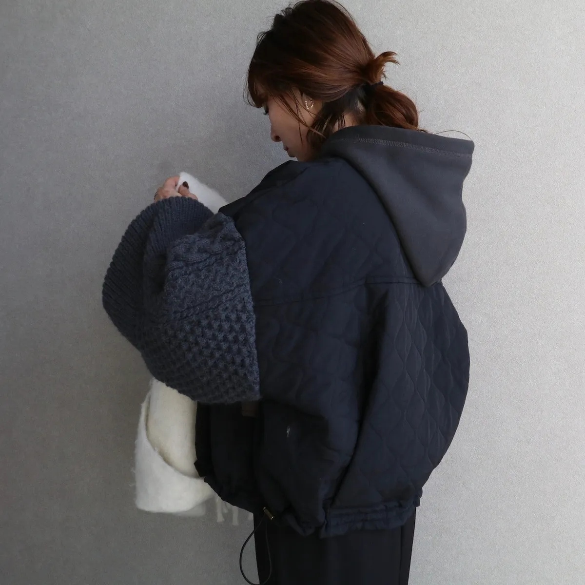 而且手部的寬鬆度~搭配大帽TEE.大毛衣也完全不會卡!!