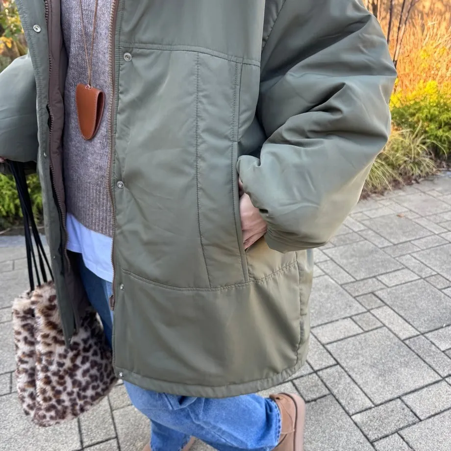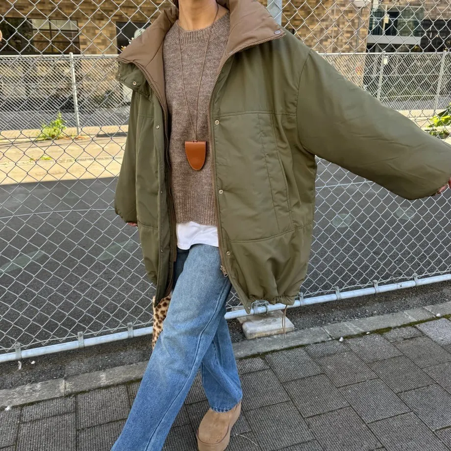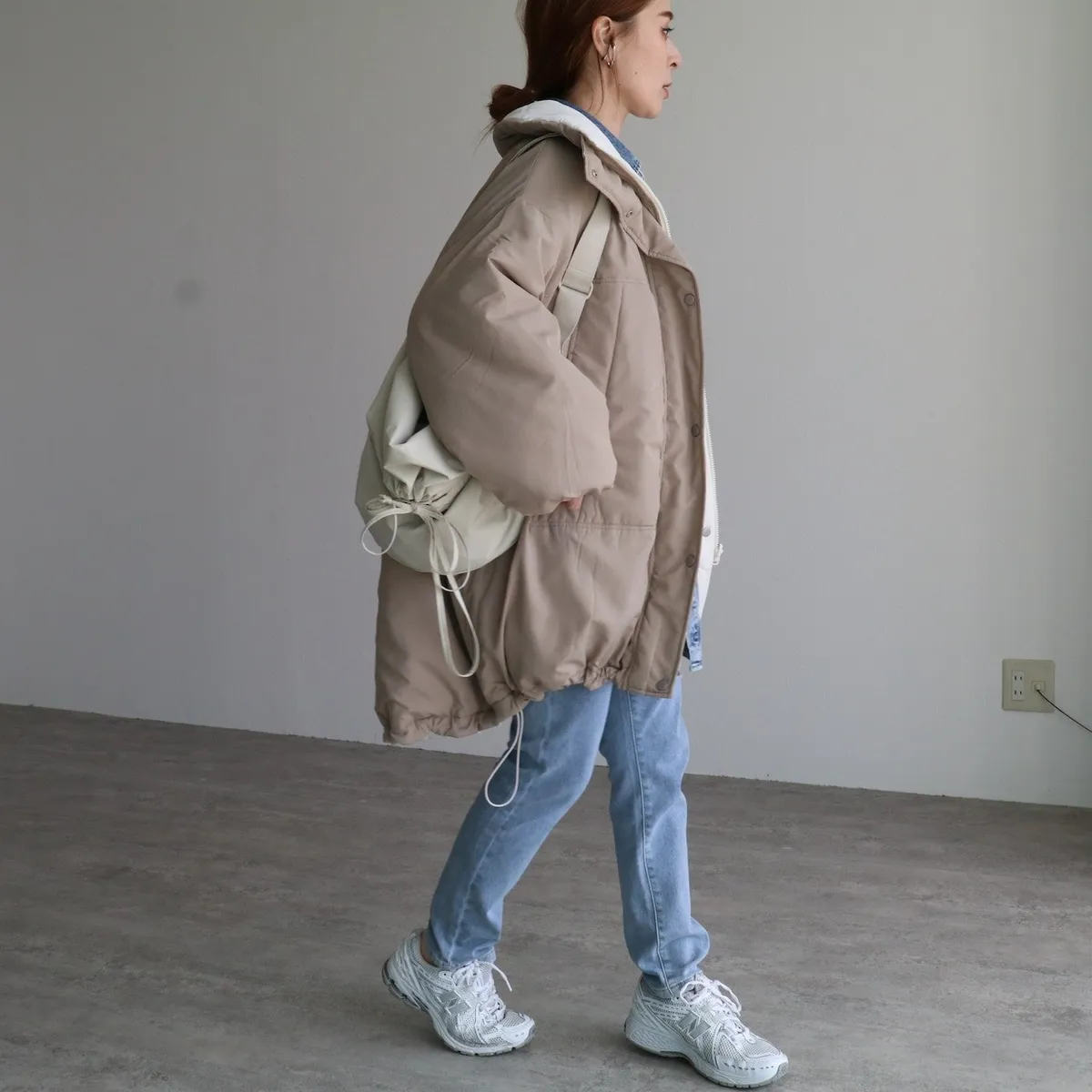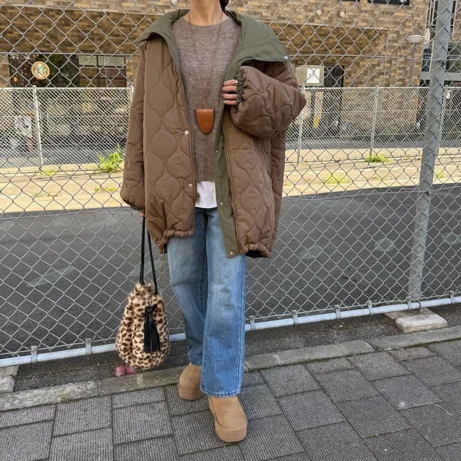整件版型寬鬆感~即使內搭極厚單品也完全沒問題