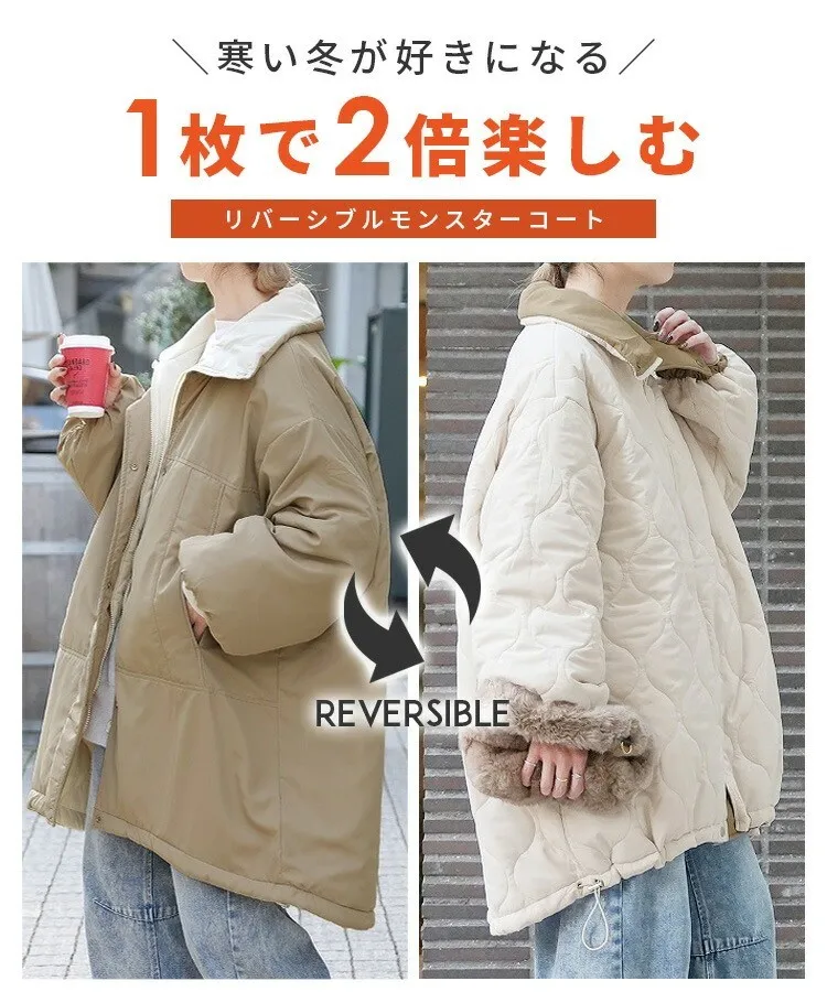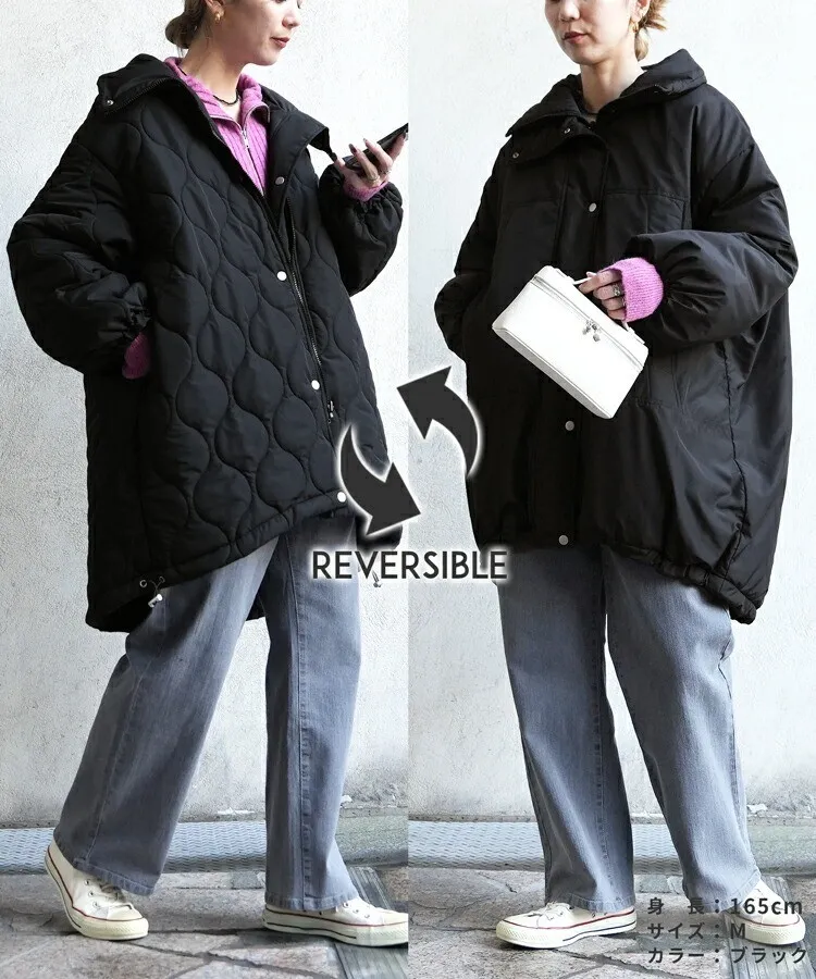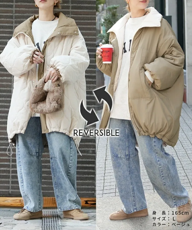 雙面著用~一面是絎縫面料一面是素面~一件有2種風格