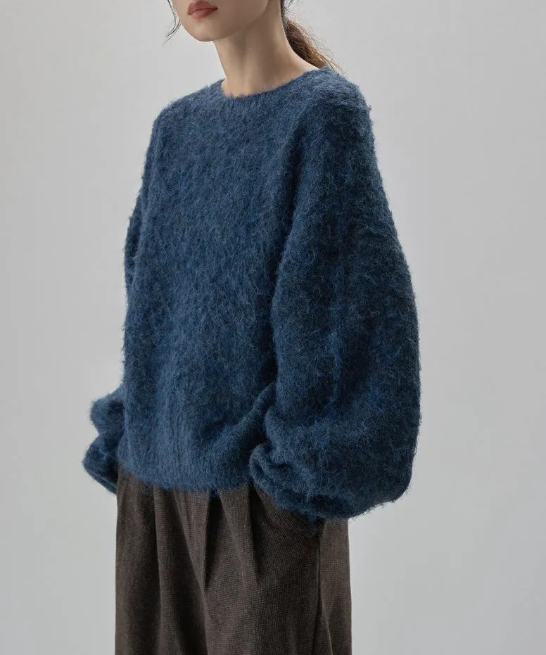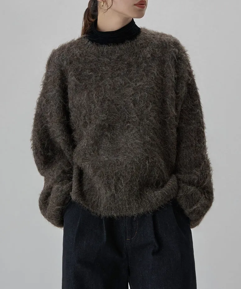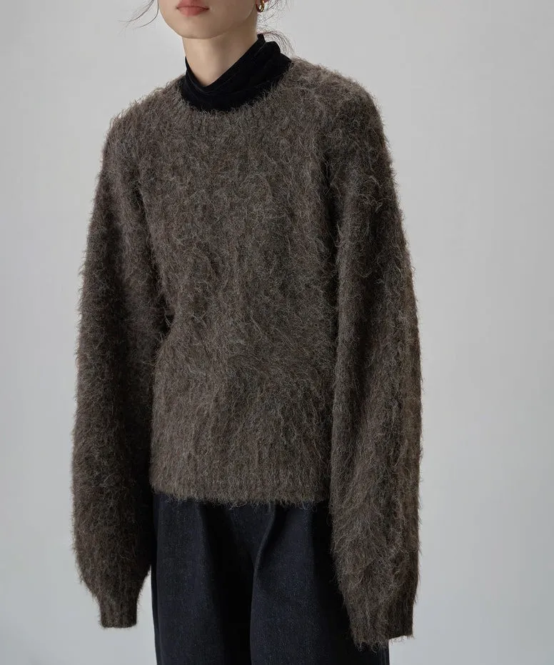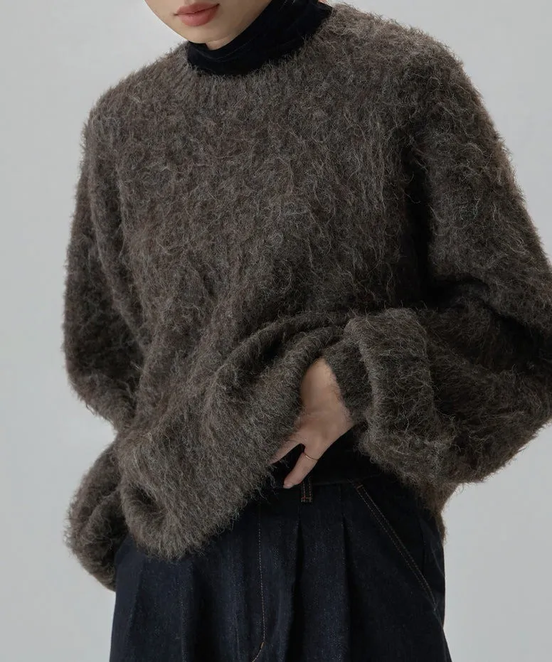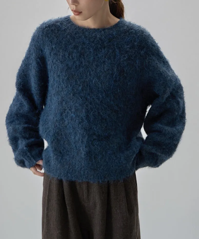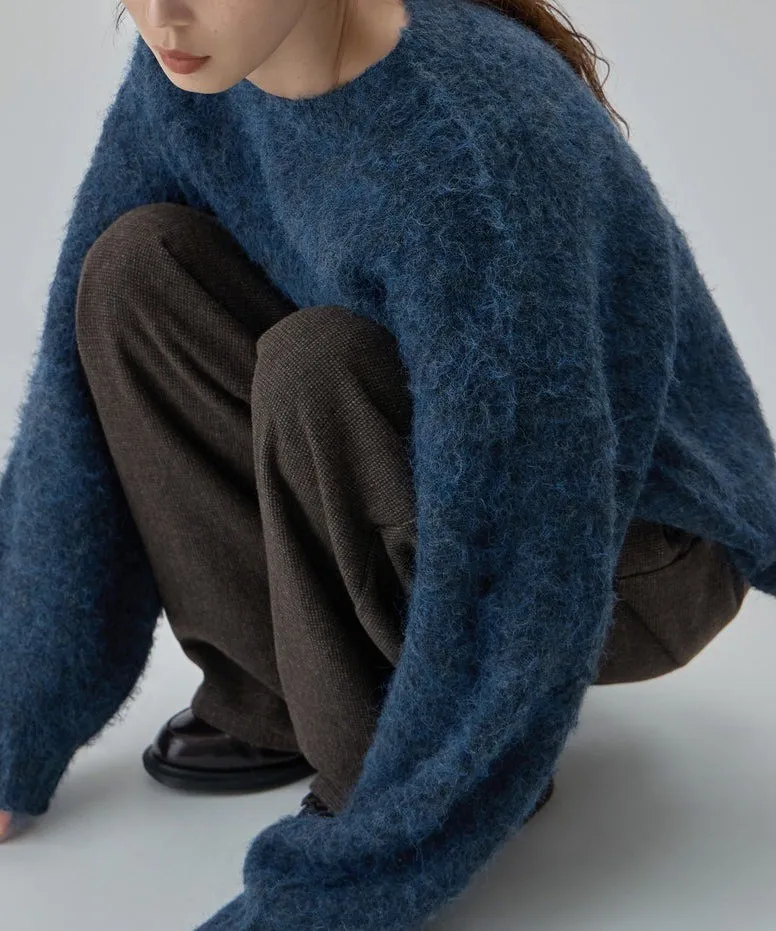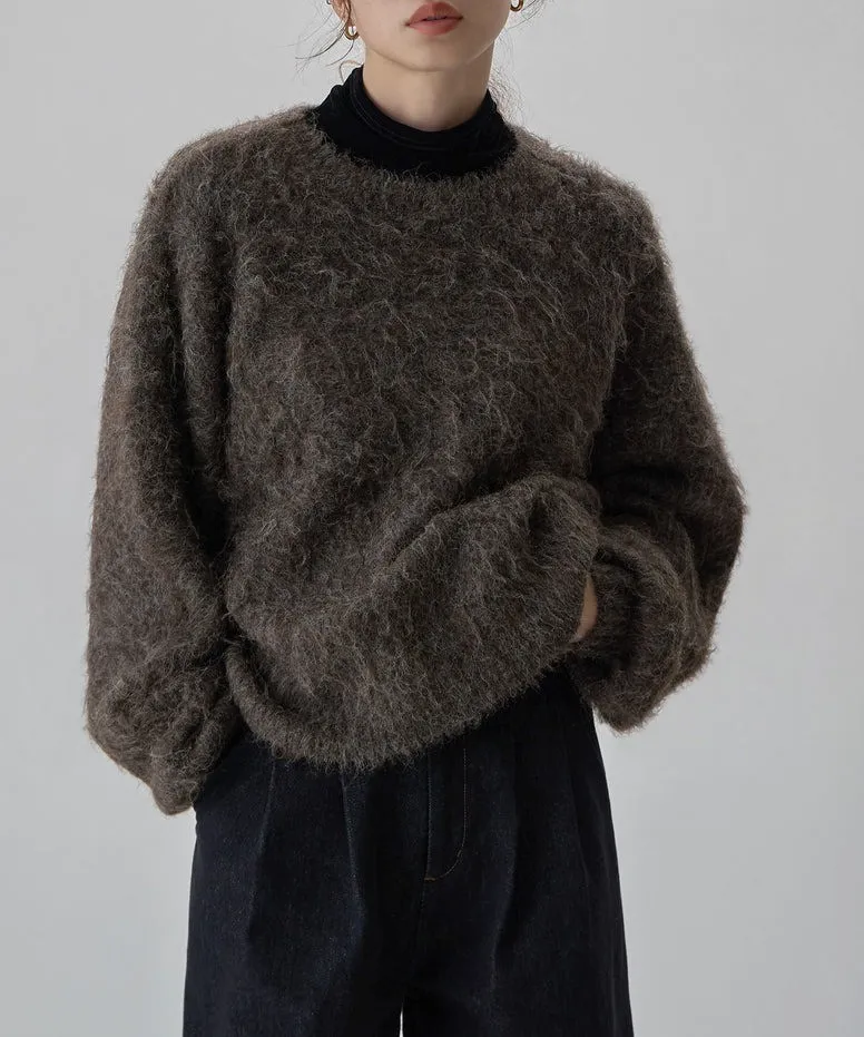 混羊毛~簡約圓領低彩度毛海質感毛衣