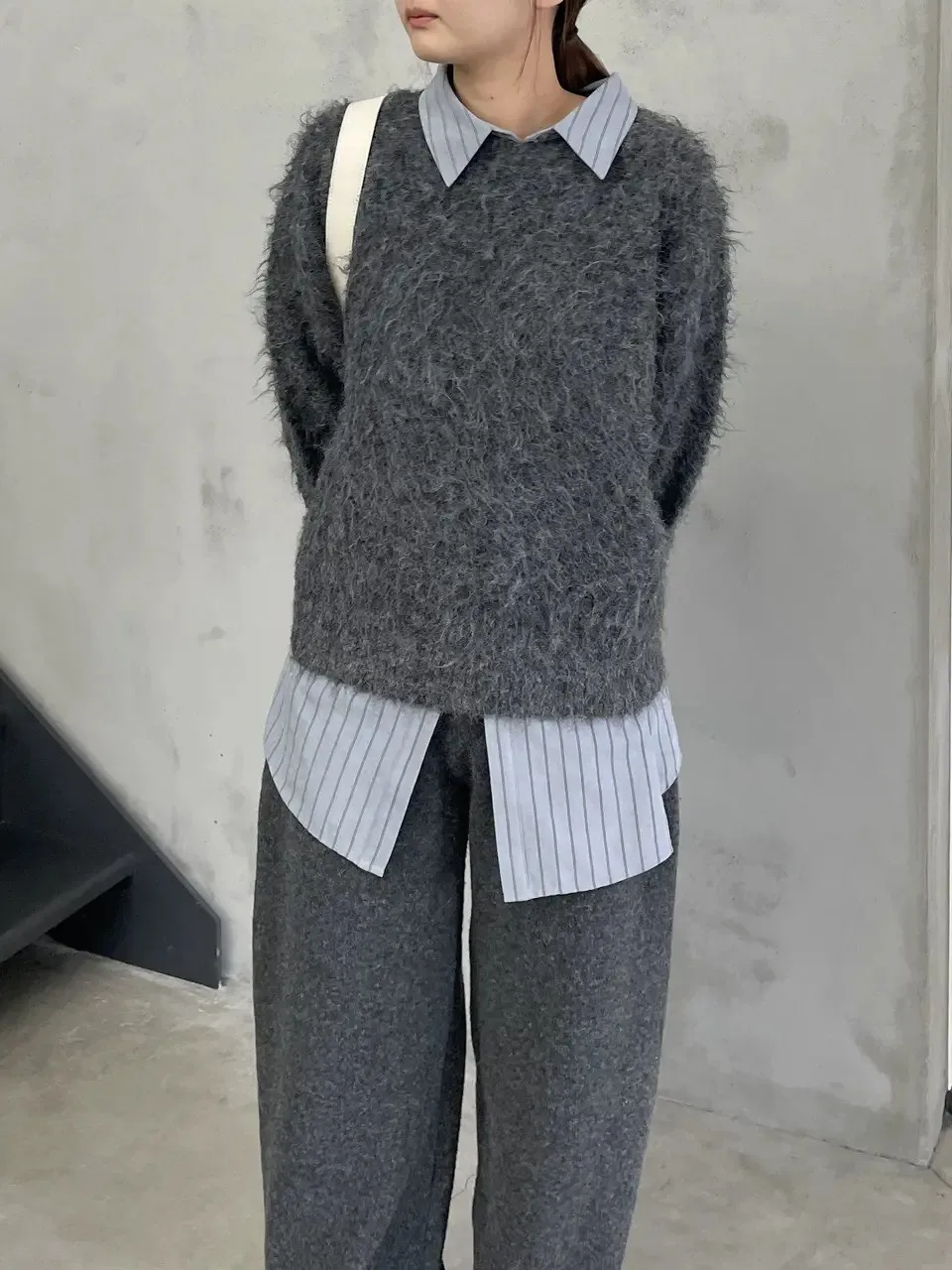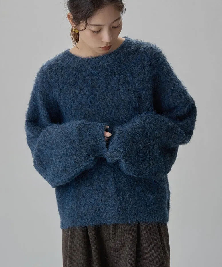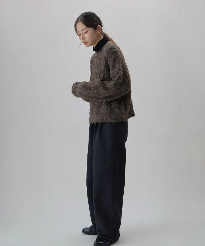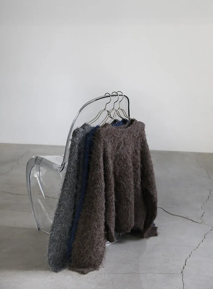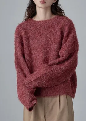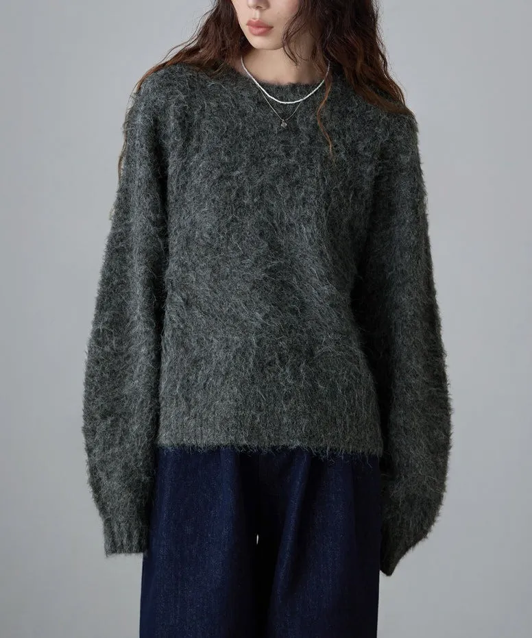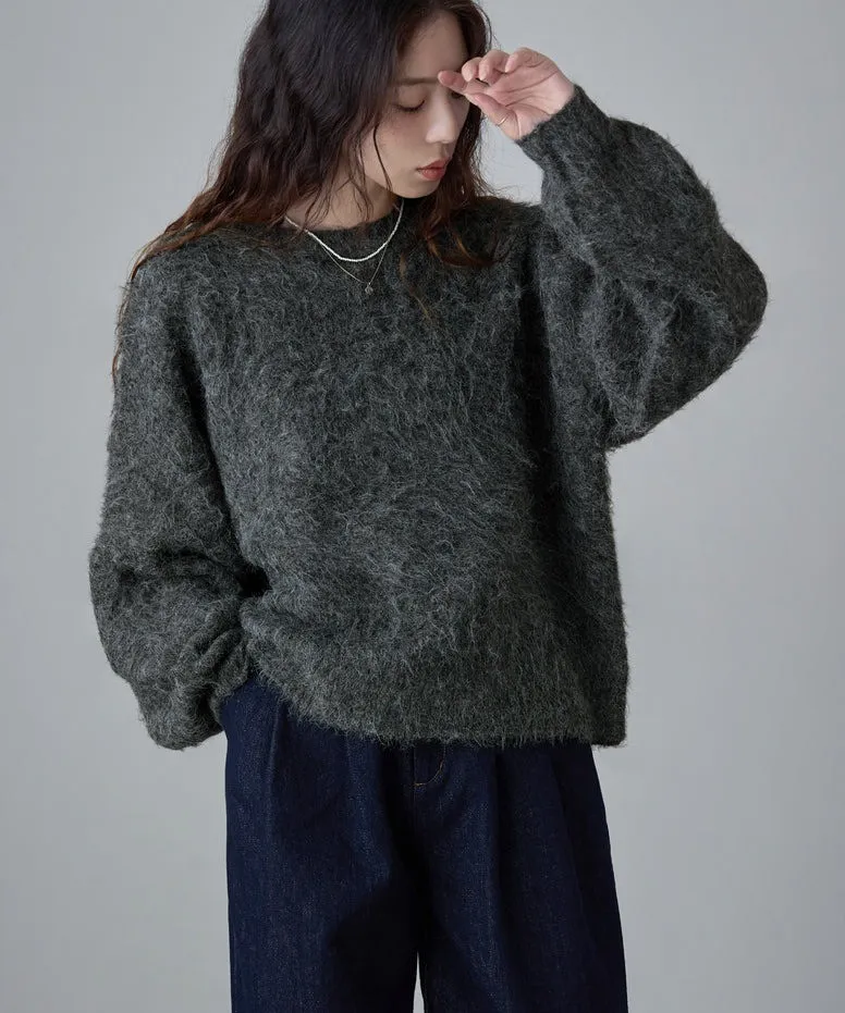 混羊毛~簡約圓領低彩度毛海質感毛衣