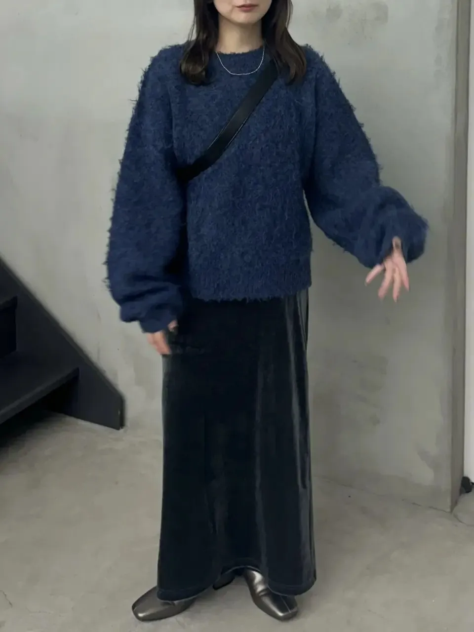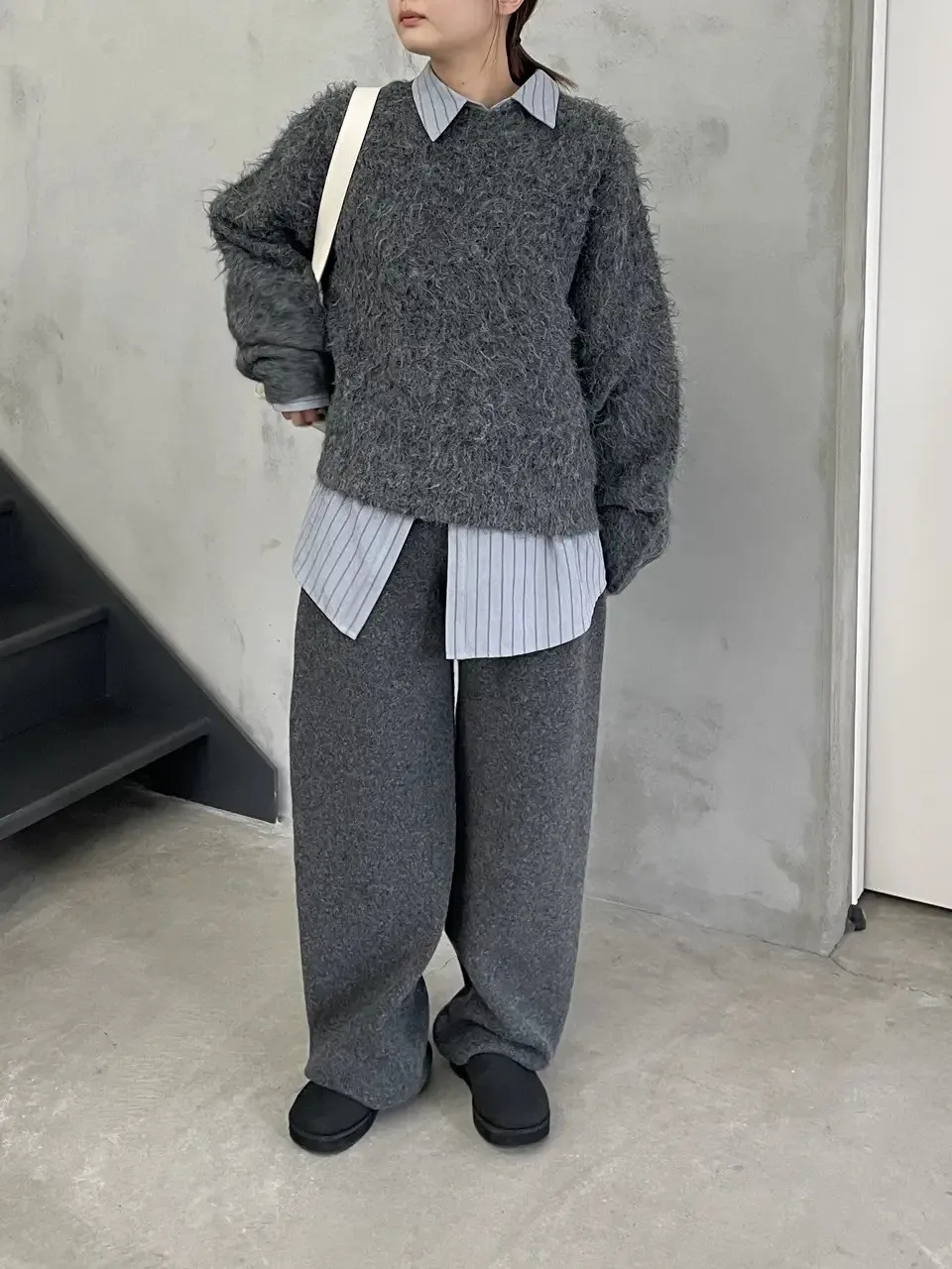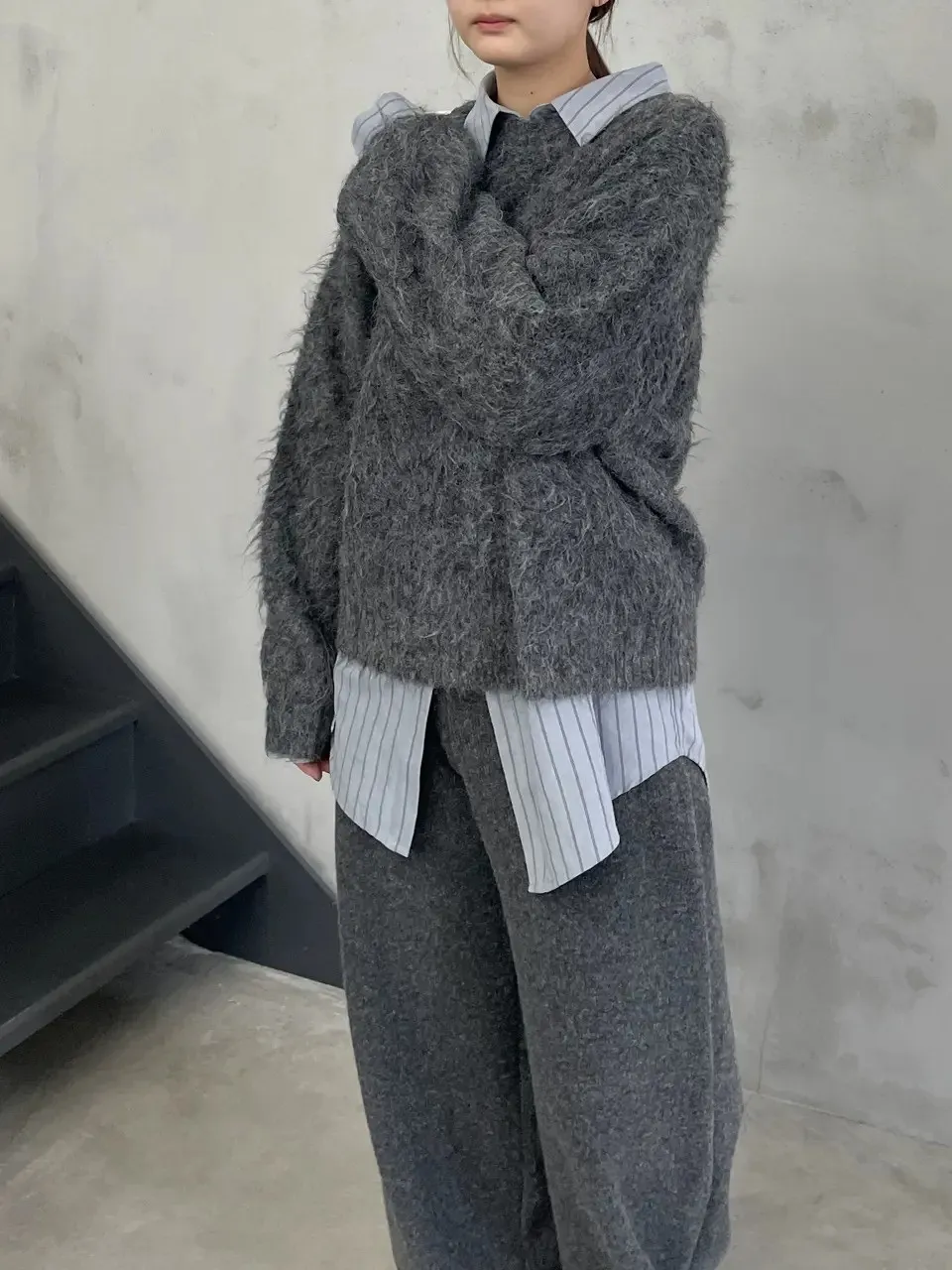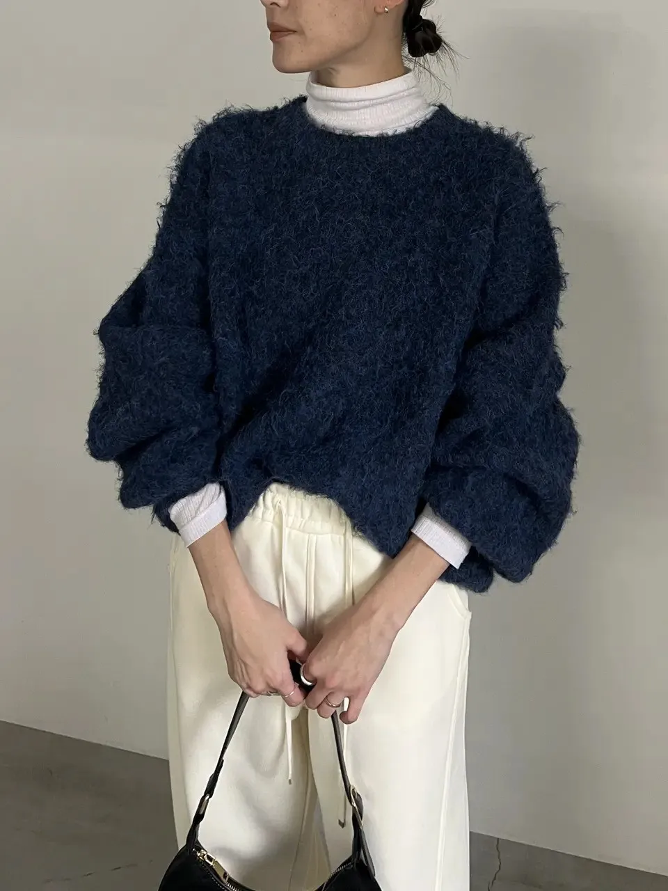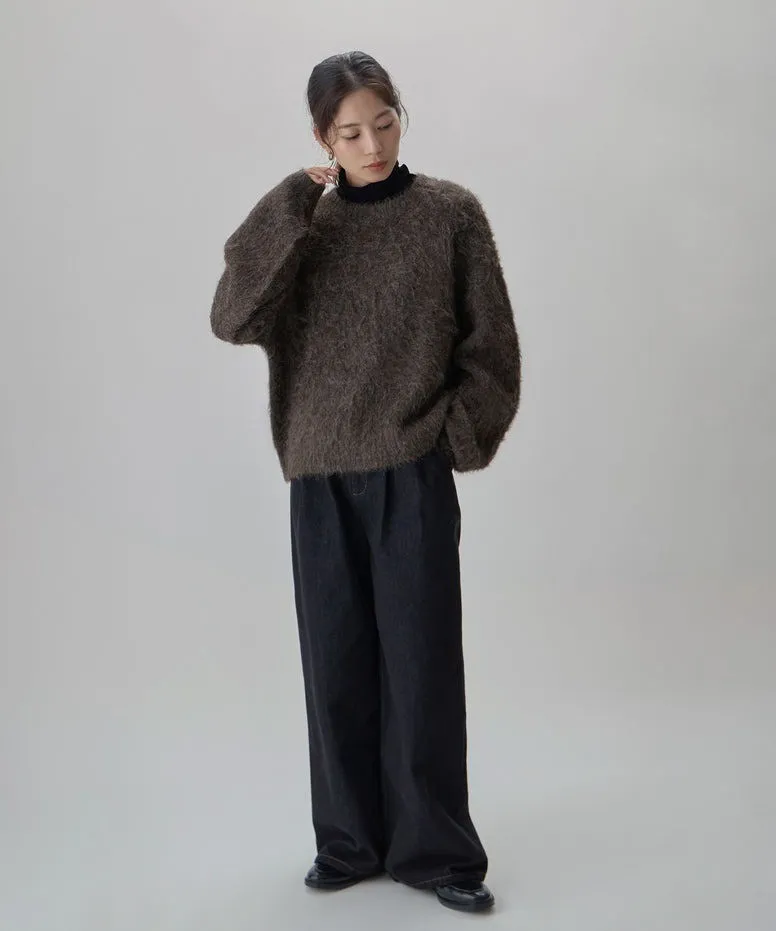 混羊毛~簡約圓領低彩度毛海質感毛衣
