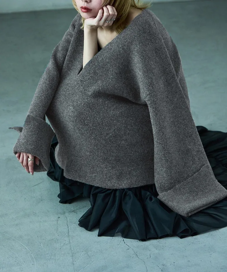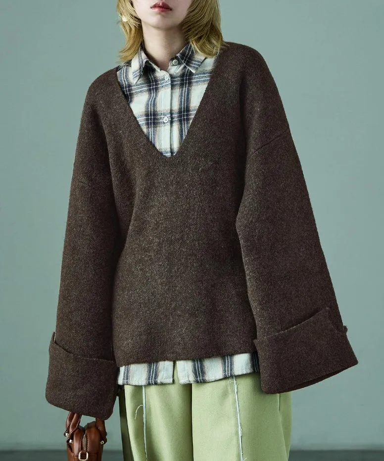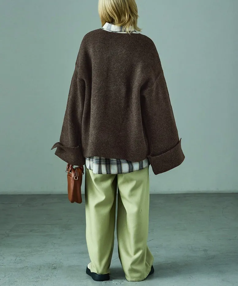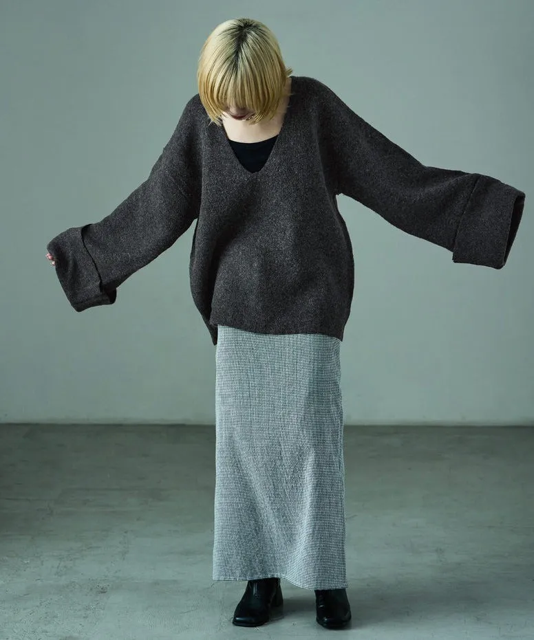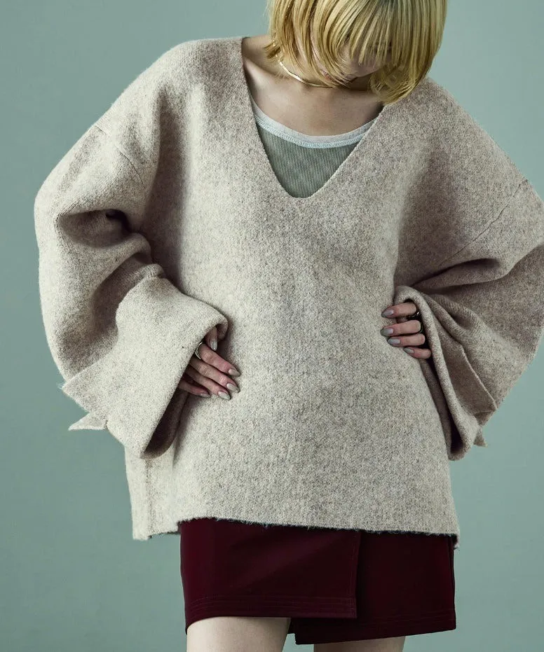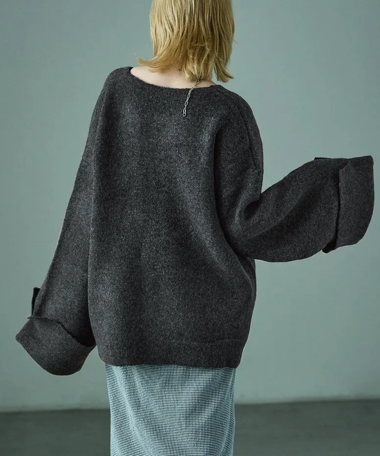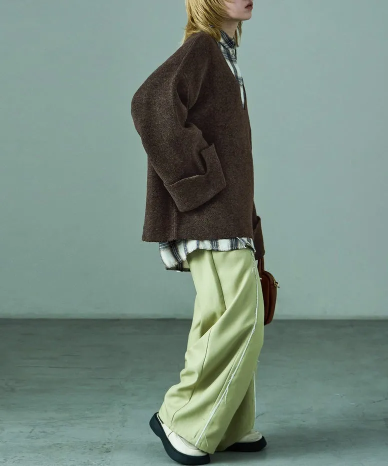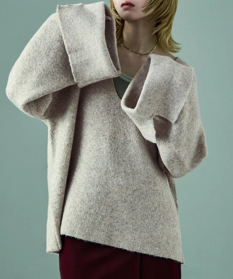 落肩設計和寬袖營造出輕鬆自在的氛圍