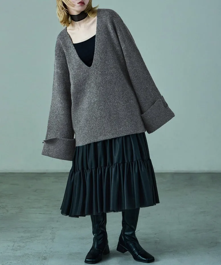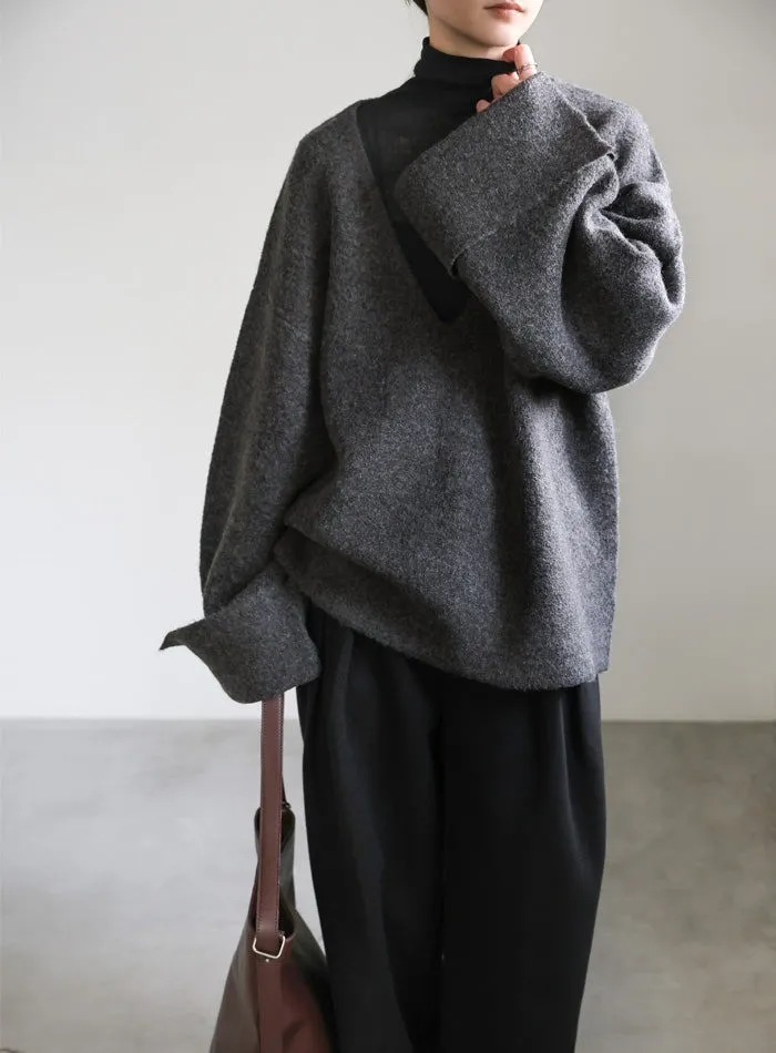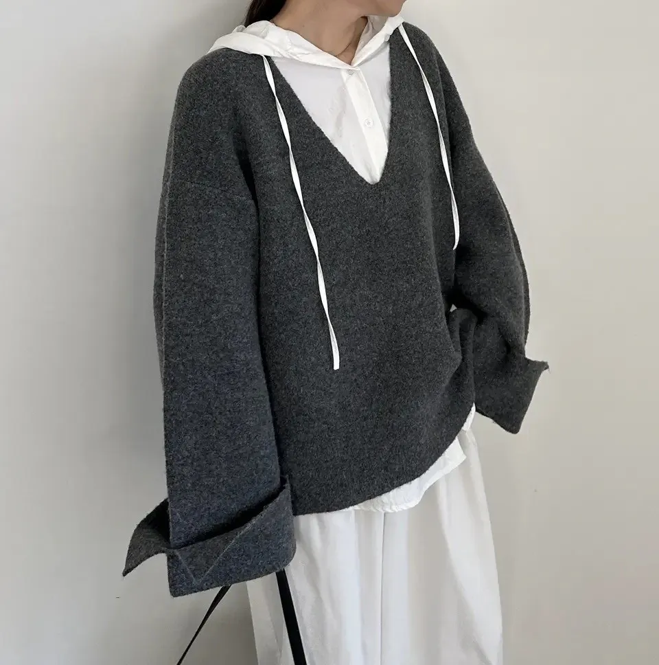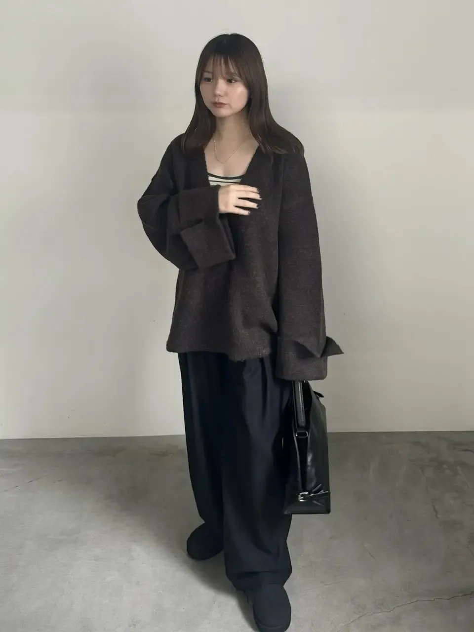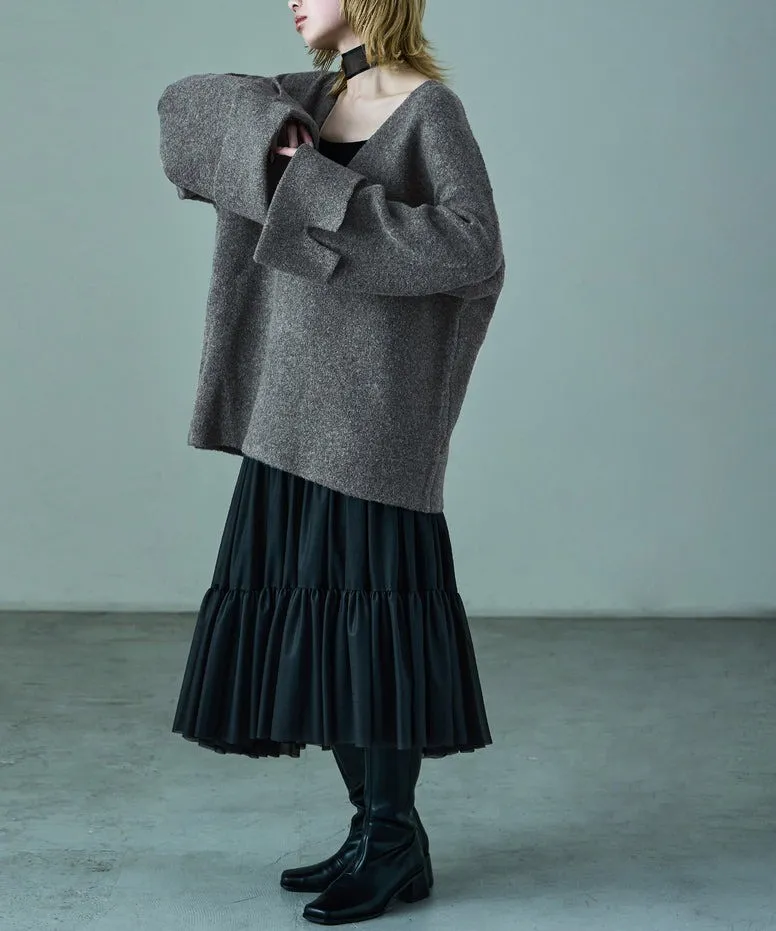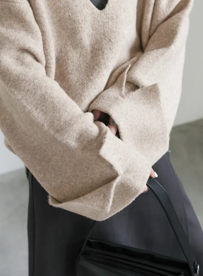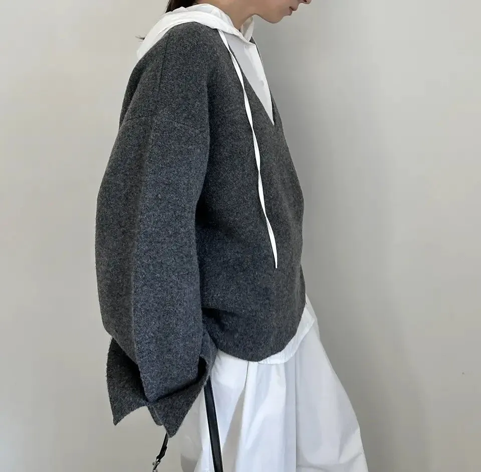 落肩設計和寬袖營造出輕鬆自在的氛圍