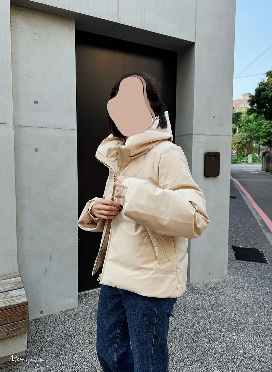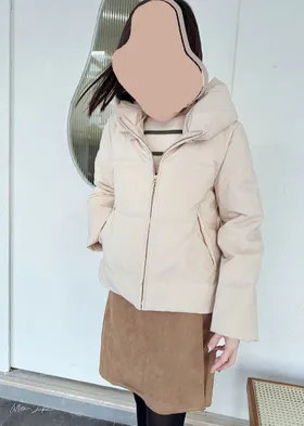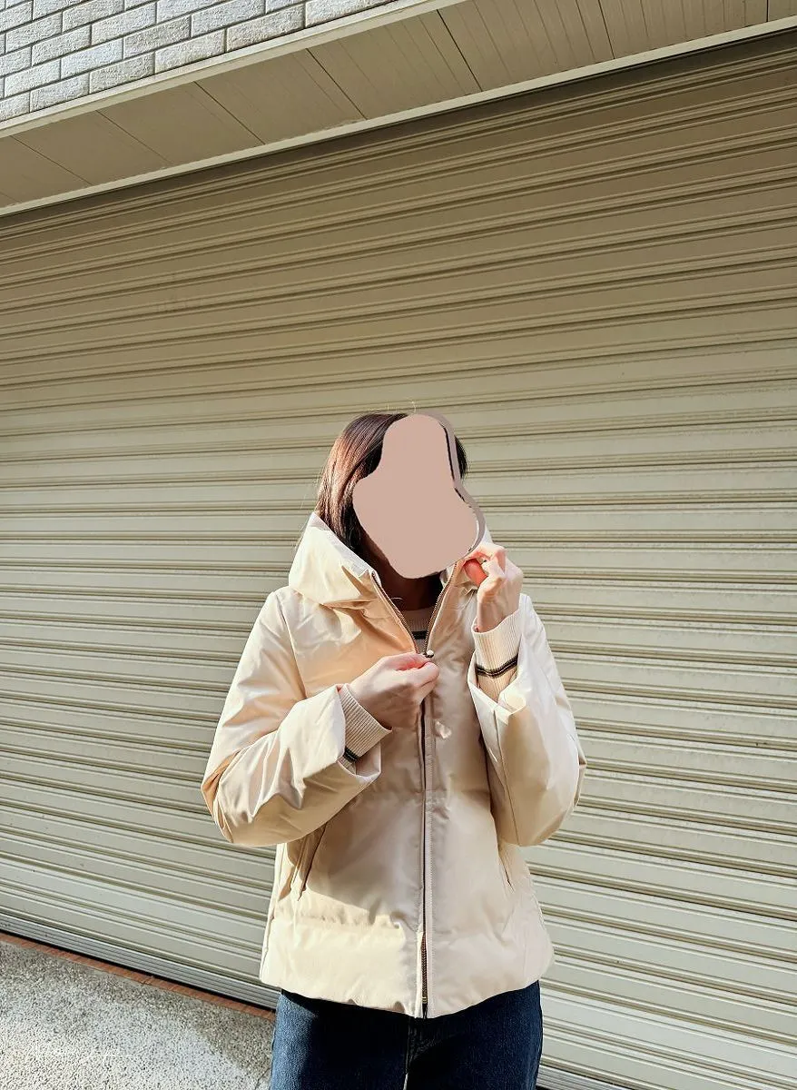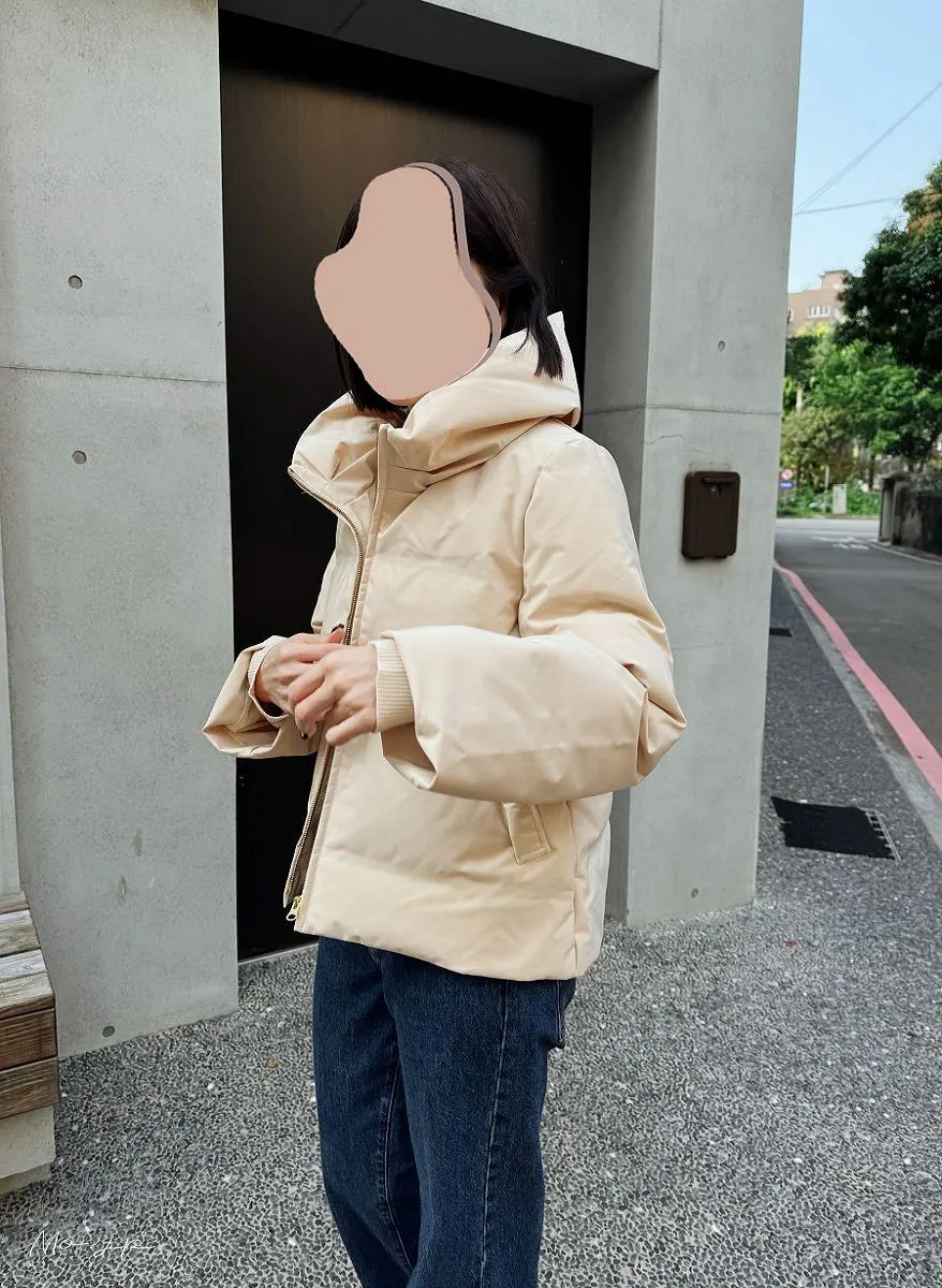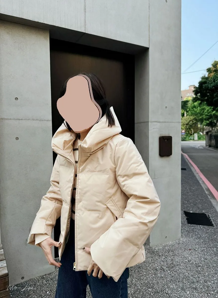 拉鍊金色小點綴~口袋的設計很棒~它有一個內縮的縮口~除了東西比較不會掉外~整件外套穿起來也比較順~不會鼓!