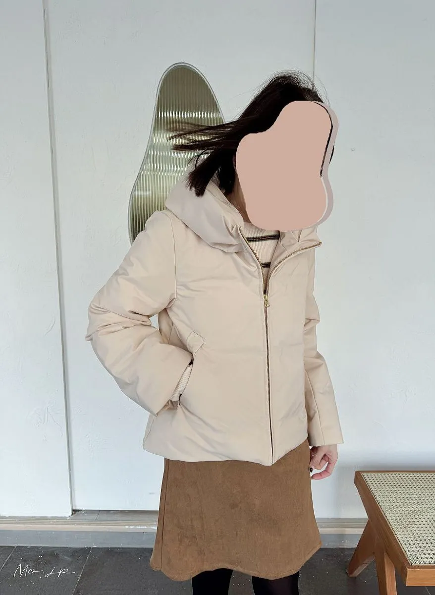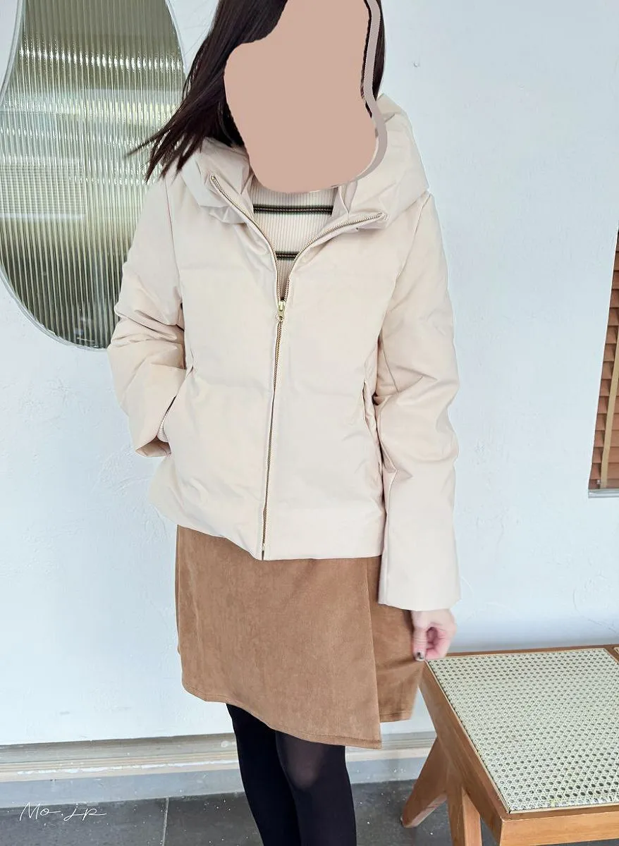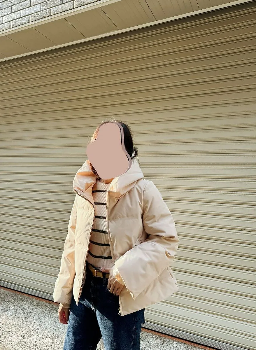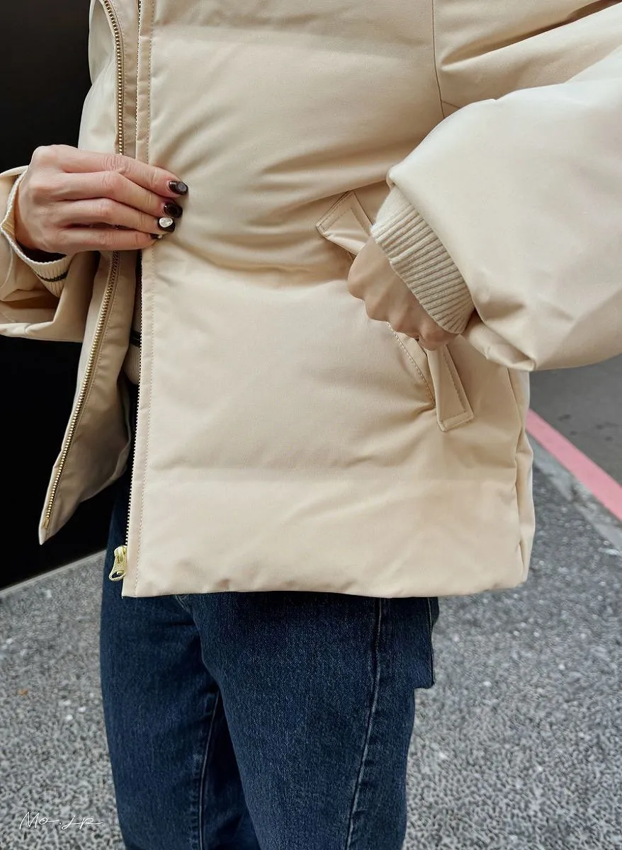 拉鍊金色小點綴~口袋的設計很棒~它有一個內縮的縮口~除了東西比較不會掉外~整件外套穿起來也比較順~不會鼓!
