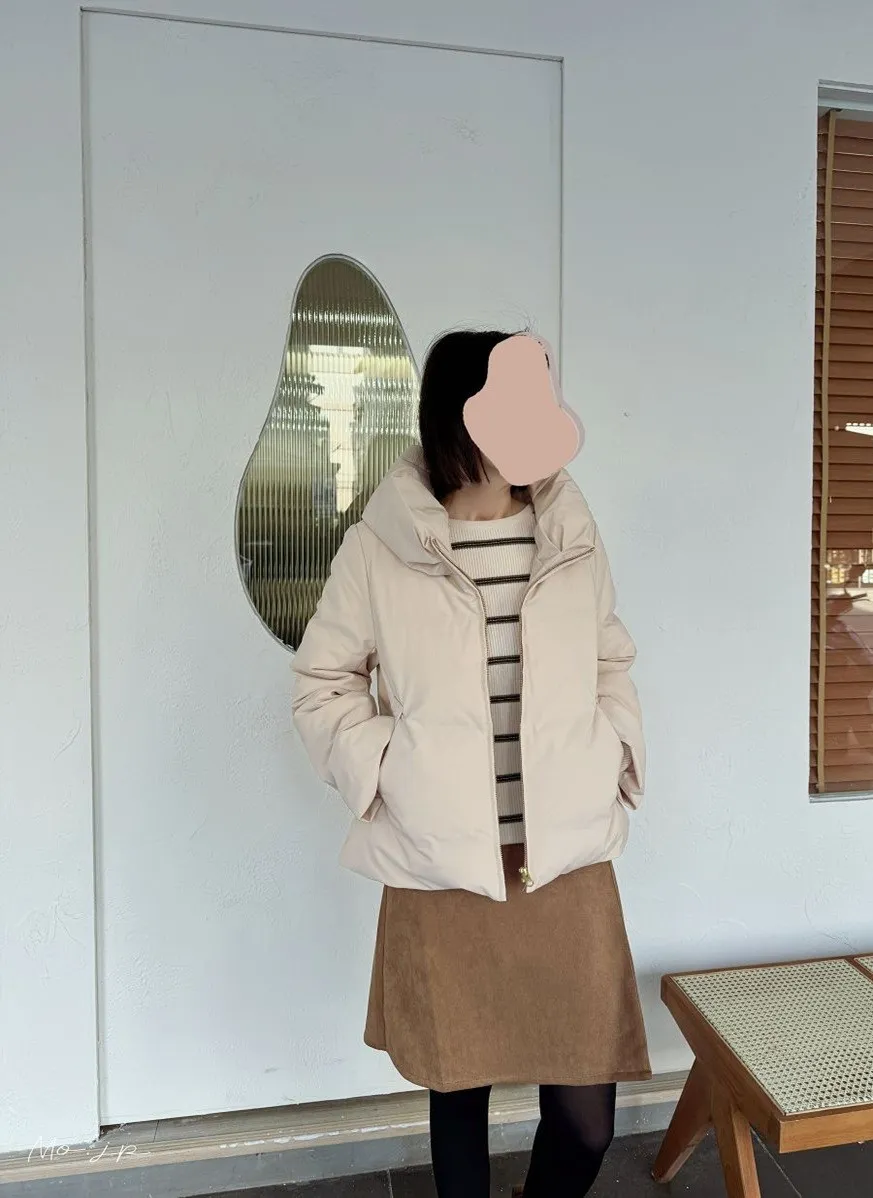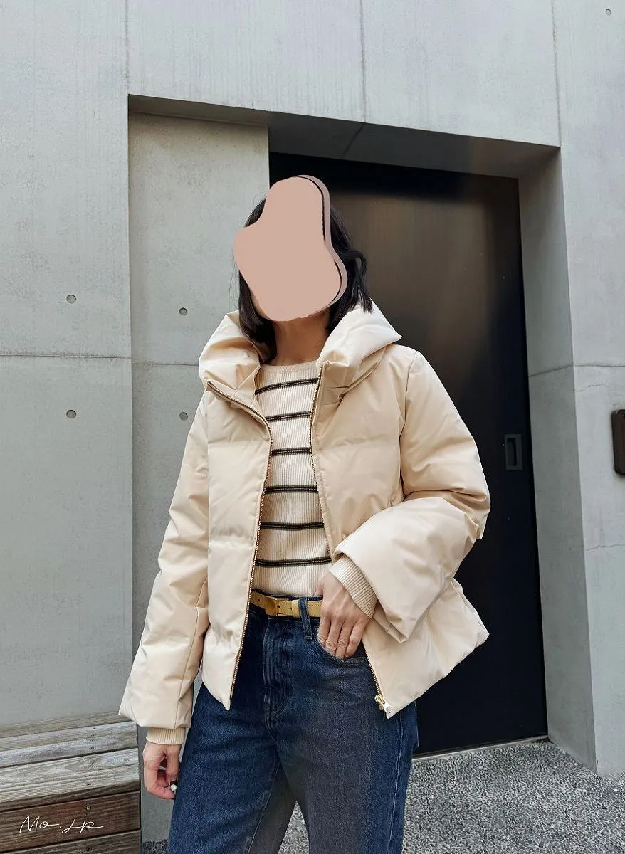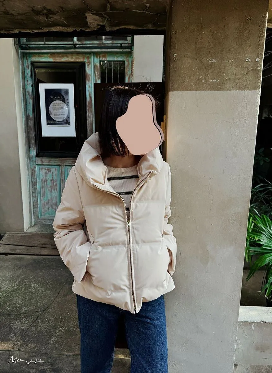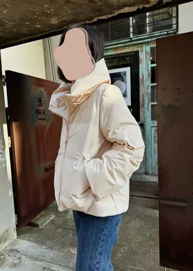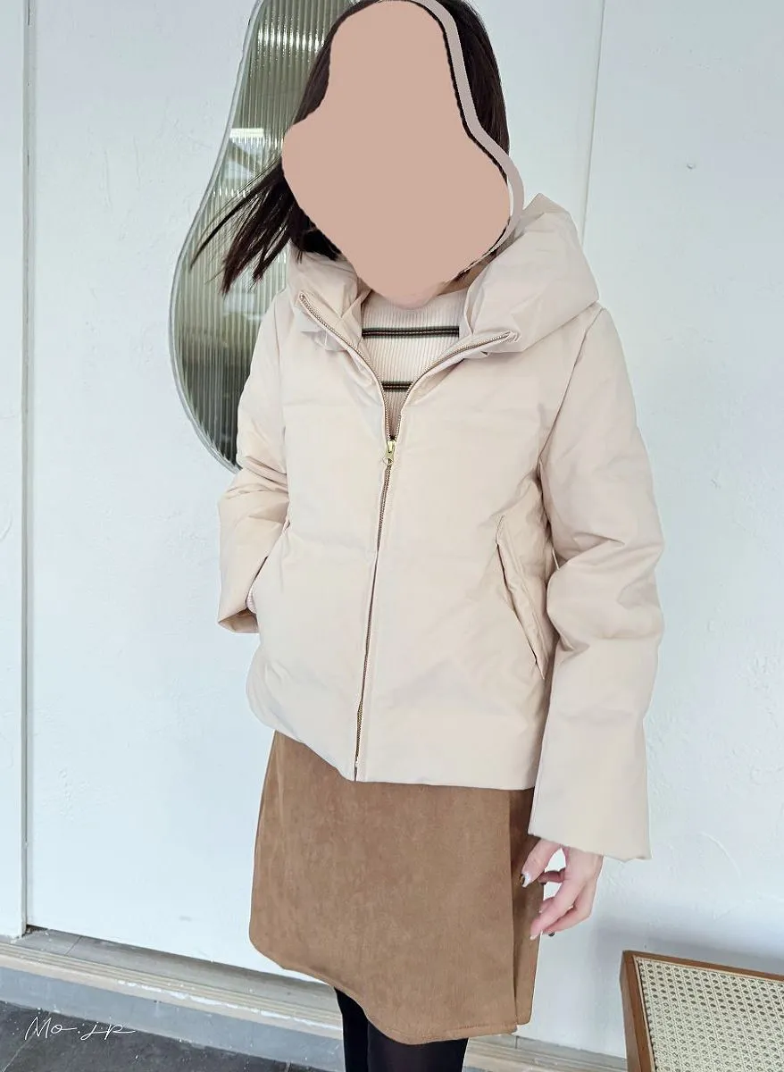 拉鍊金色小點綴~口袋的設計很棒~它有一個內縮的縮口~除了東西比較不會掉外~整件外套穿起來也比較順~不會鼓!