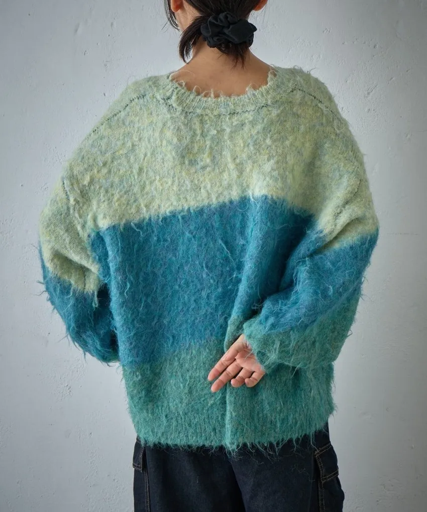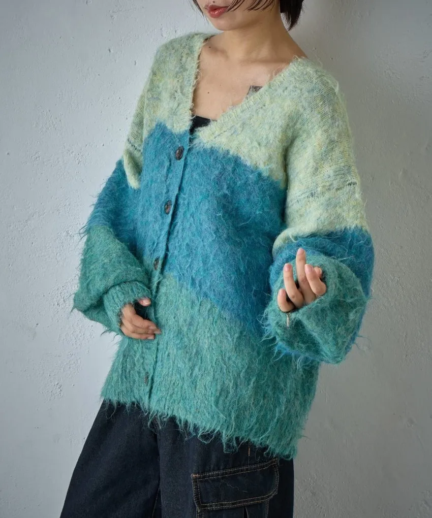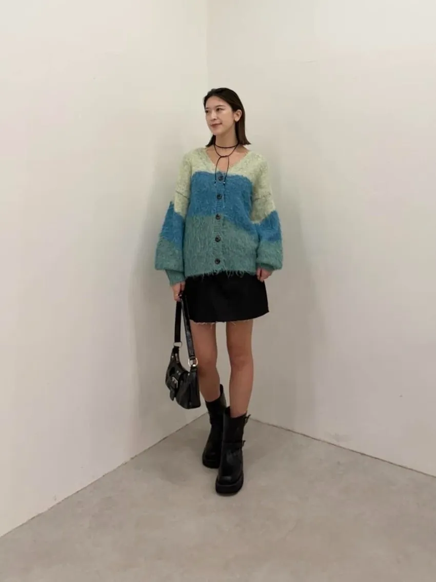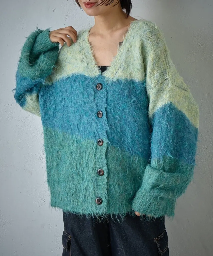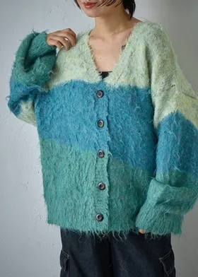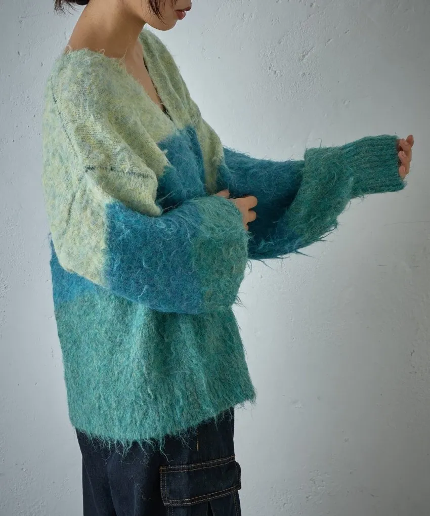數量限定~三段拼接繽紛色調軟軟毛海外套