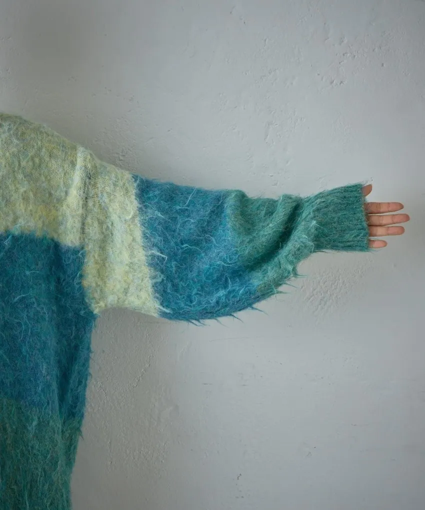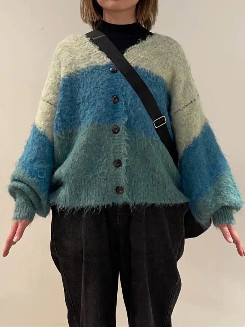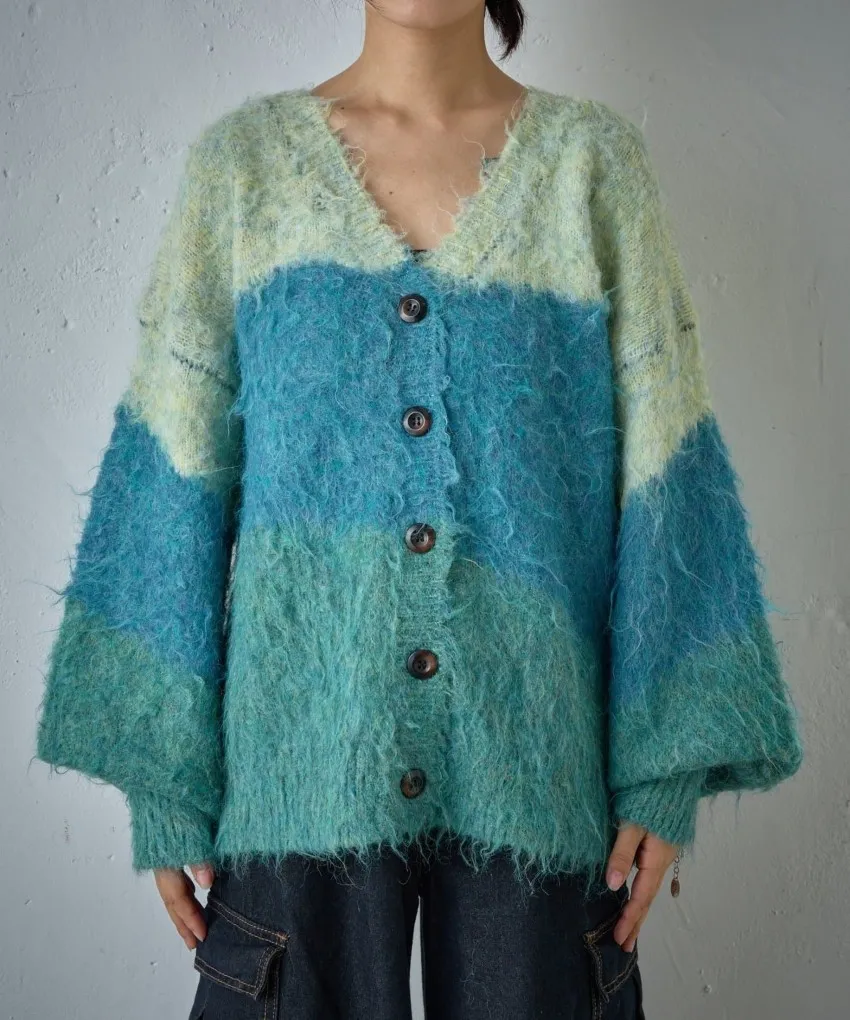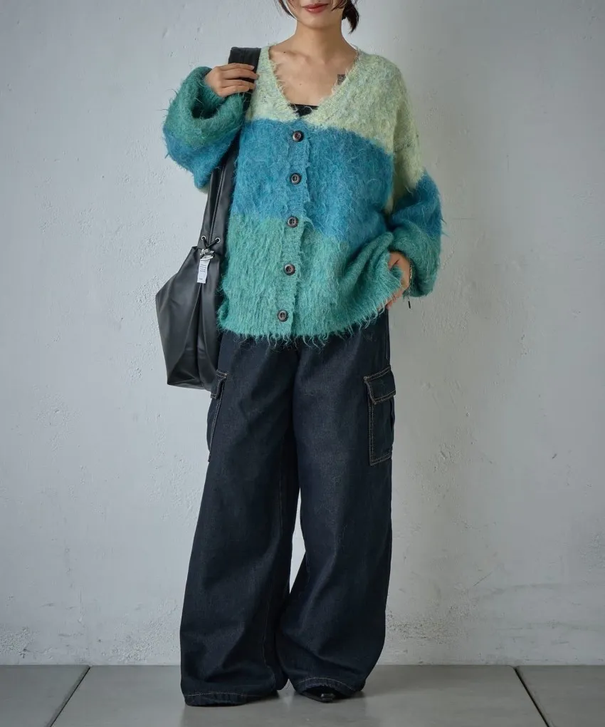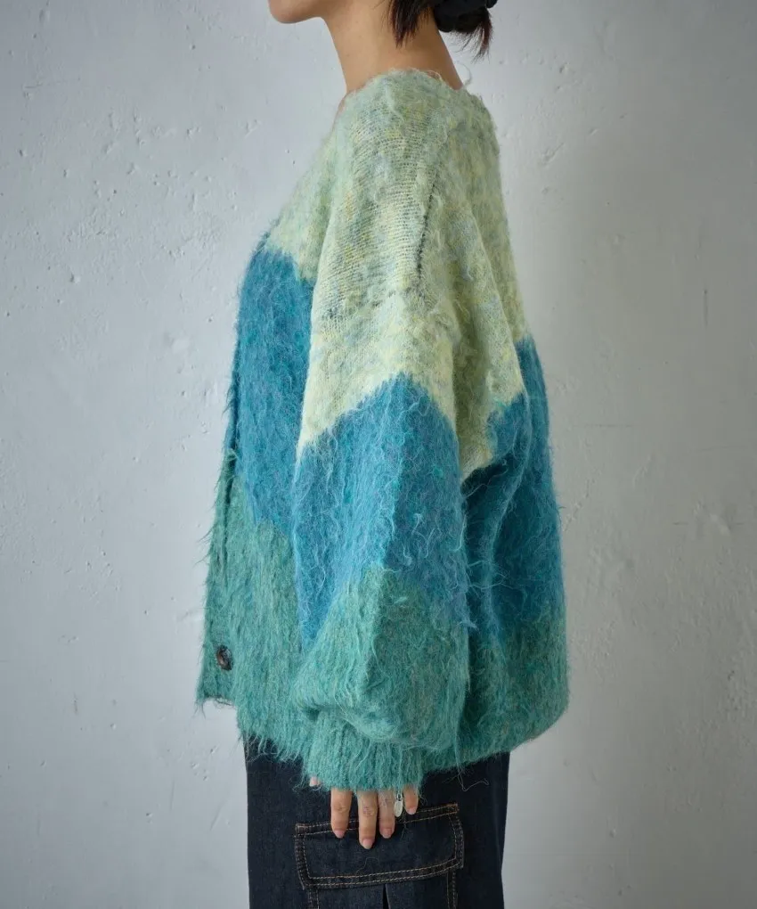 數量限定~三段拼接繽紛色調軟軟毛海外套