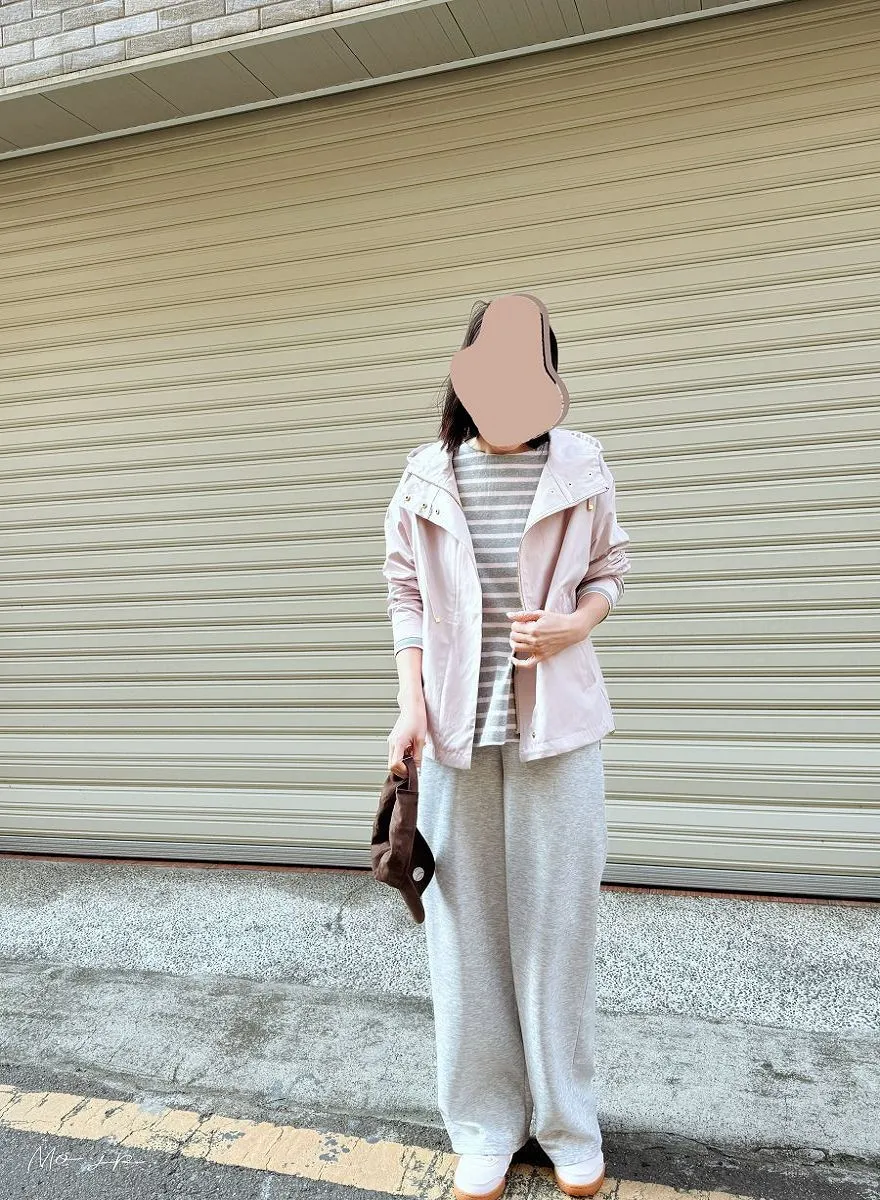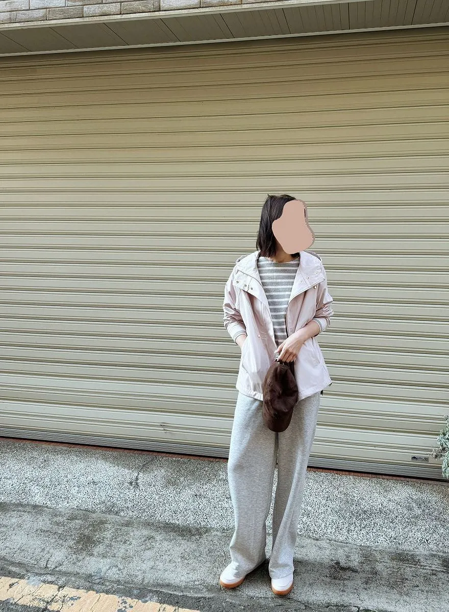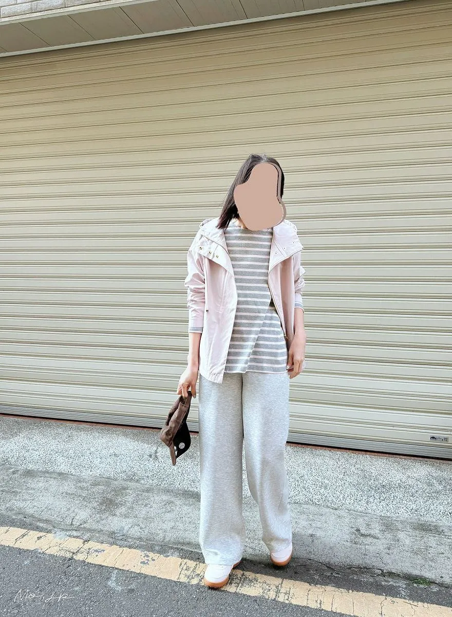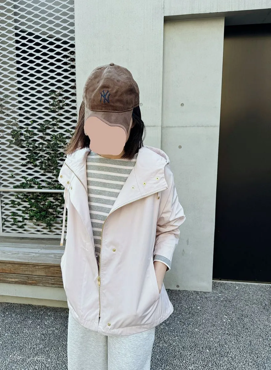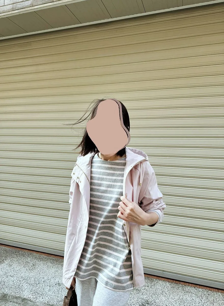 粉灰條小幫新入手~搭配新款春季淡粉色機能風衣~超級喜歡