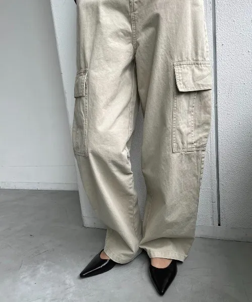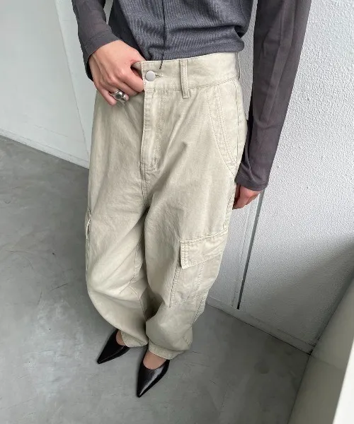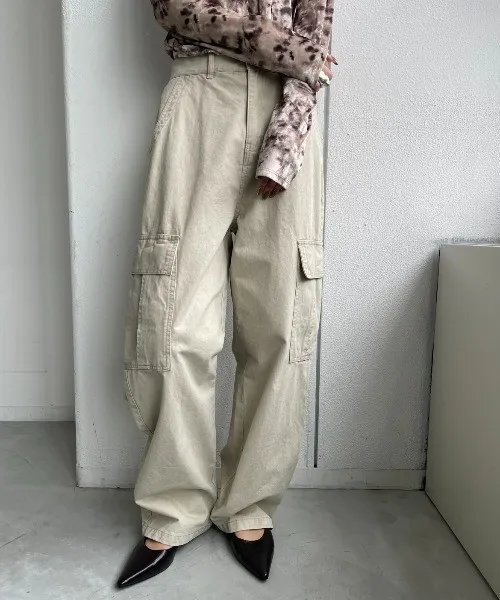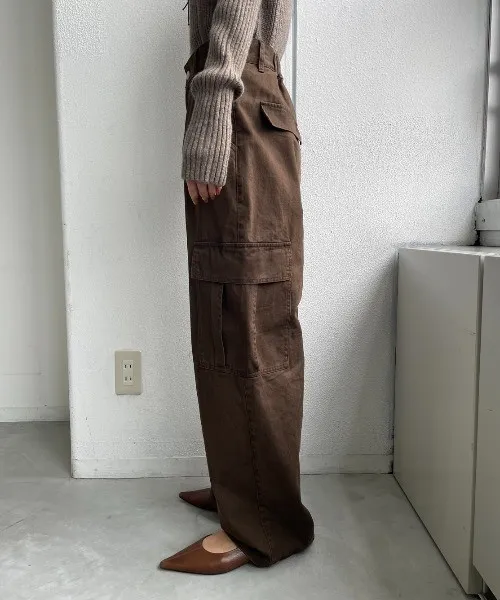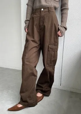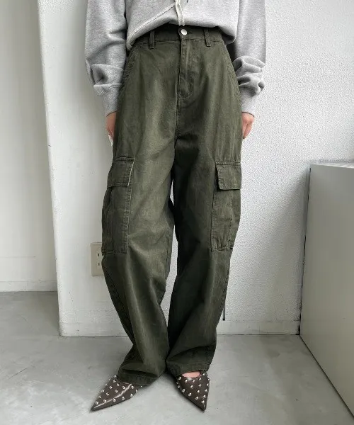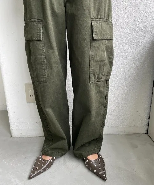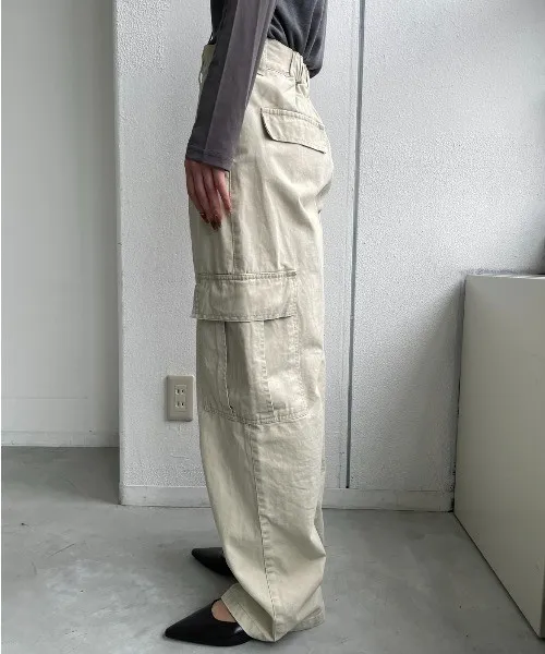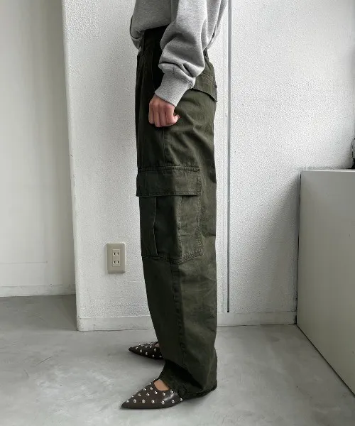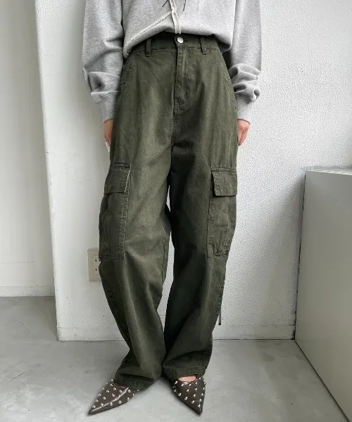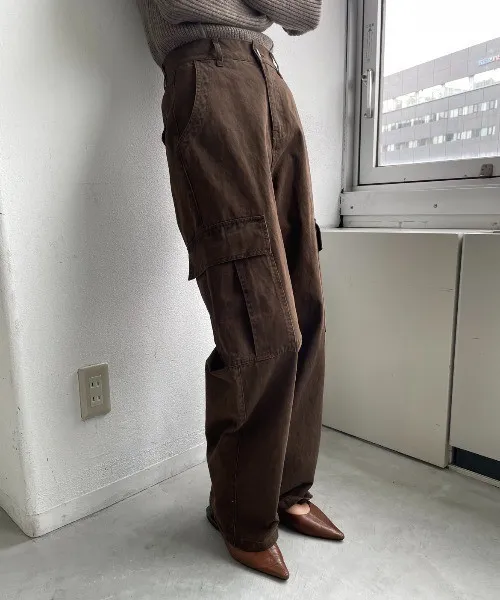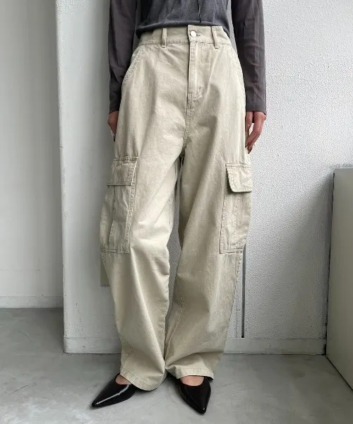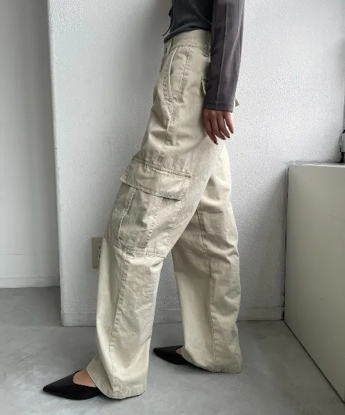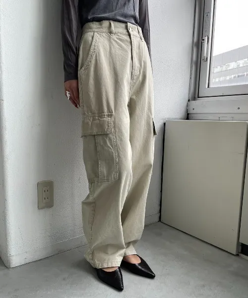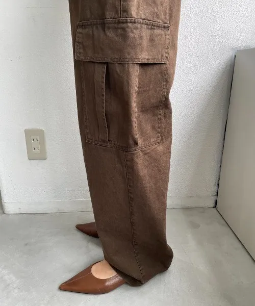 新春SALE~復古仿舊水洗刷色工作口袋丹寧直筒褲