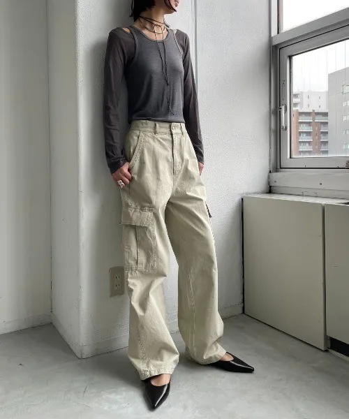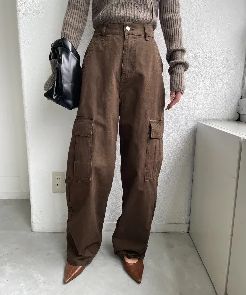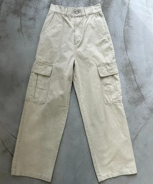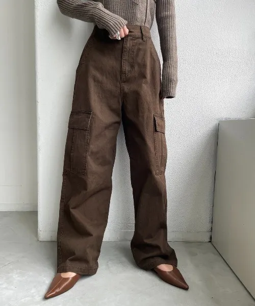 高腰落地直筒褲