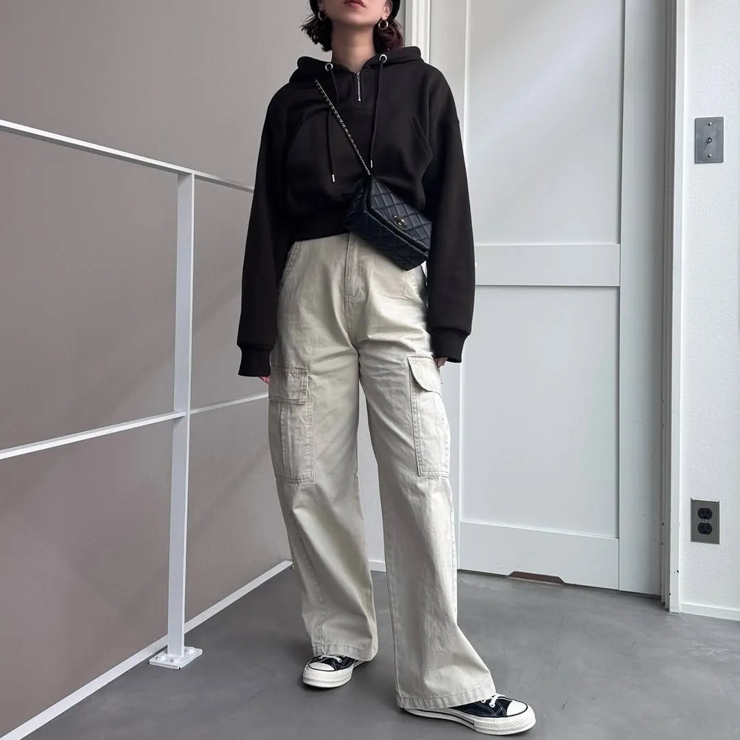 中高腰~穿起來好修長~面料有挺度但又有柔軟感