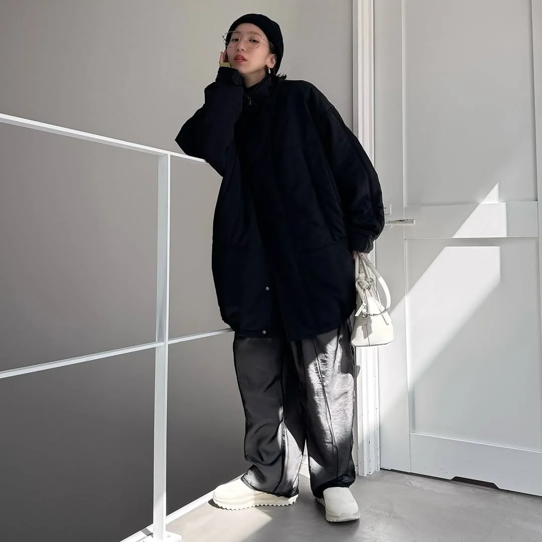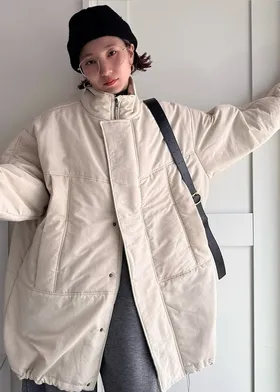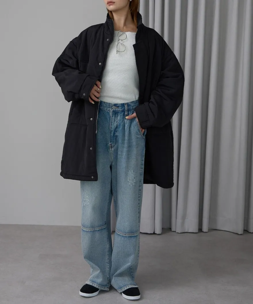 輕盈長板鋪棉夾克大衣