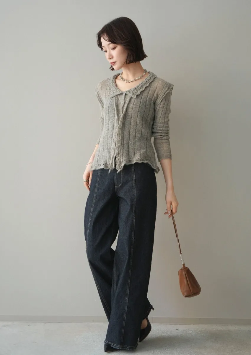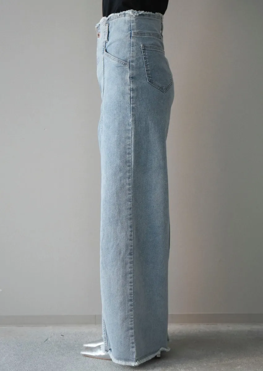 9.5oz挺版直線中心縫線落地垂墜牛仔褲