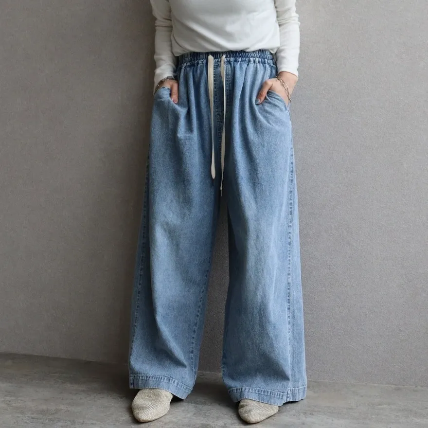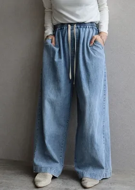 薄款復古刷色的牛仔寬