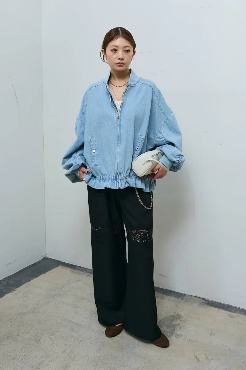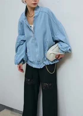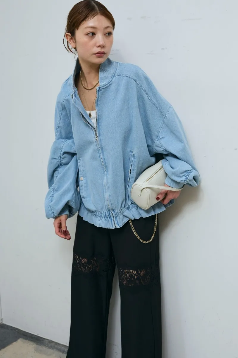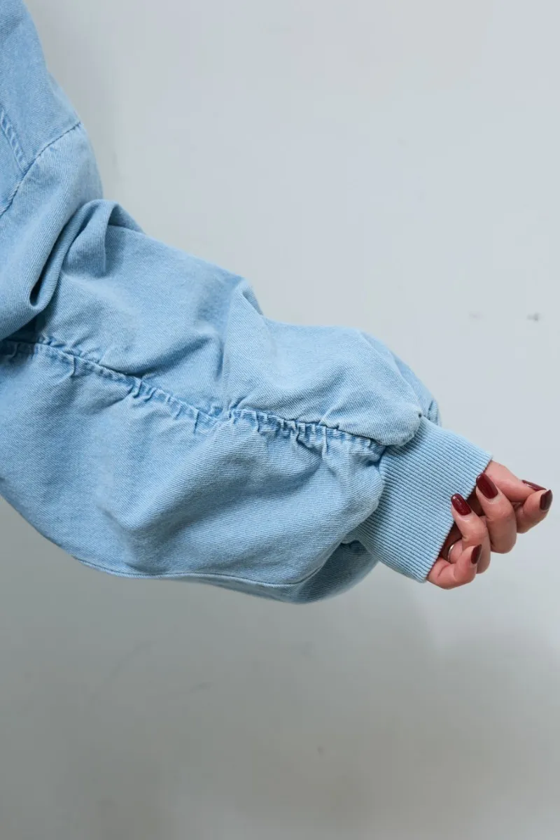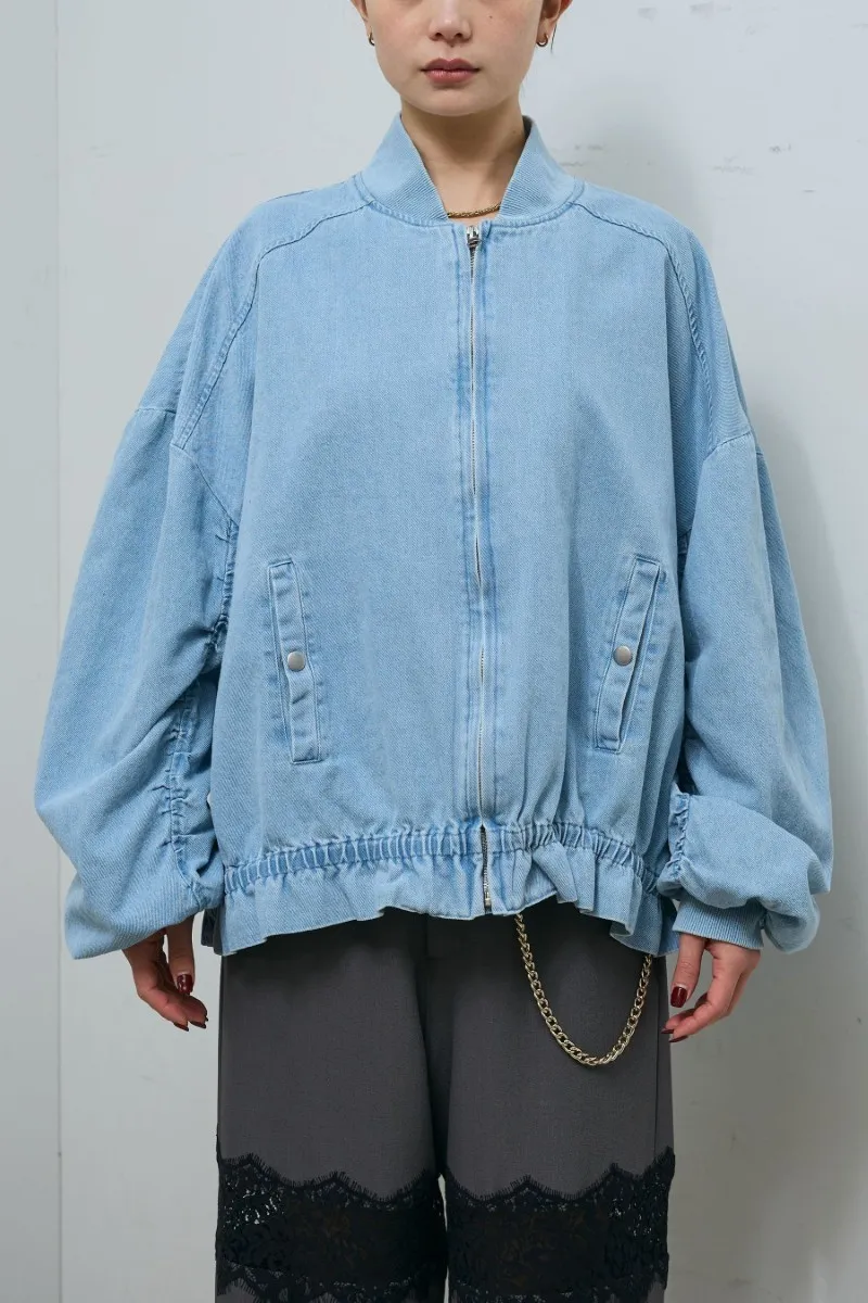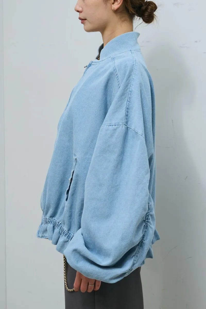 春新品預購~單寧牛仔荷葉皺褶布勞森夾克外套