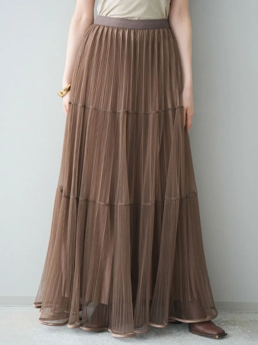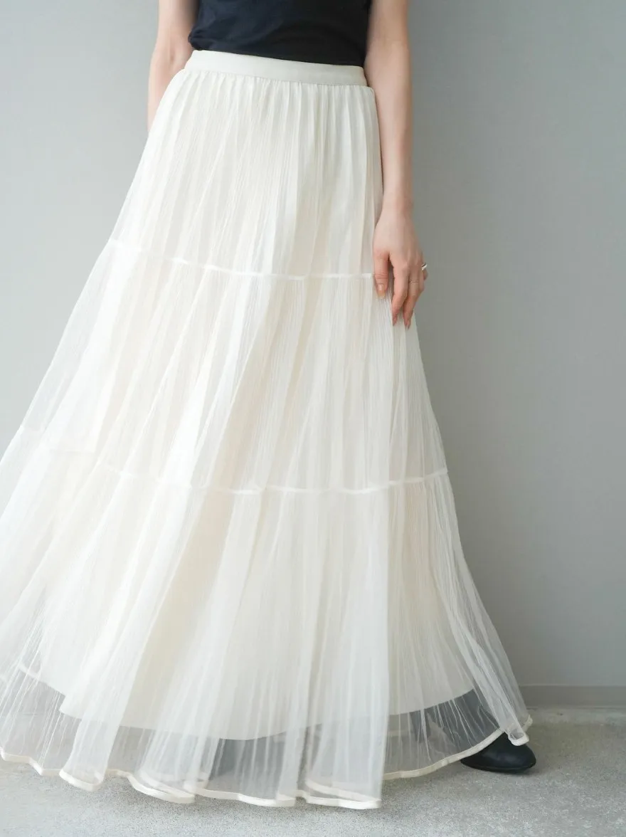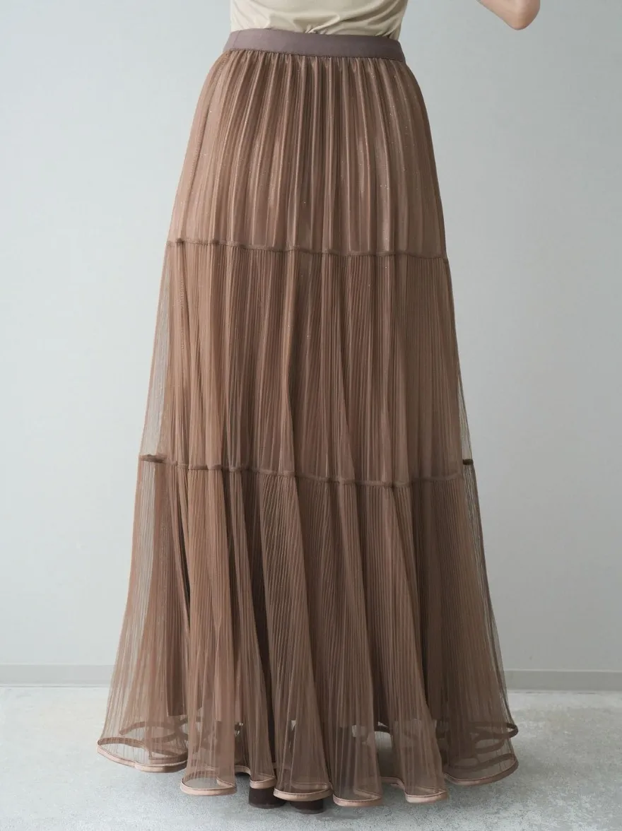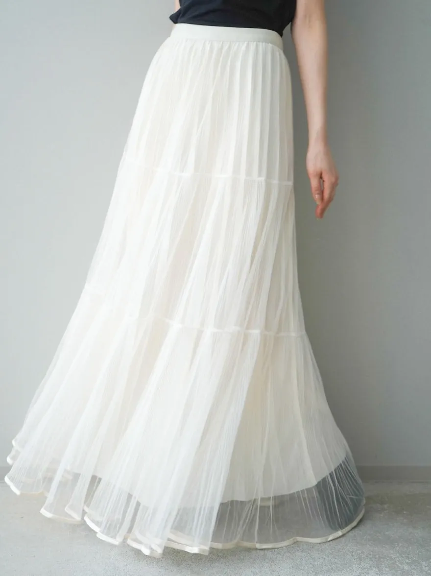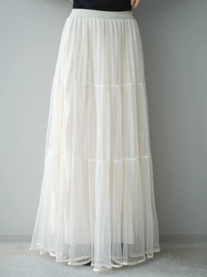 極美細褶垂墜長紗裙