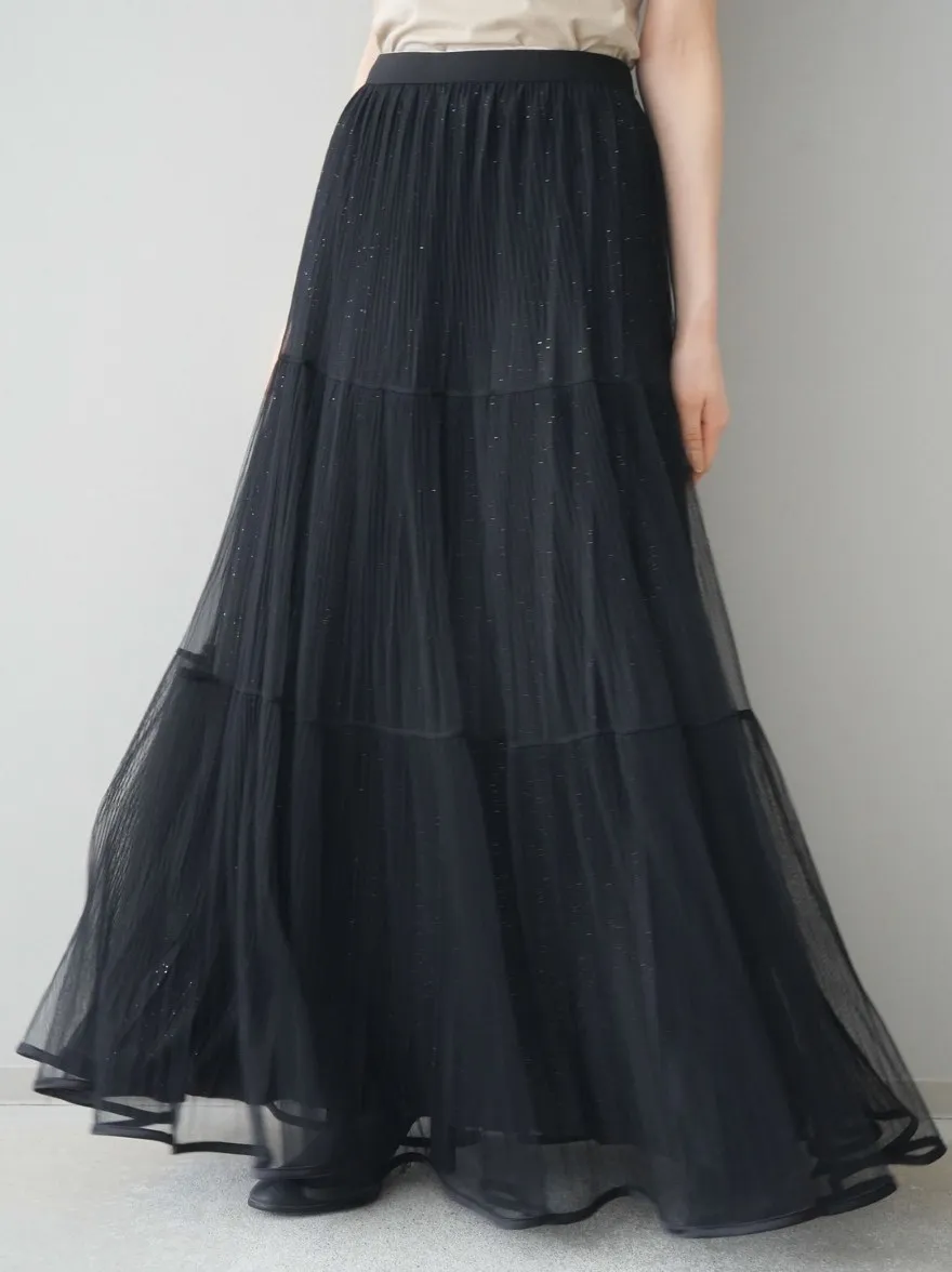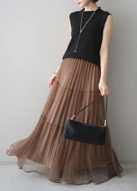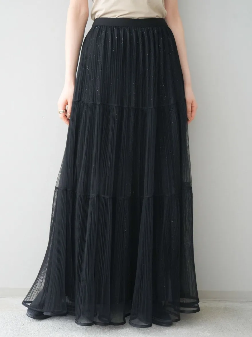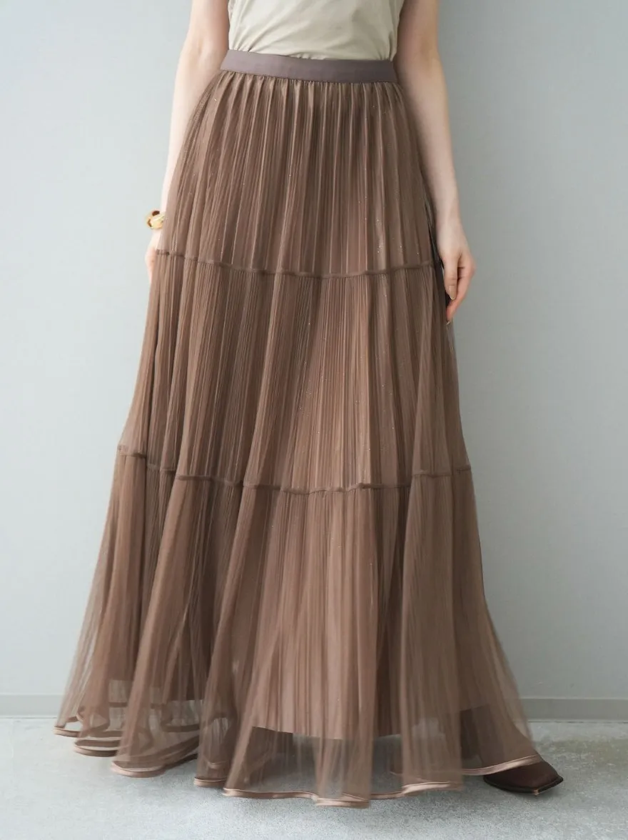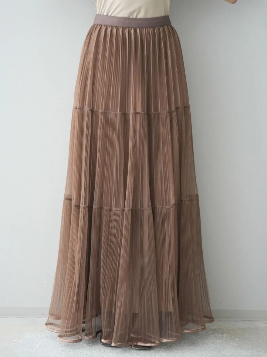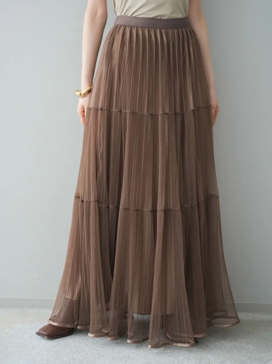 極美細褶垂墜長紗裙