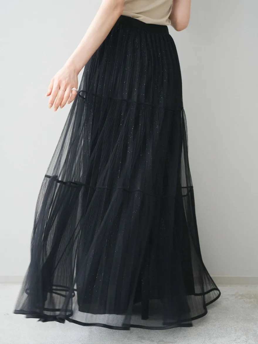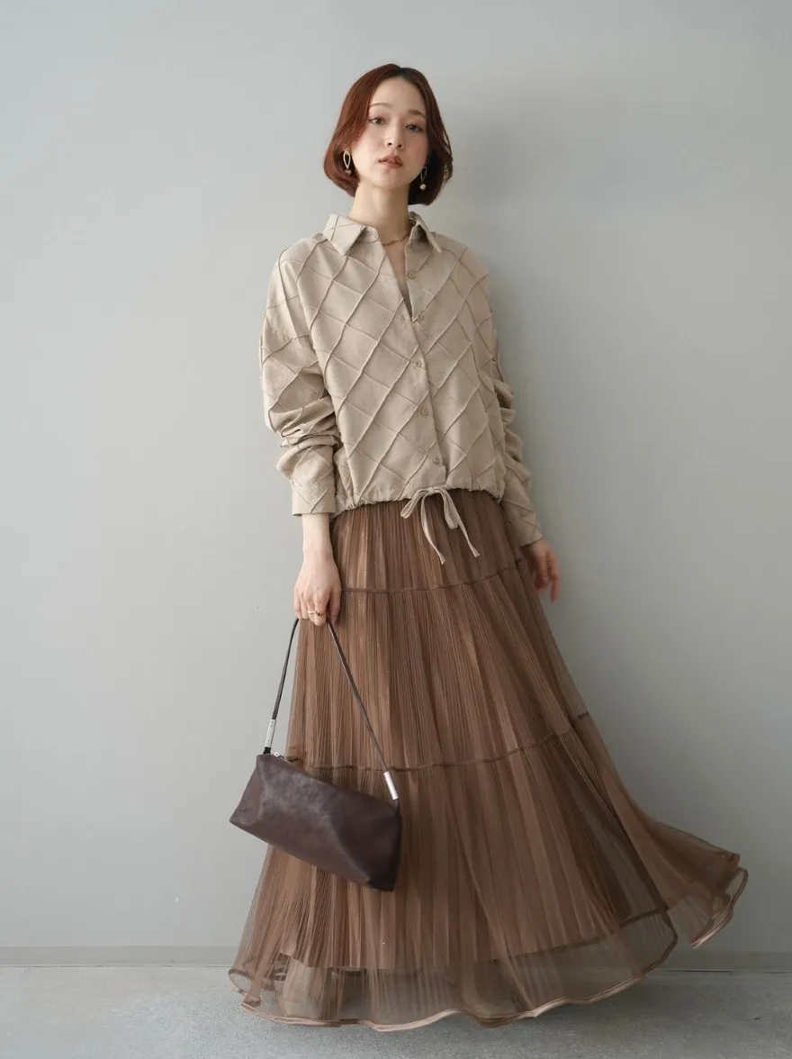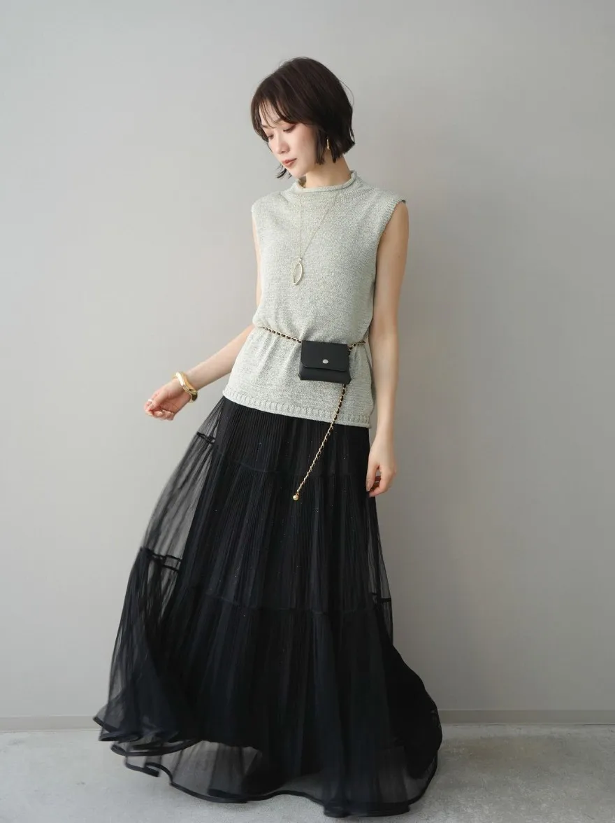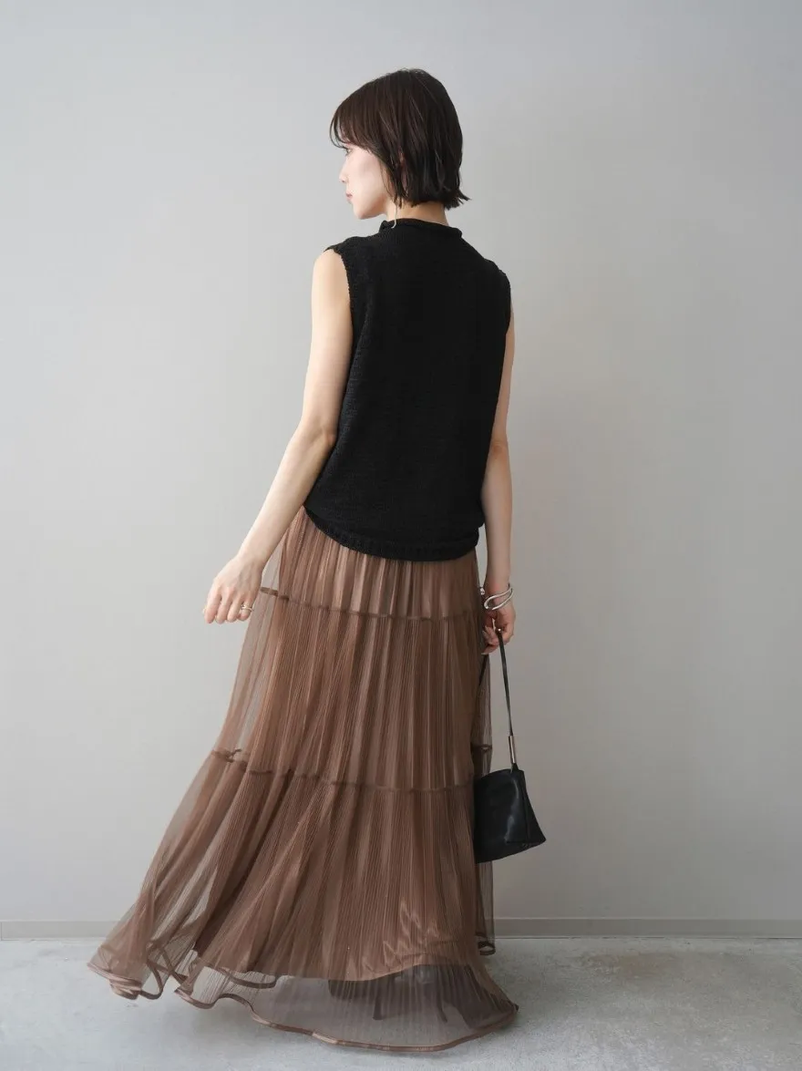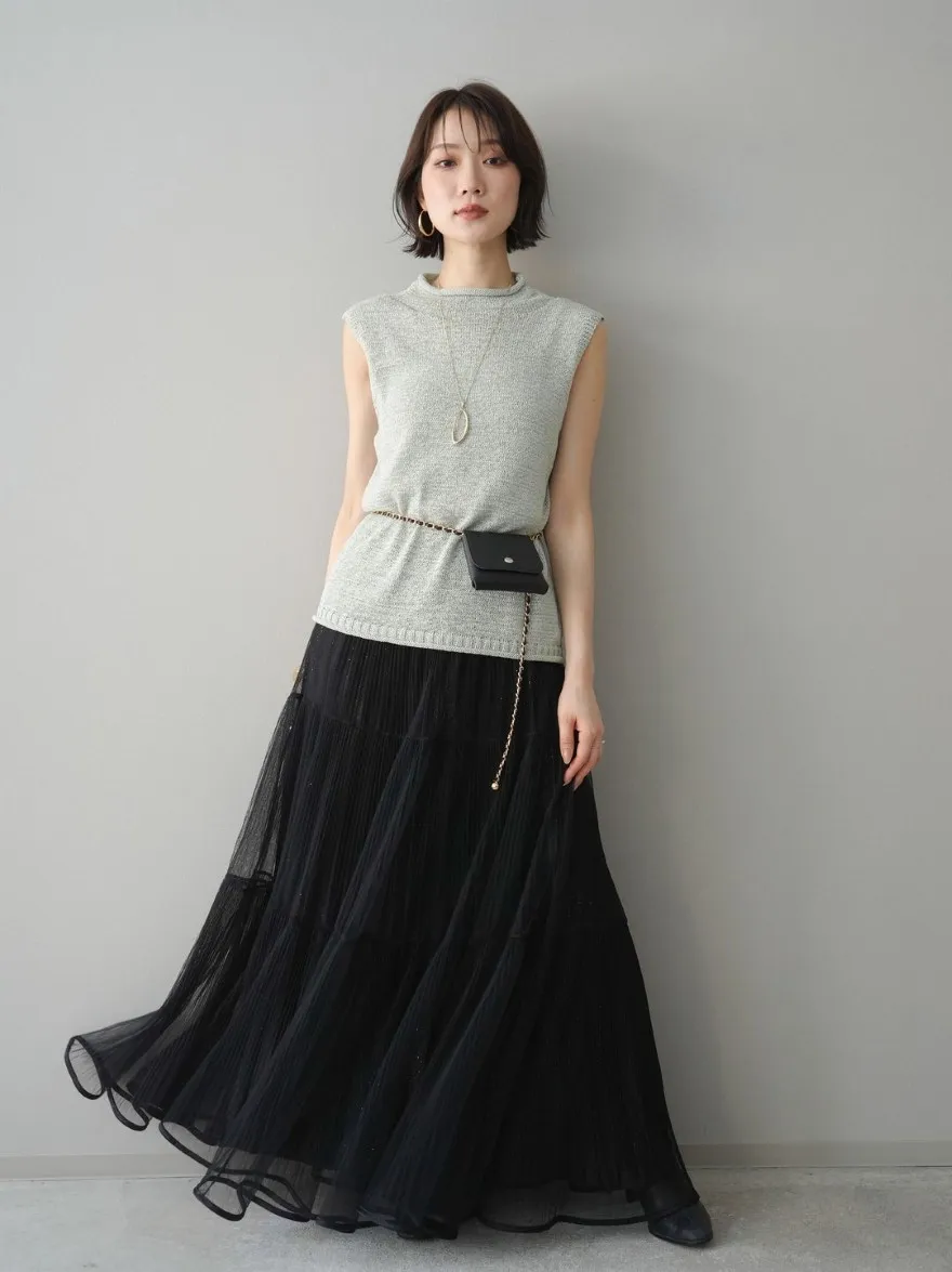極美細褶垂墜長紗裙