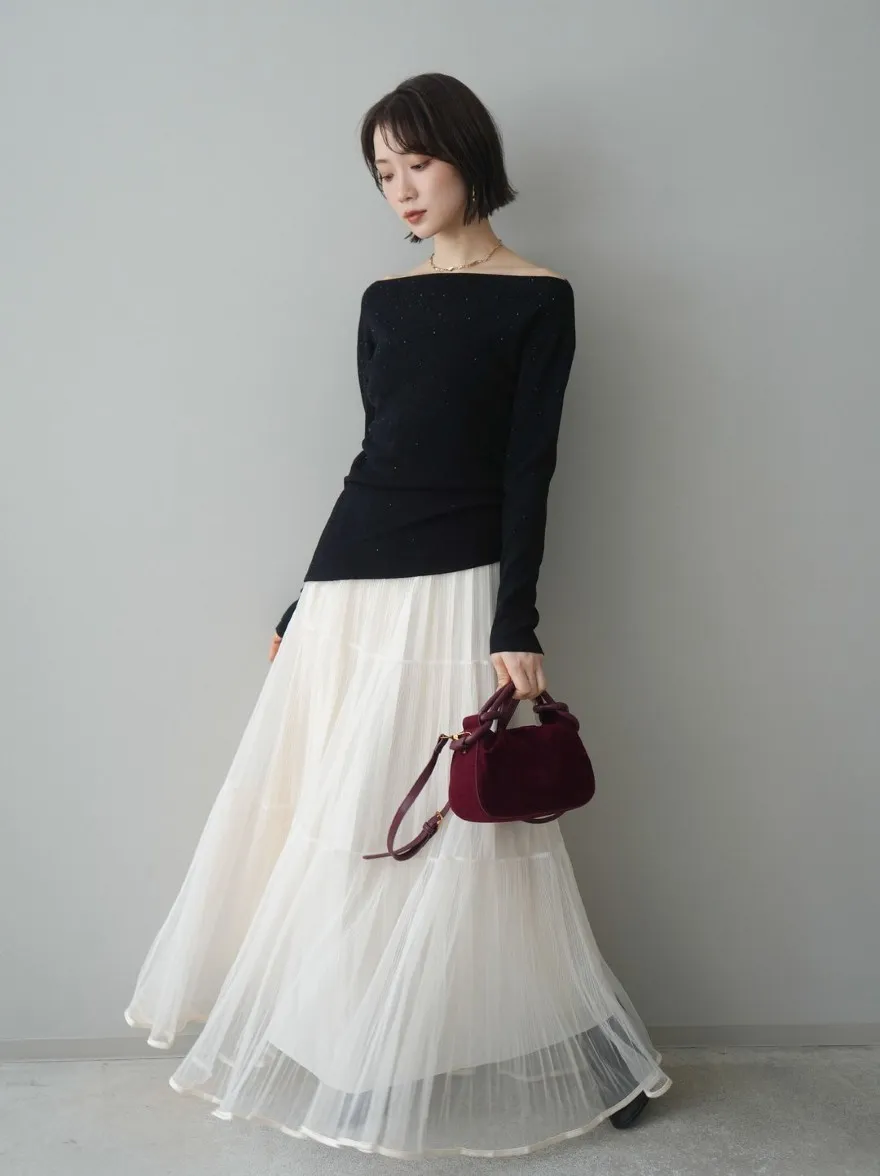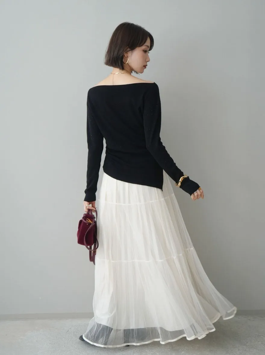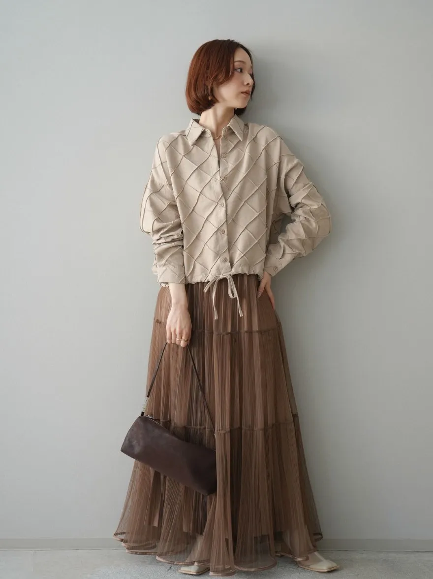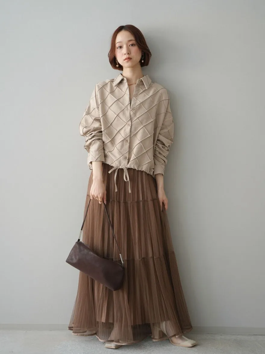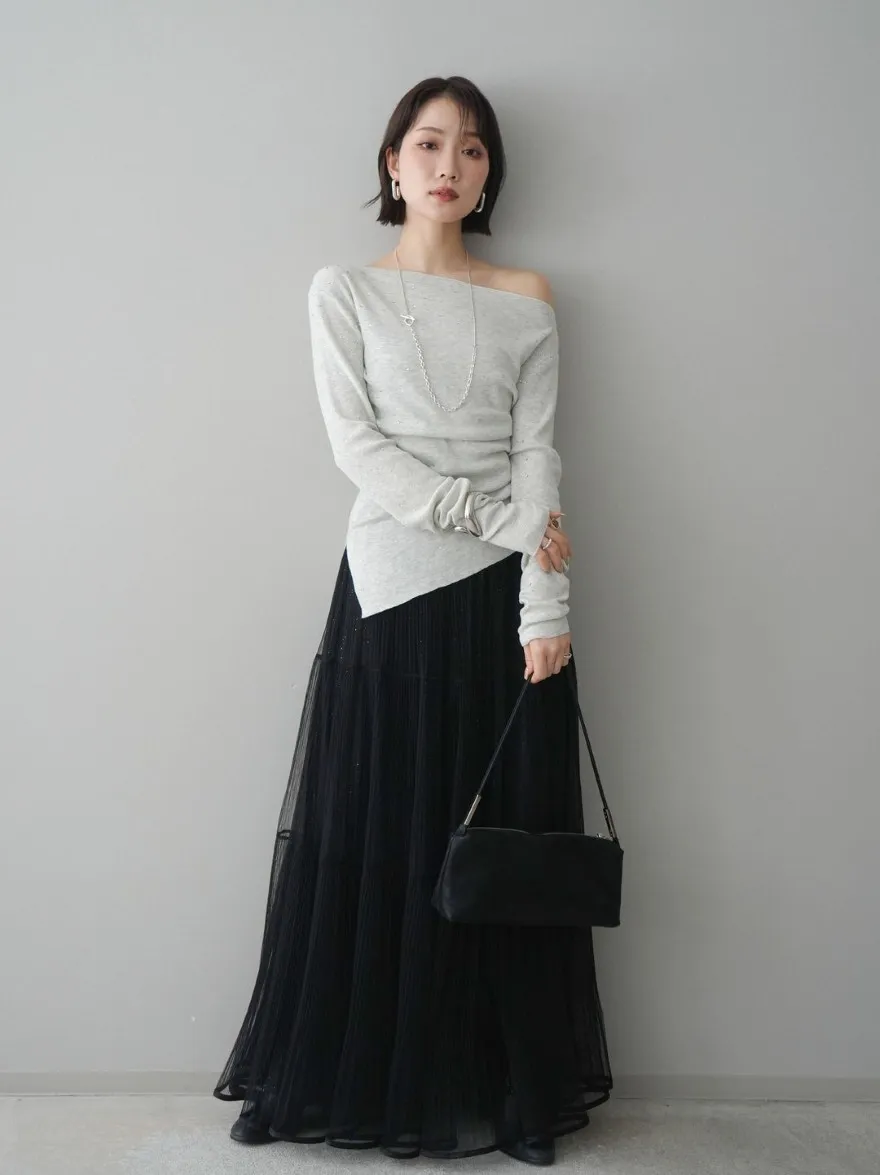極美細褶垂墜長紗裙
