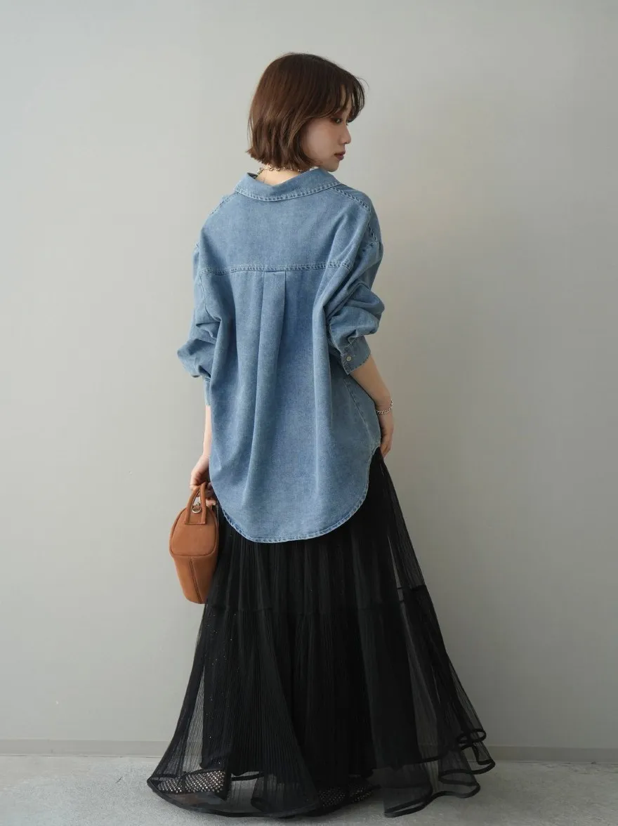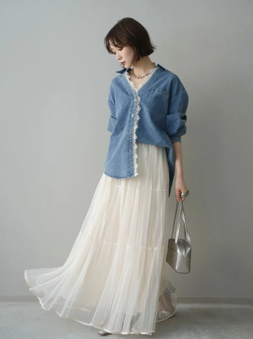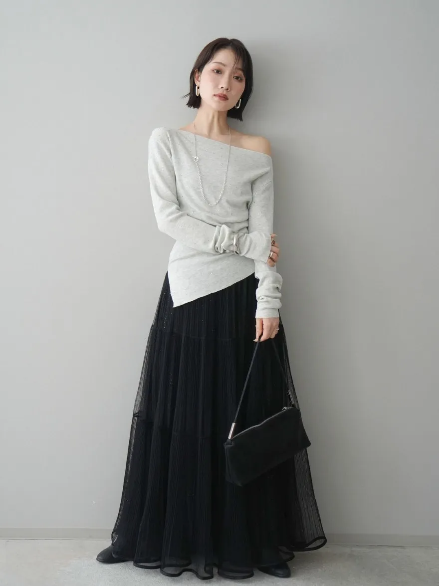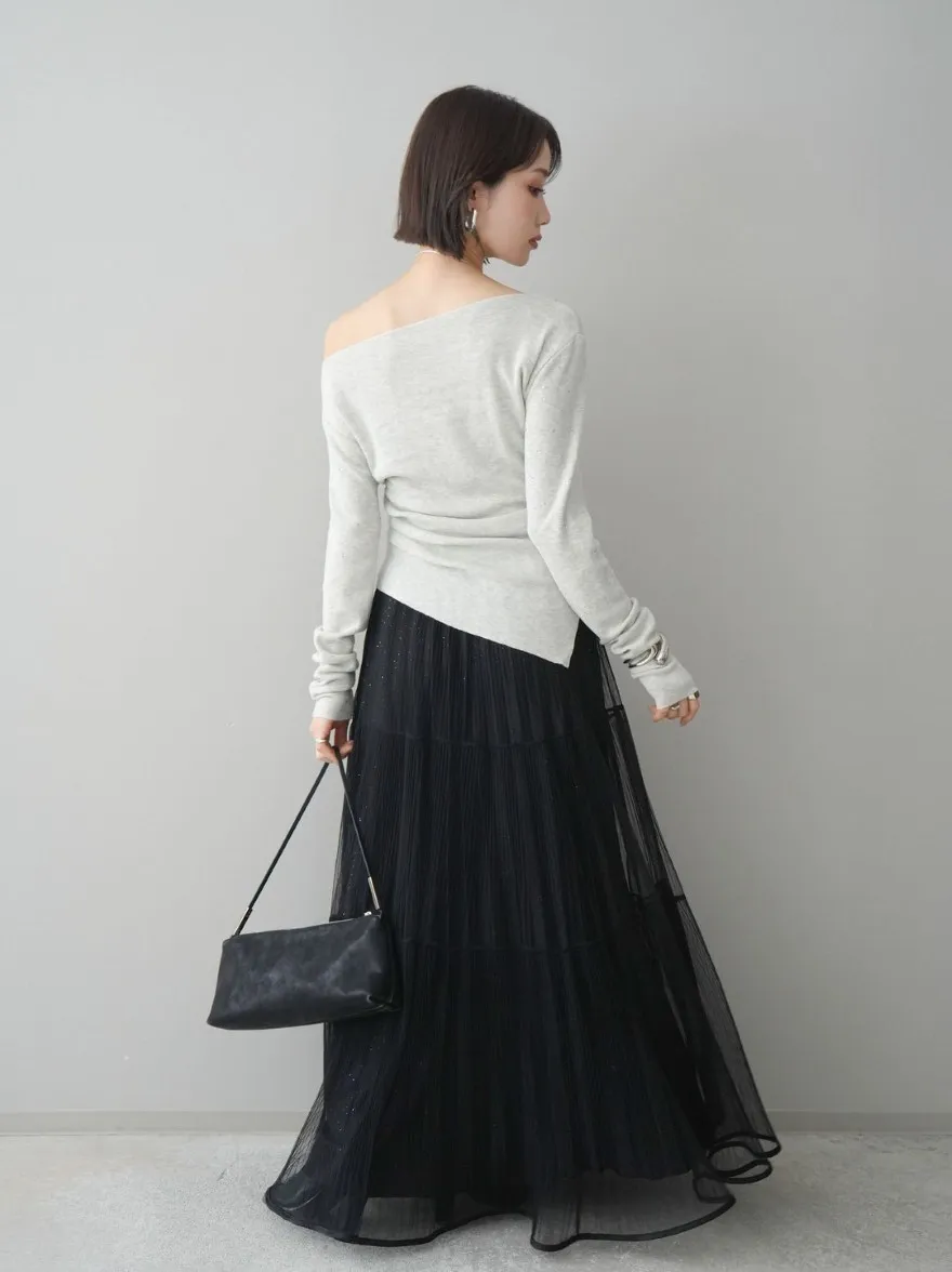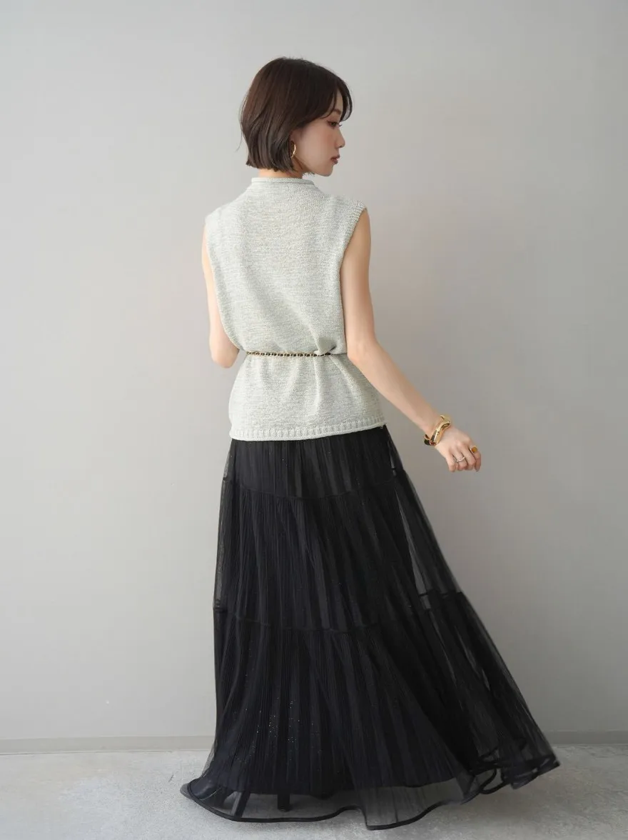 極美細褶垂墜長紗裙