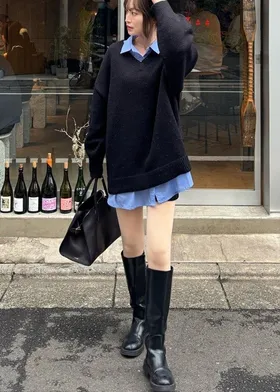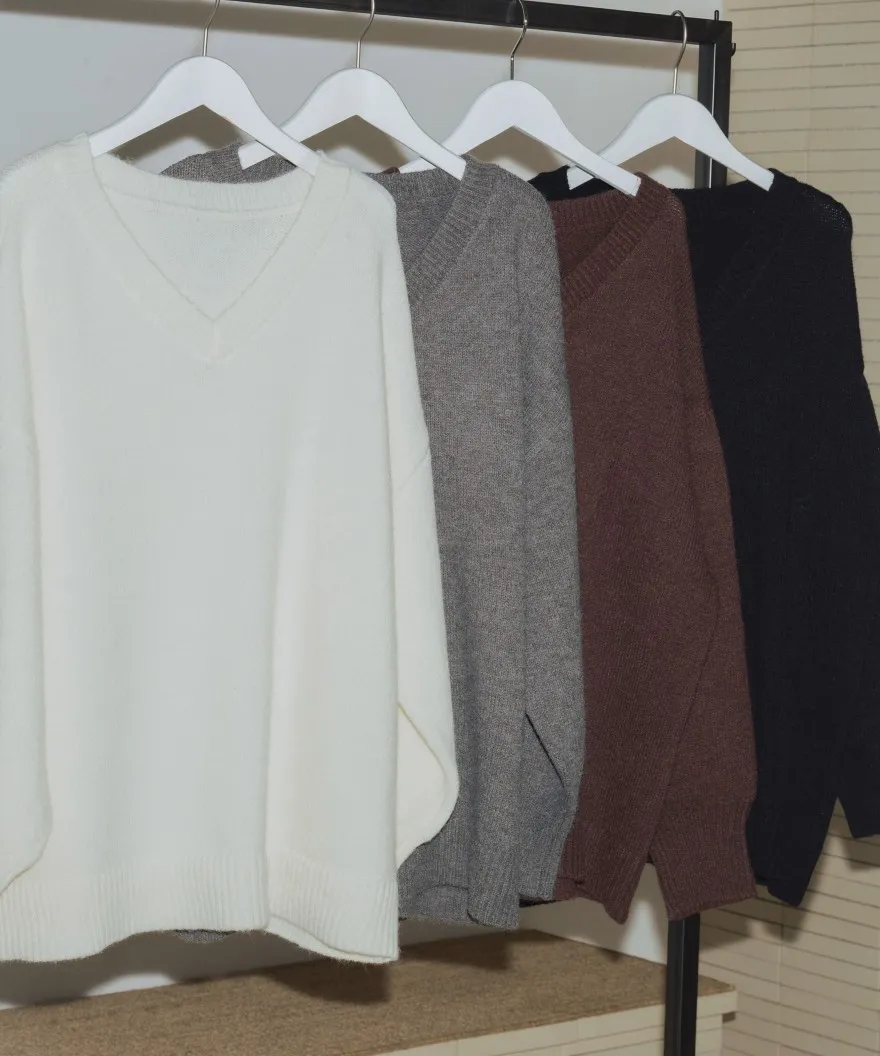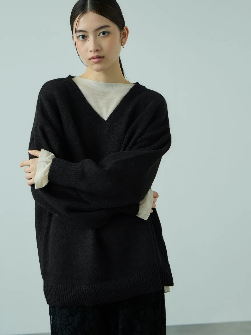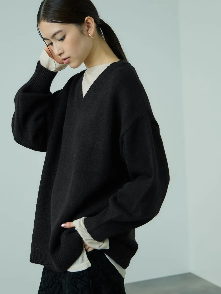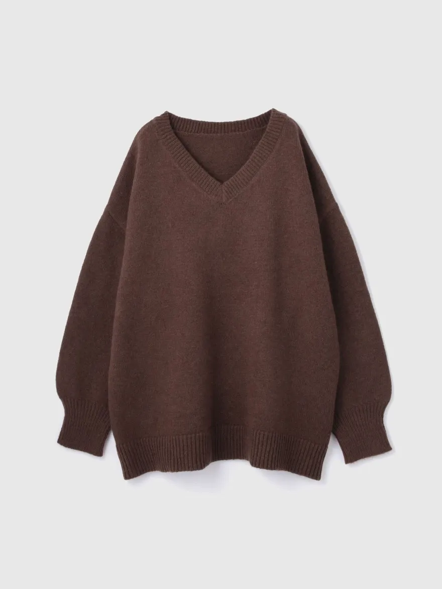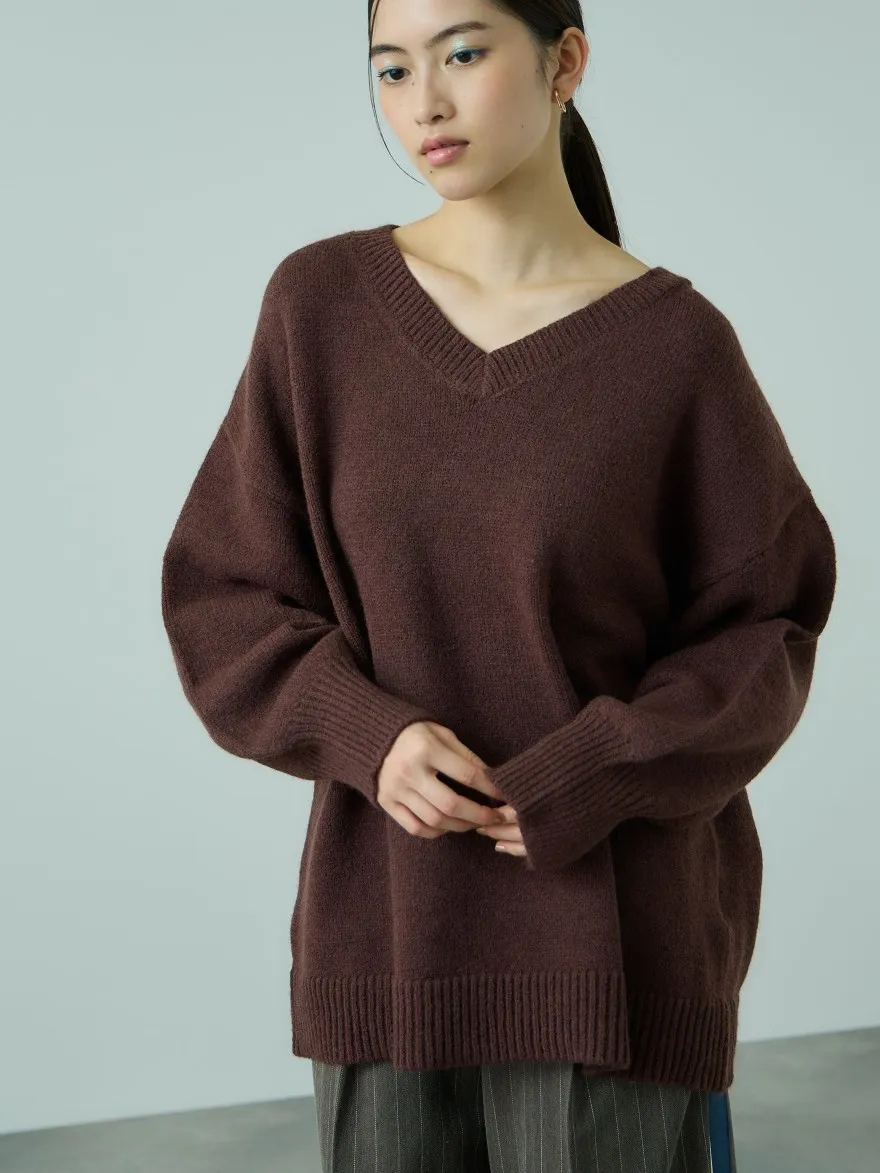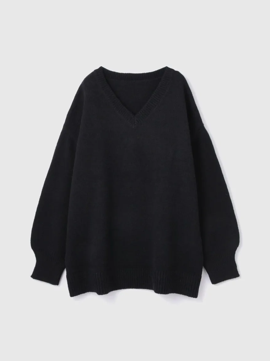 FINAL SALE~簡約柔軟蓬鬆V領長板毛衣