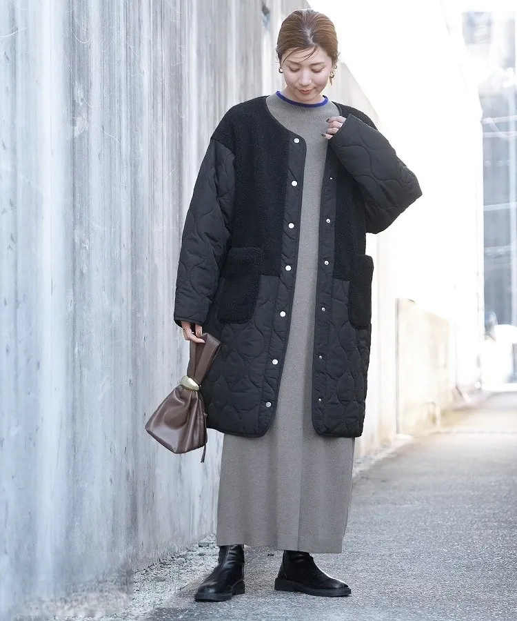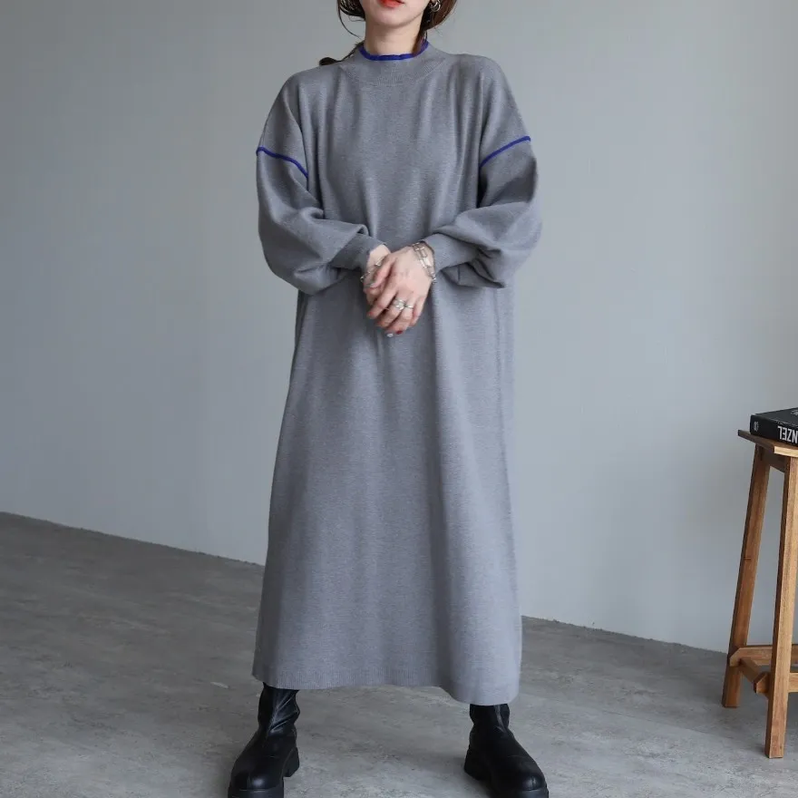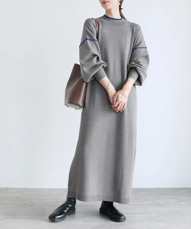小包領 垂墜感長洋裝