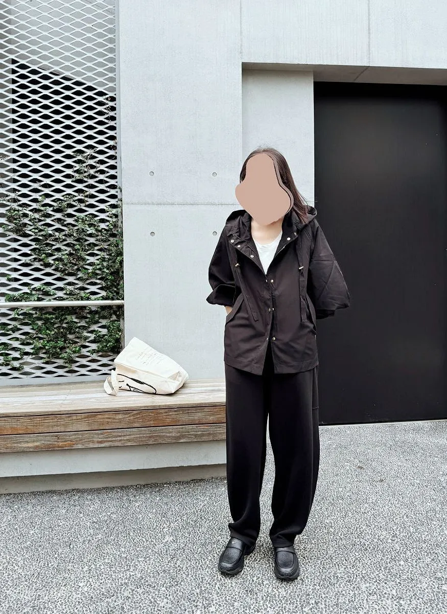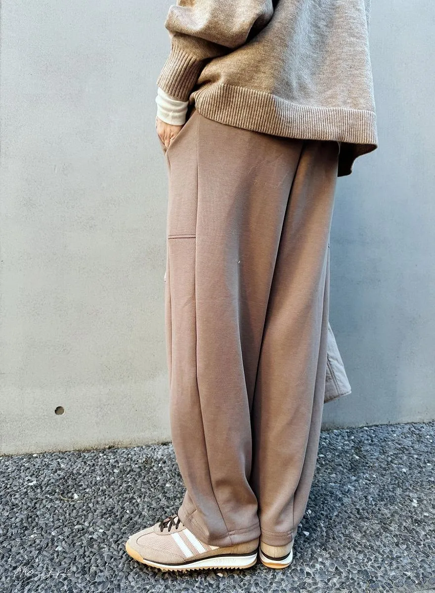 利用側邊立體車線+下擺褲管縮腳寬褲