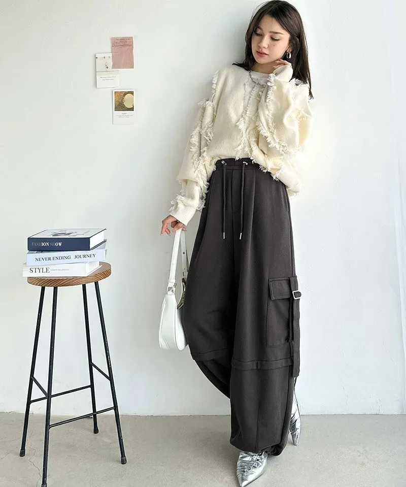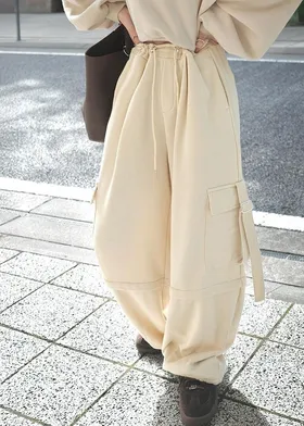 抽繩鬆緊腰頭及下擺調節褲口設計,可依個人喜好調整鬆緊,打造不同輪廓感