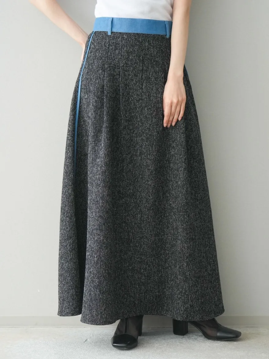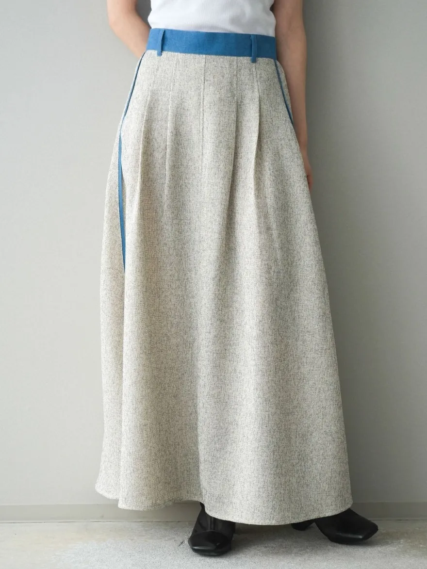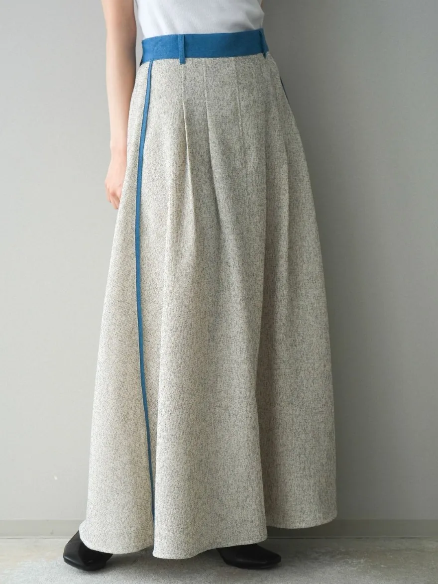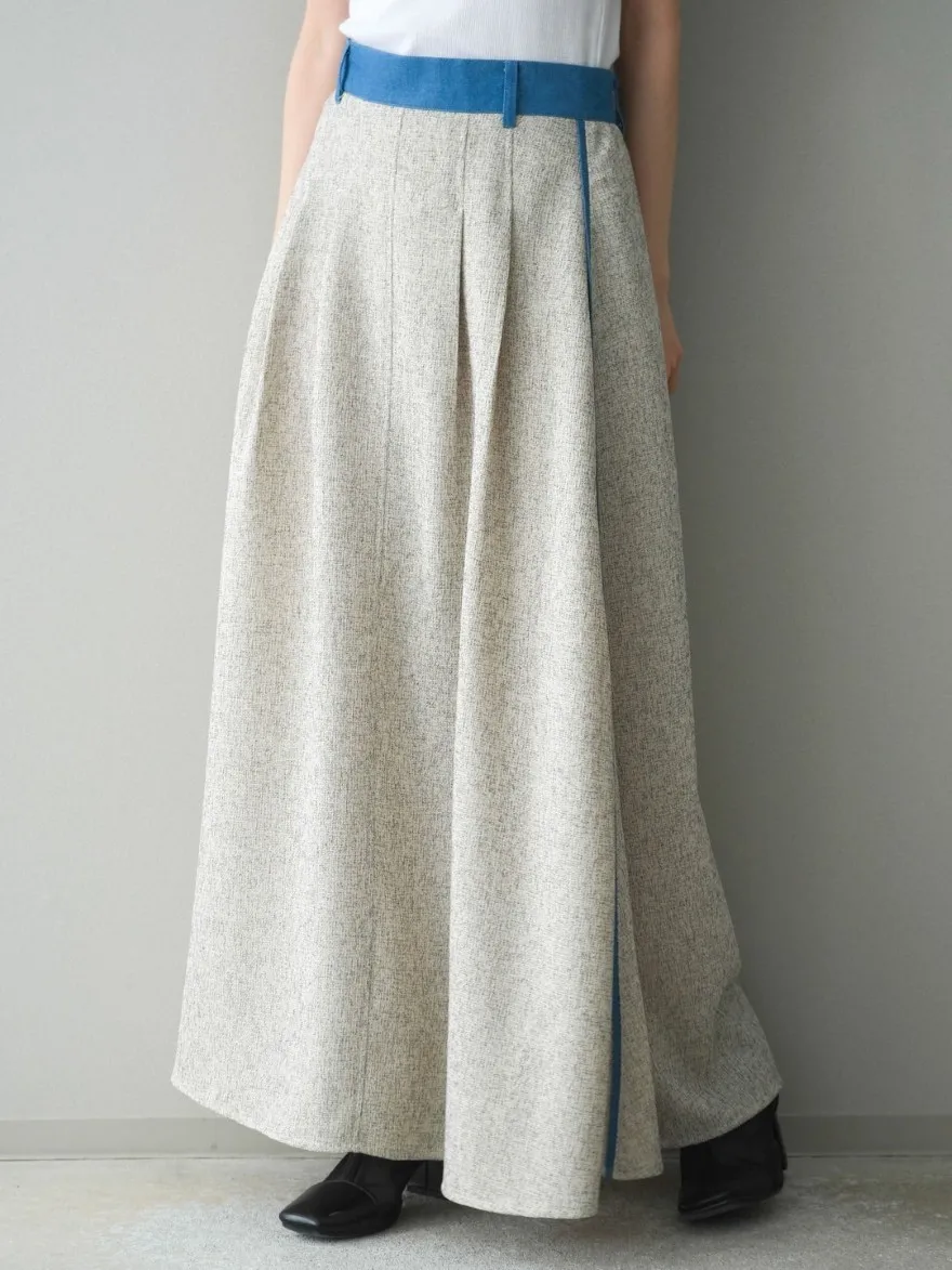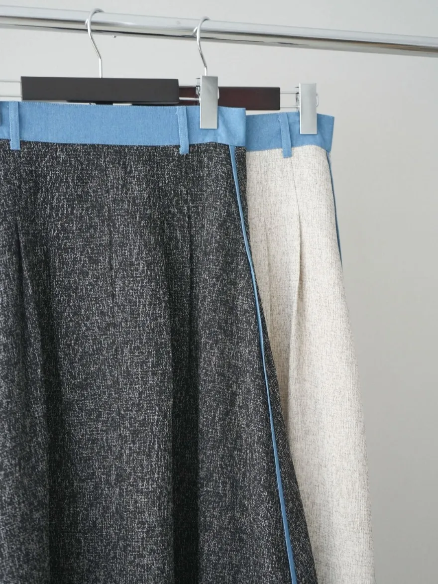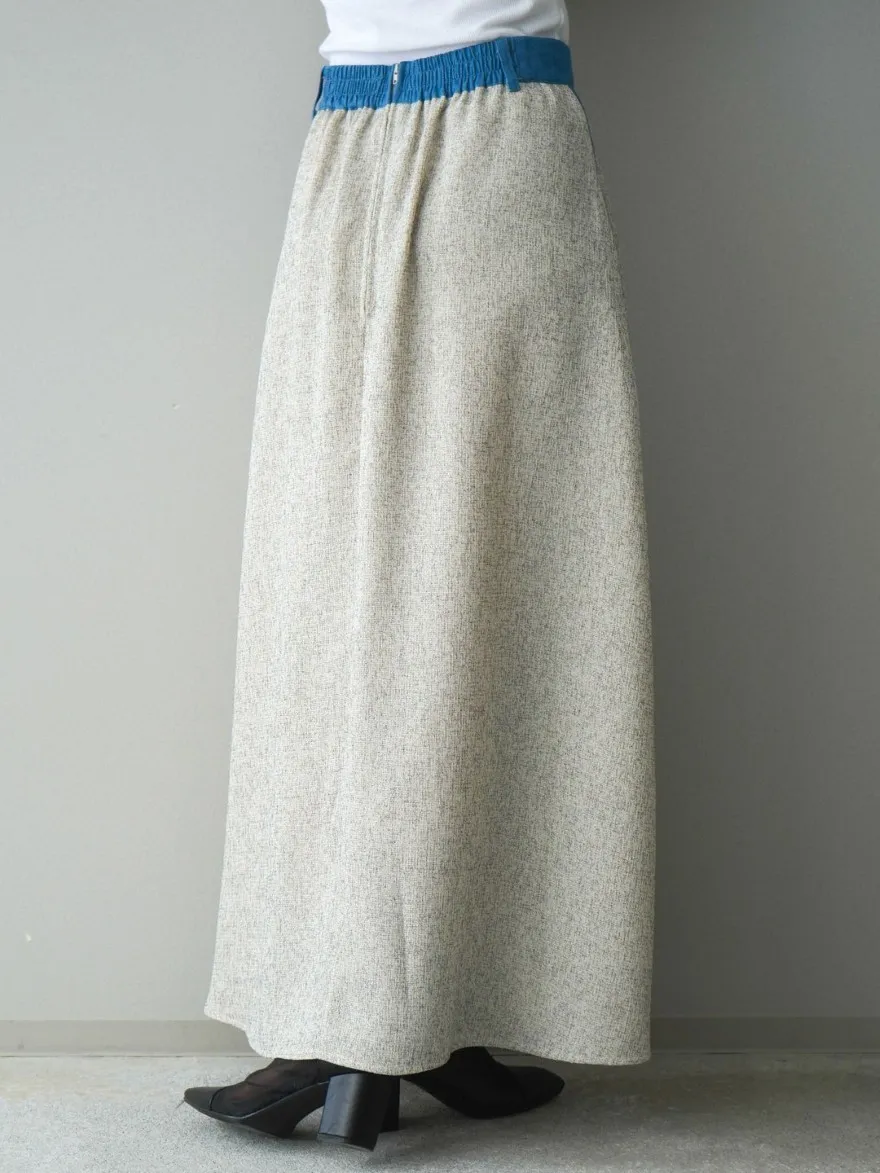 這一款有襯衫可以搭配成套成套著用 超級時髦春天的麻感紋路毛呢腰部跟側邊異素材拼接丹寧完美融合前側平順 後側鬆緊搭配拉鍊設計可以自行搭配各種腰帶A字修身剪裁腰際車縫打折 髖部修飾順身材質本身就有挺度這一款貼心有兩個長度可以選擇!S-88cmM-95cm不管嬌小或是高個子女孩可以自由選擇長度搭配2色