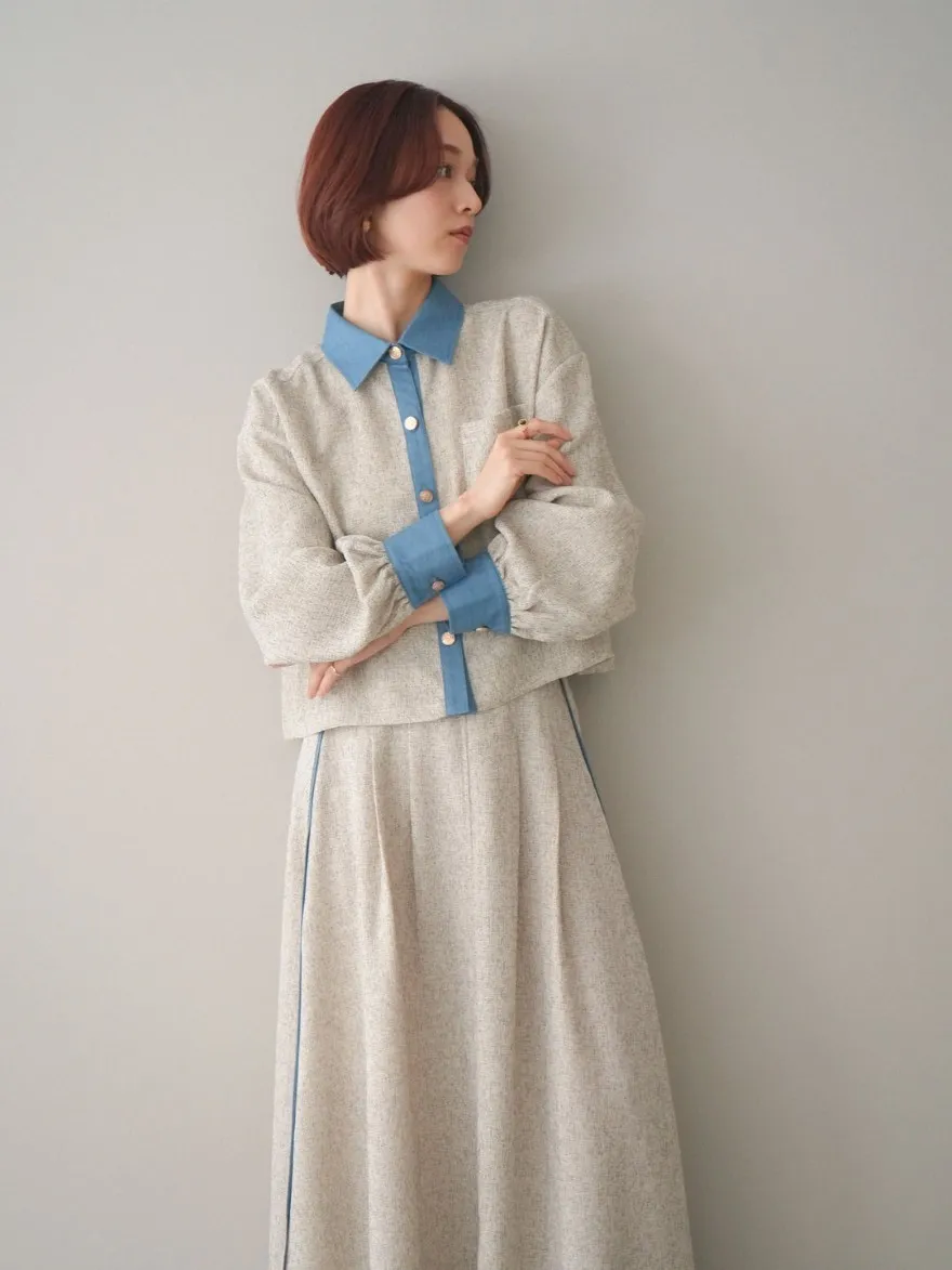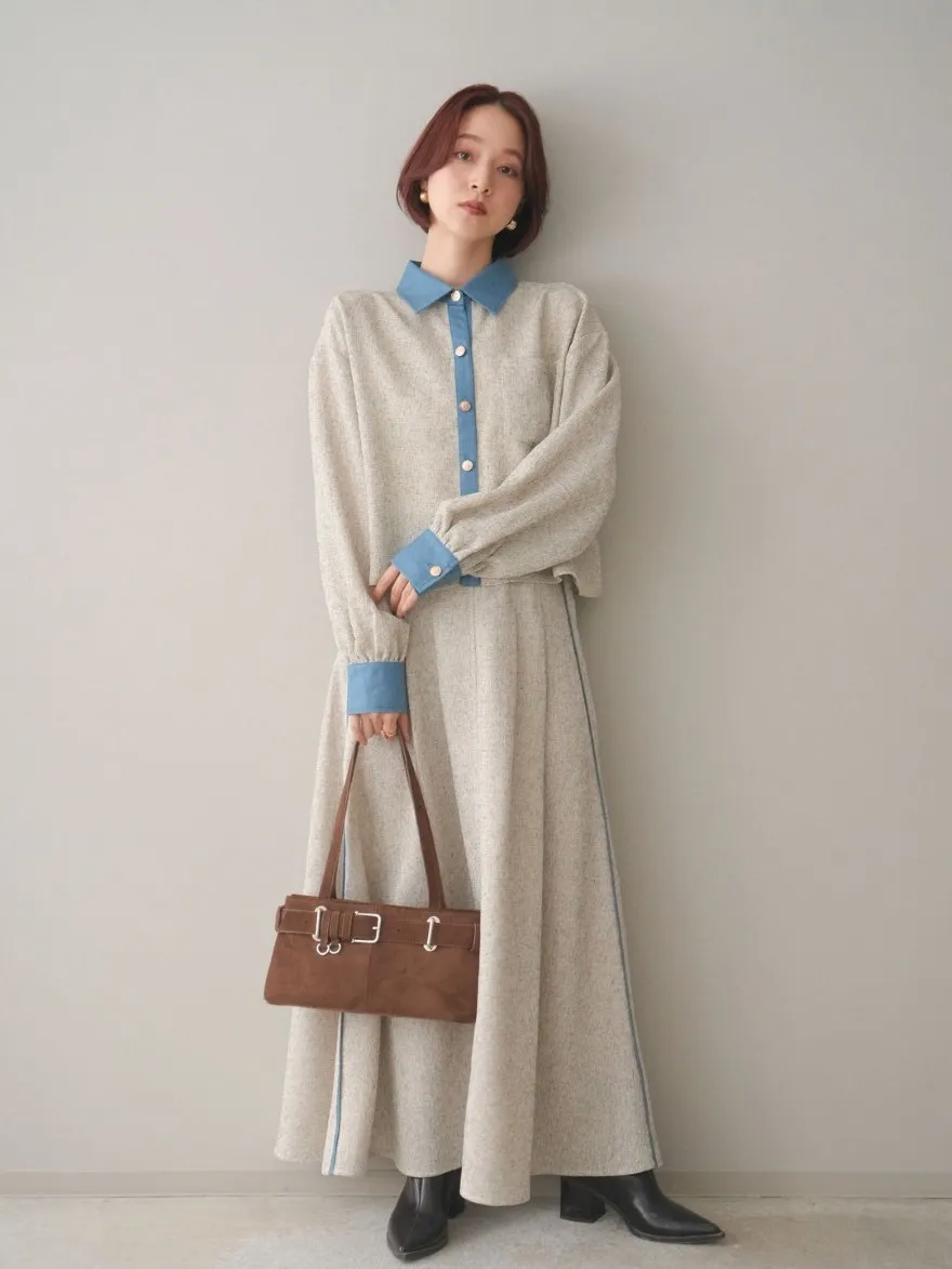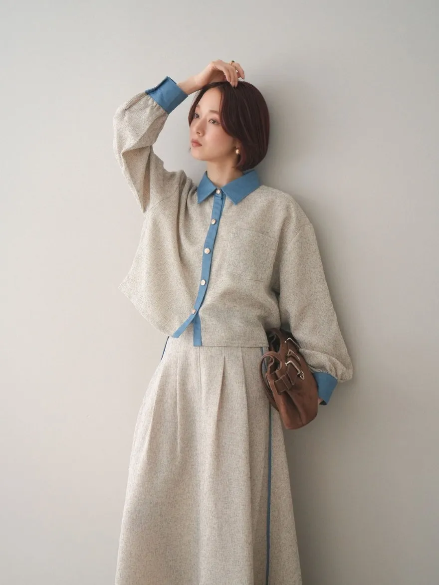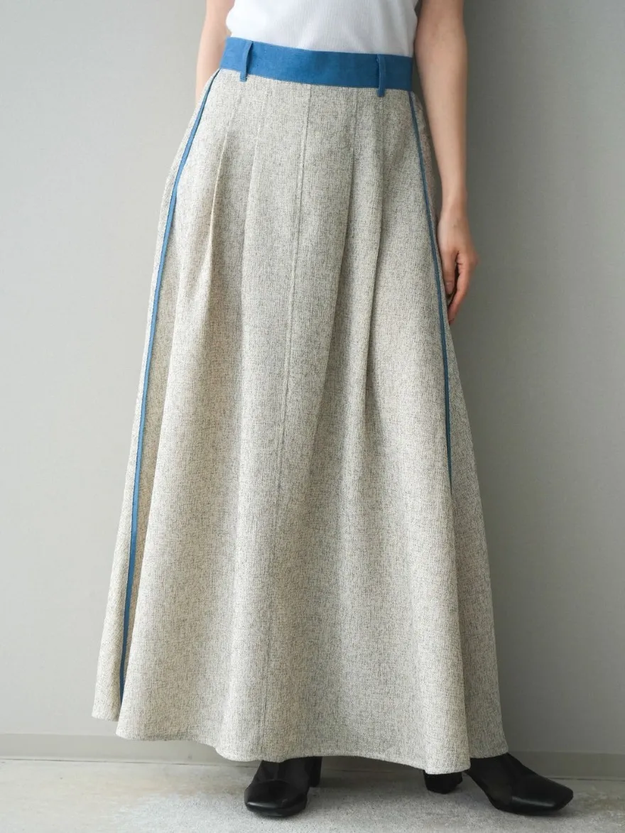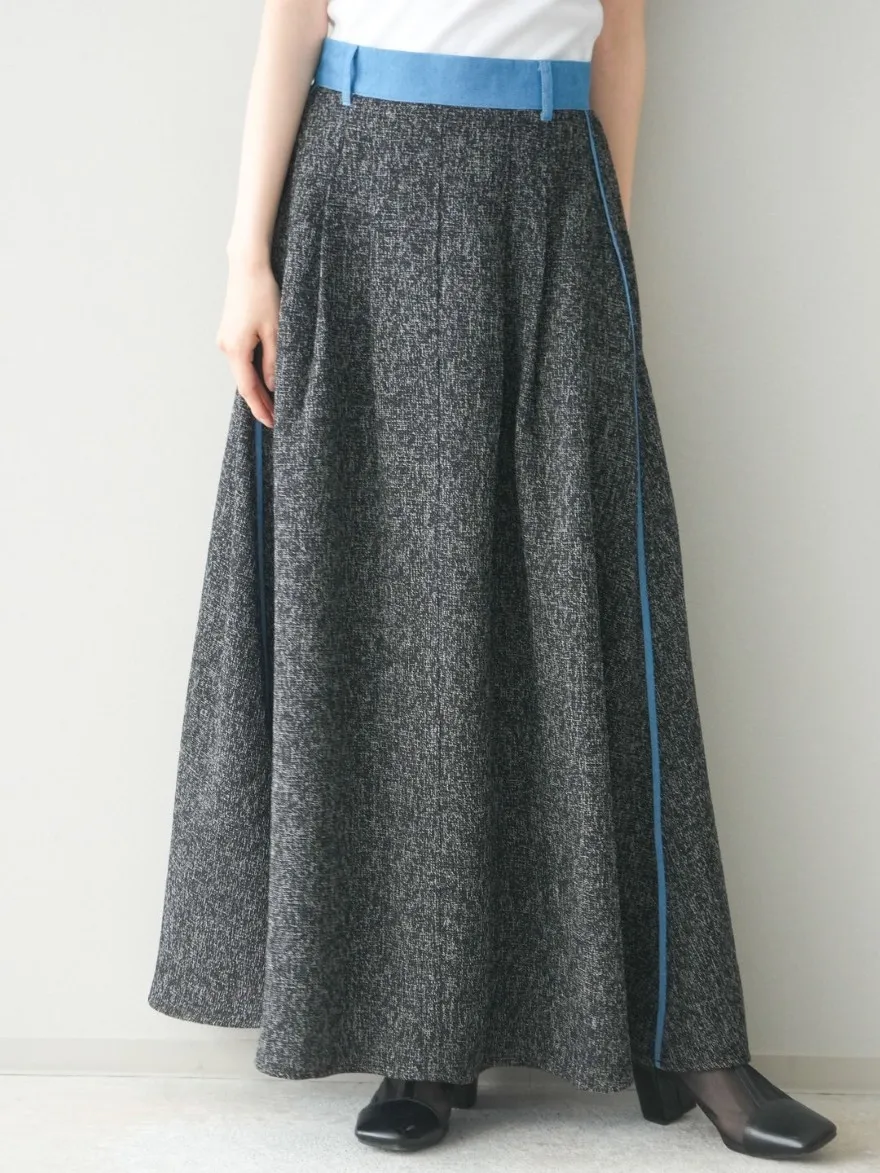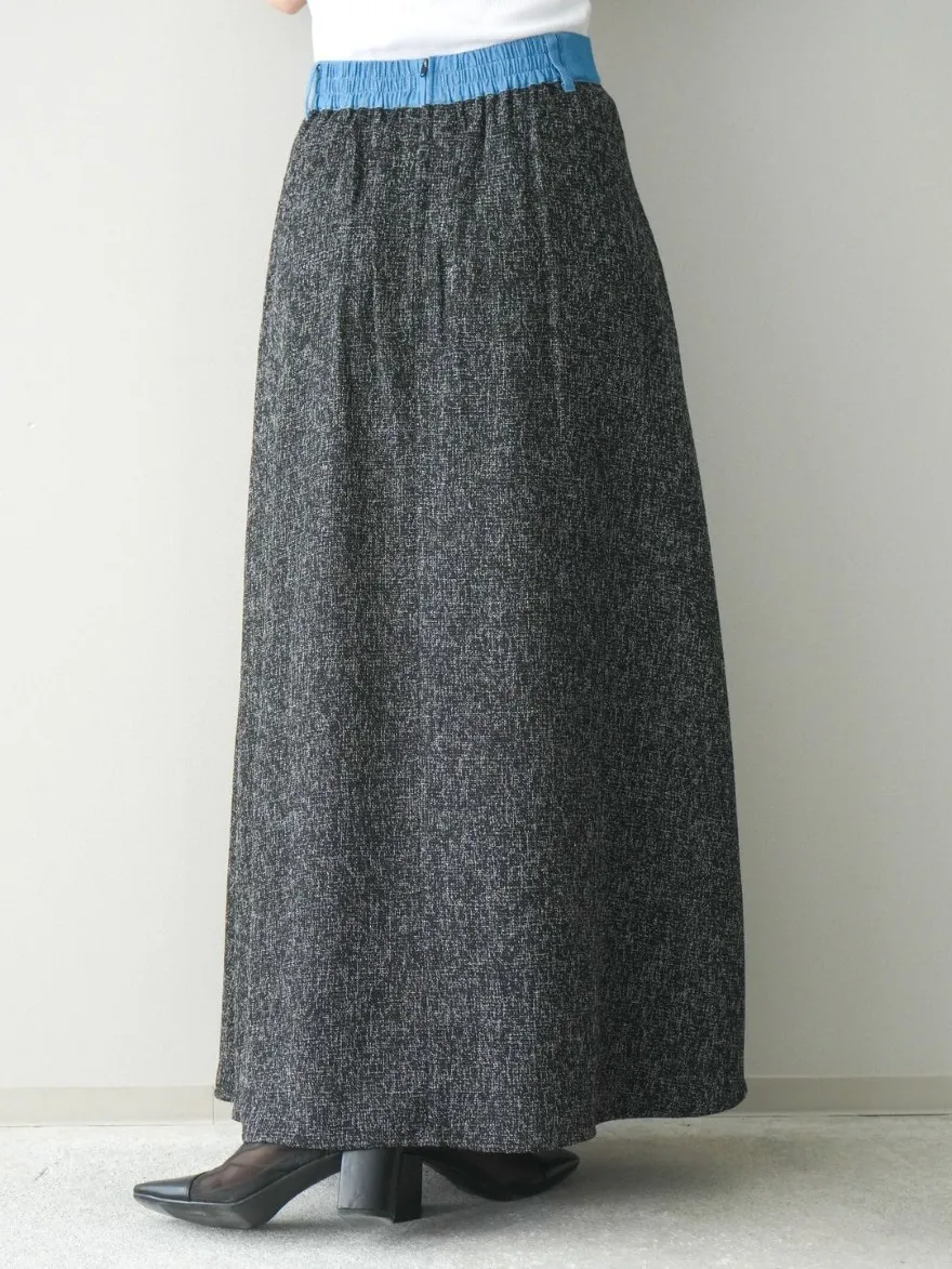 這一款有襯衫可以搭配成套成套著用 超級時髦春天的麻感紋路毛呢腰部跟側邊異素材拼接丹寧完美融合前側平順 後側鬆緊搭配拉鍊設計可以自行搭配各種腰帶A字修身剪裁腰際車縫打折 髖部修飾順身材質本身就有挺度這一款貼心有兩個長度可以選擇!S-88cmM-95cm不管嬌小或是高個子女孩可以自由選擇長度搭配2色