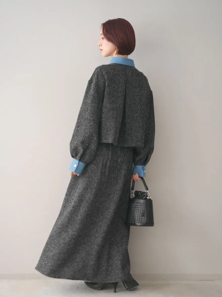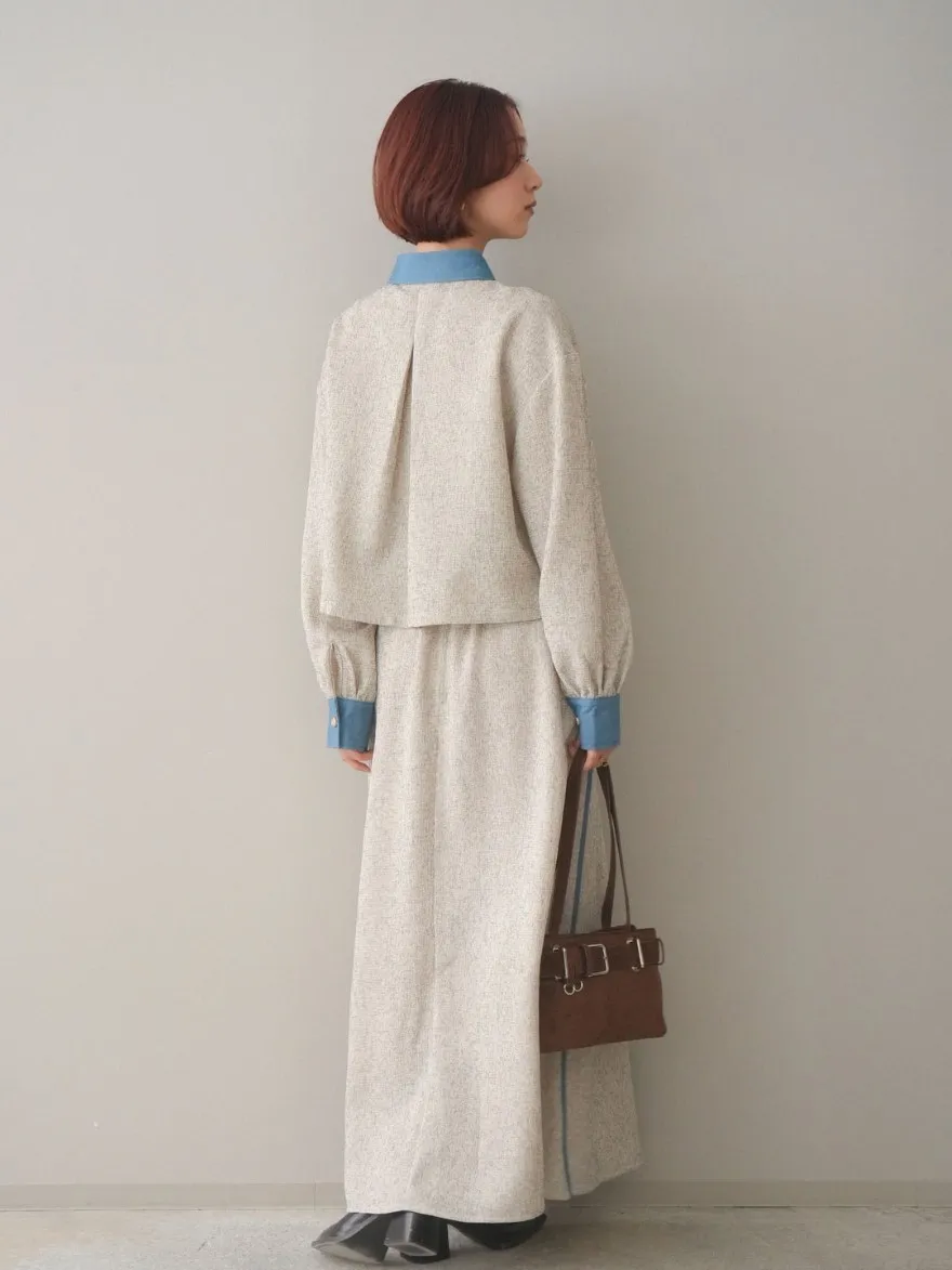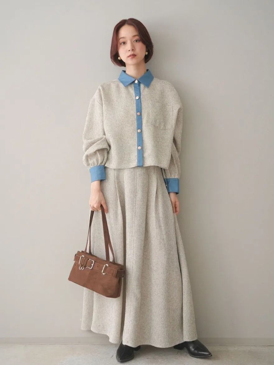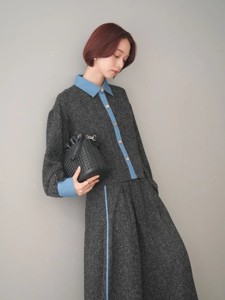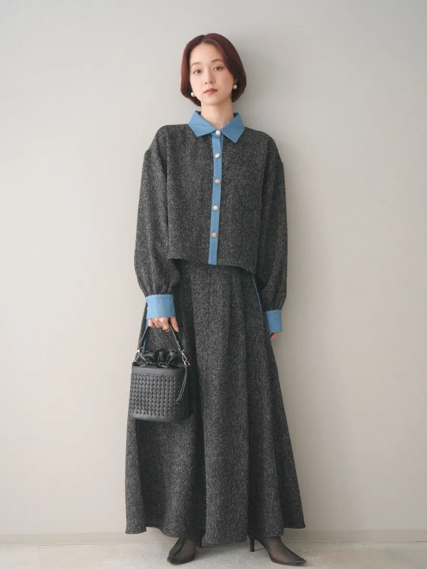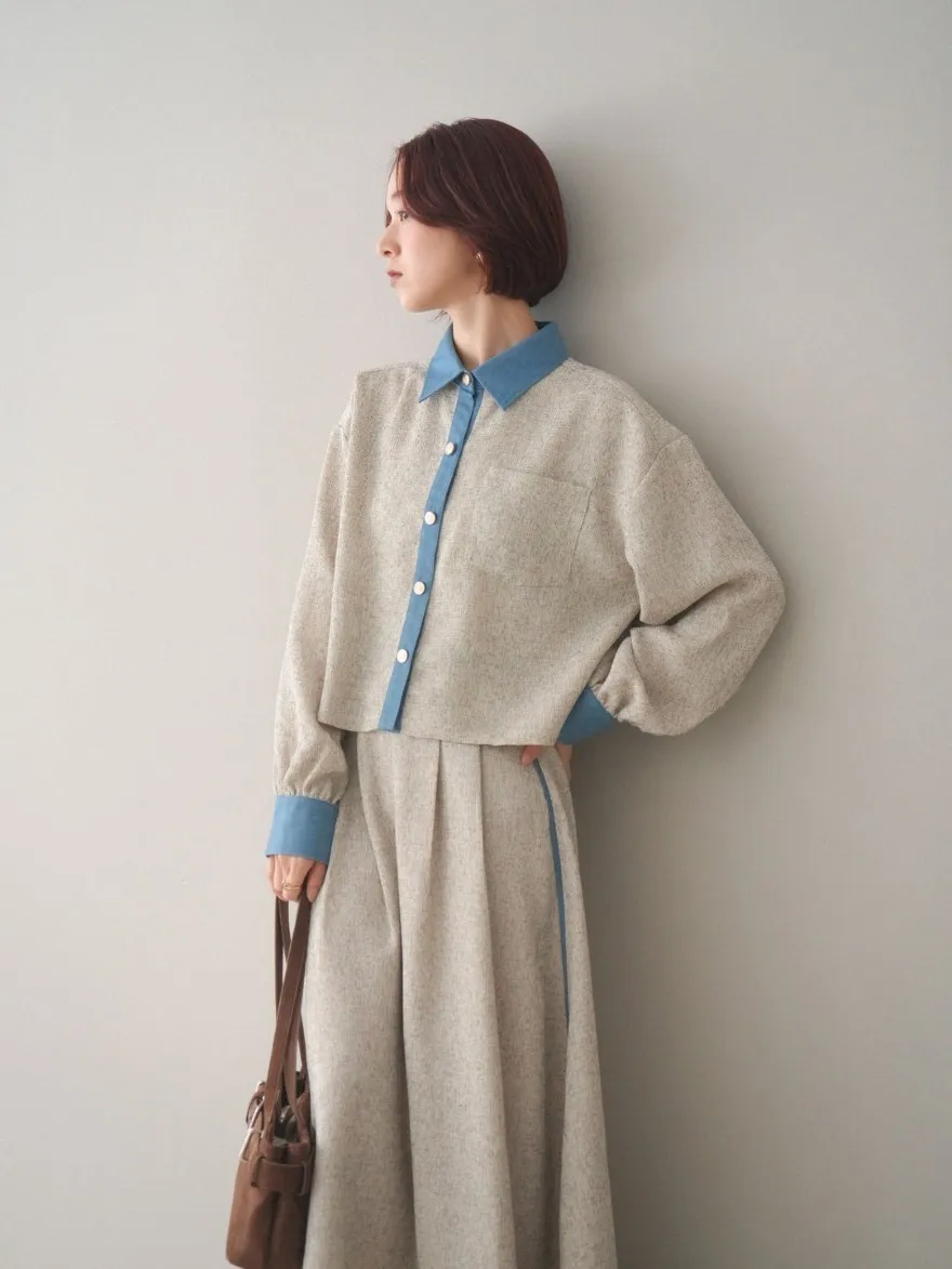 這一款有襯衫可以搭配成套成套著用 超級時髦春天的麻感紋路毛呢腰部跟側邊異素材拼接丹寧完美融合前側平順 後側鬆緊搭配拉鍊設計可以自行搭配各種腰帶A字修身剪裁腰際車縫打折 髖部修飾順身材質本身就有挺度這一款貼心有兩個長度可以選擇!S-88cmM-95cm不管嬌小或是高個子女孩可以自由選擇長度搭配2色