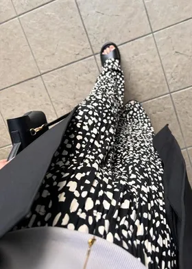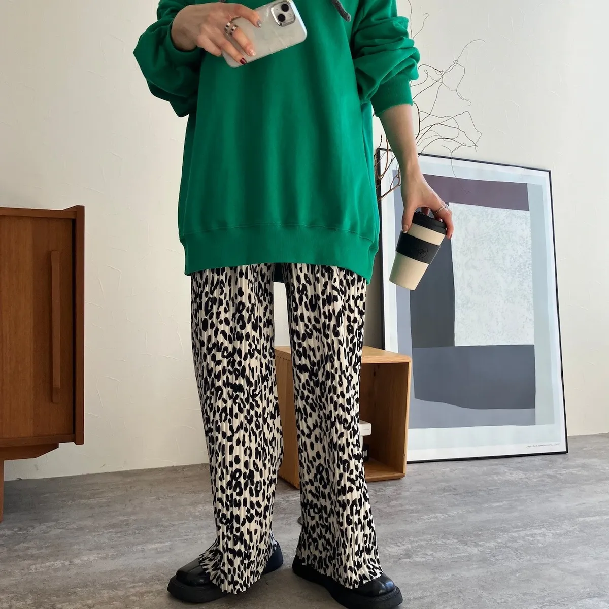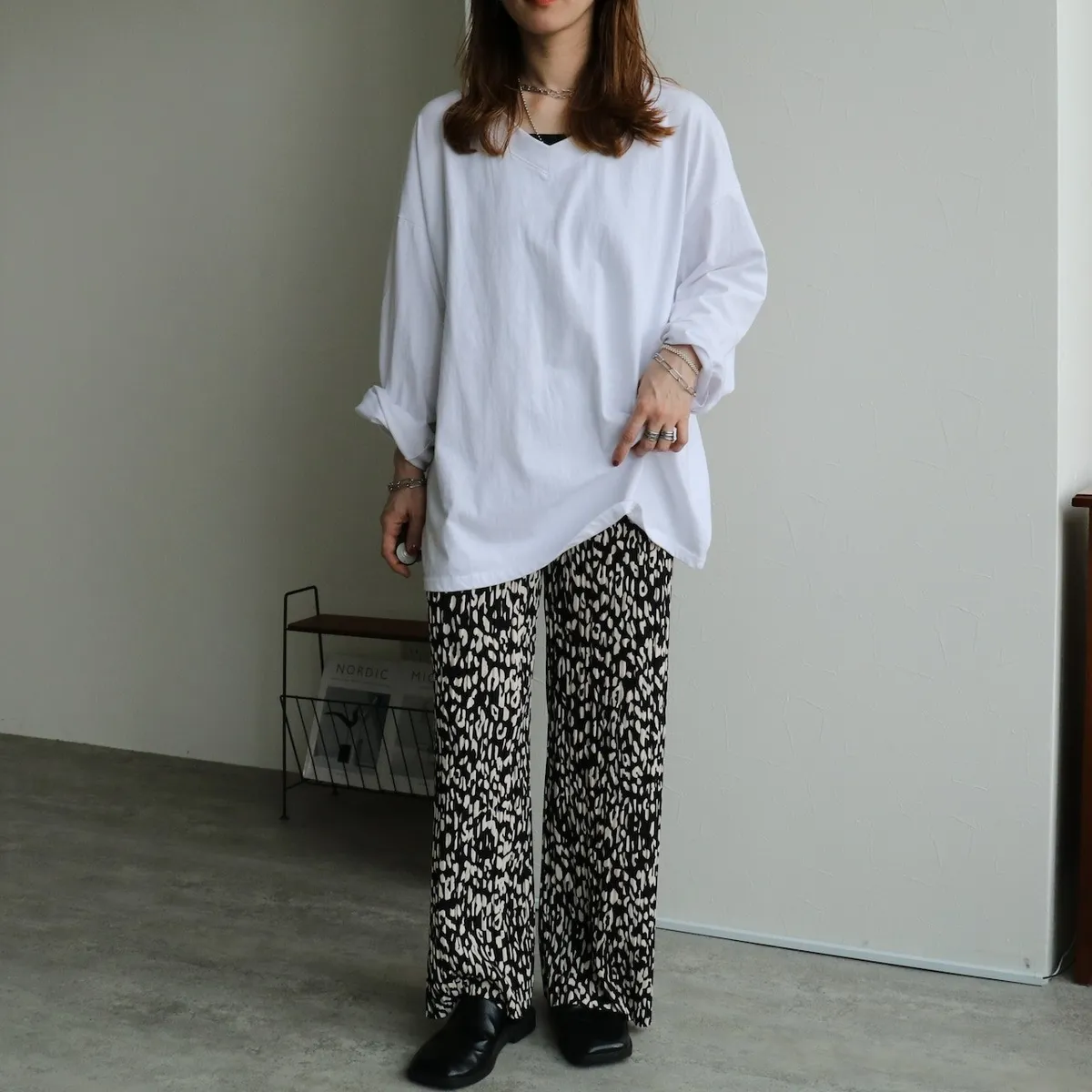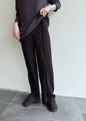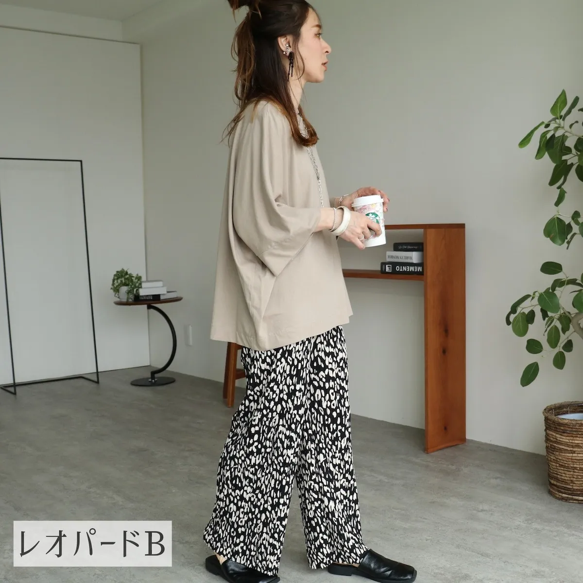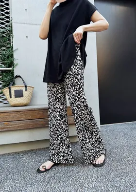 是很順身的寬褲喔~這款的面料很神奇~不會貼在腿上喔