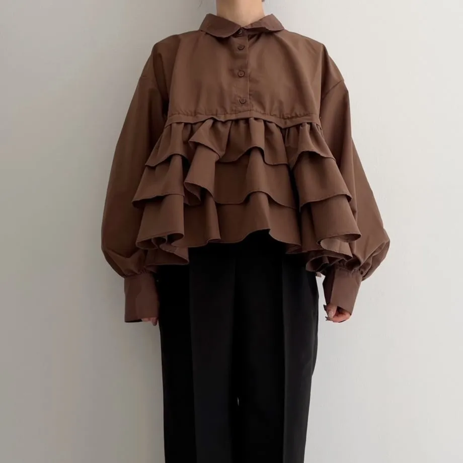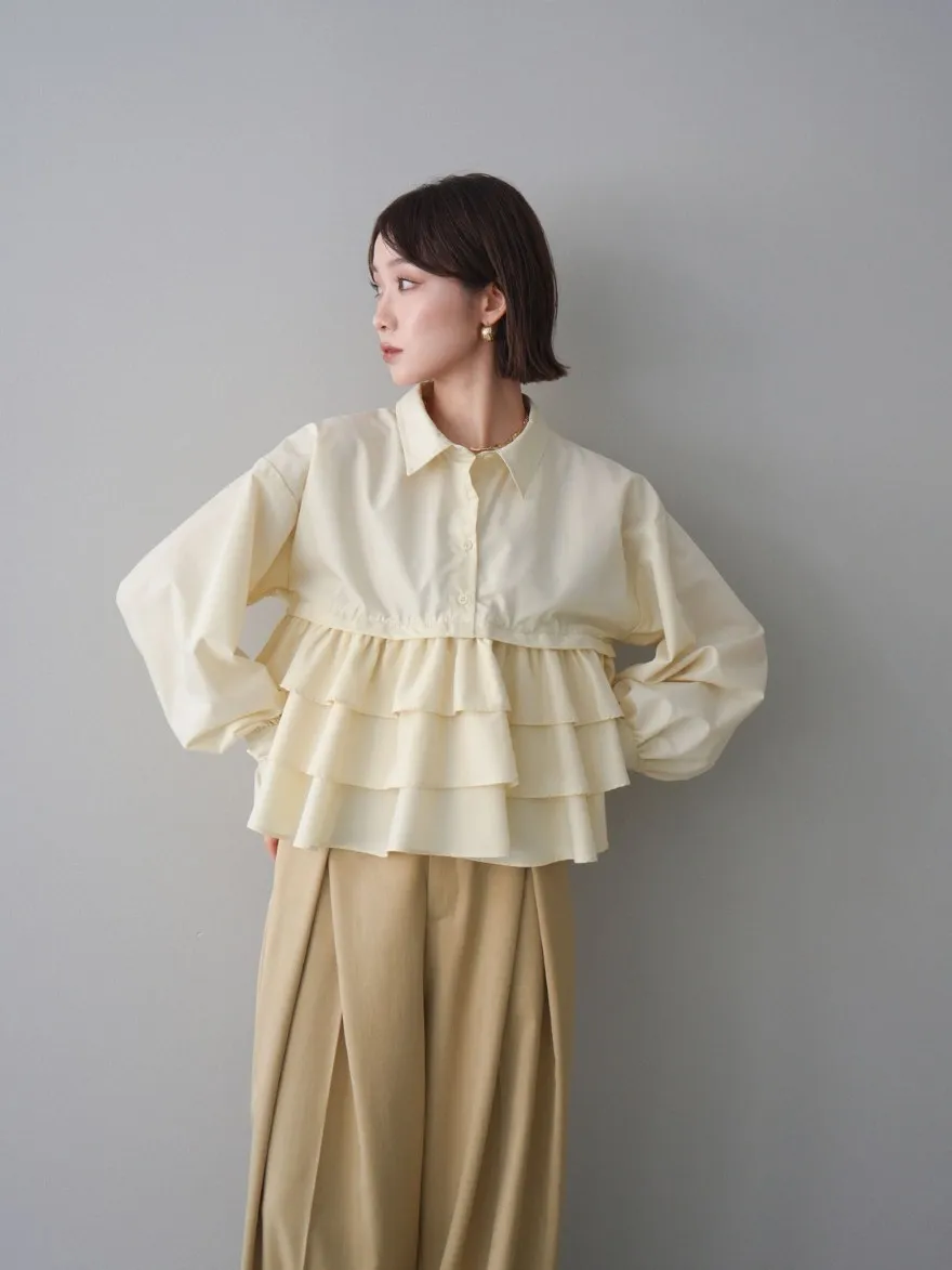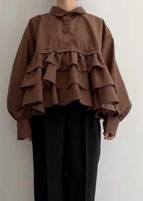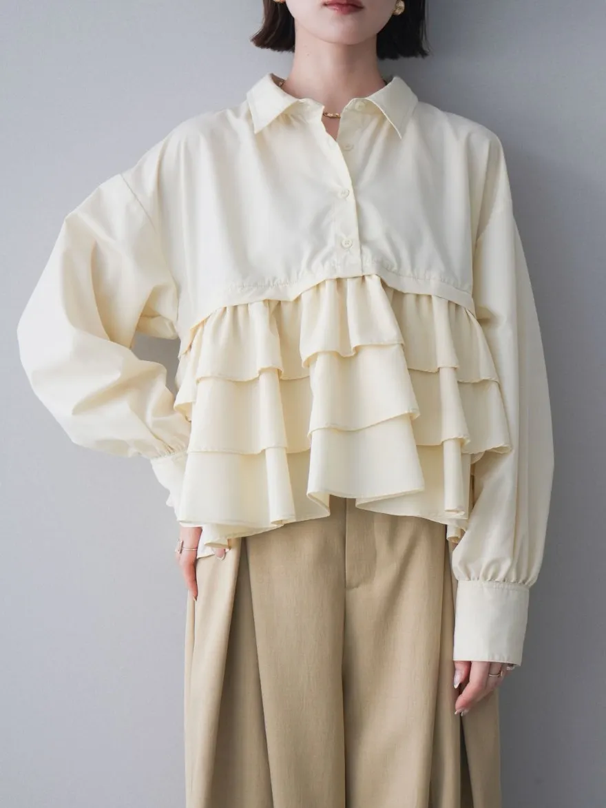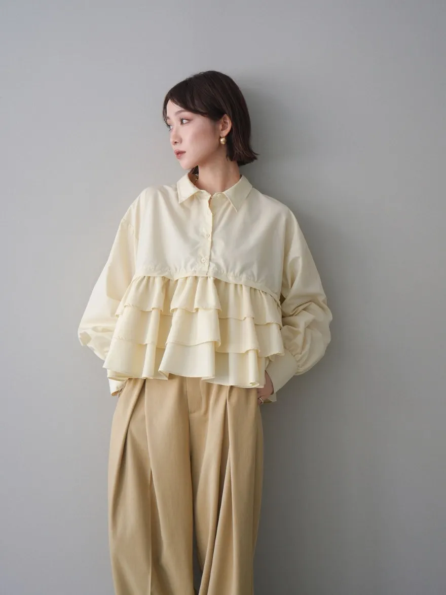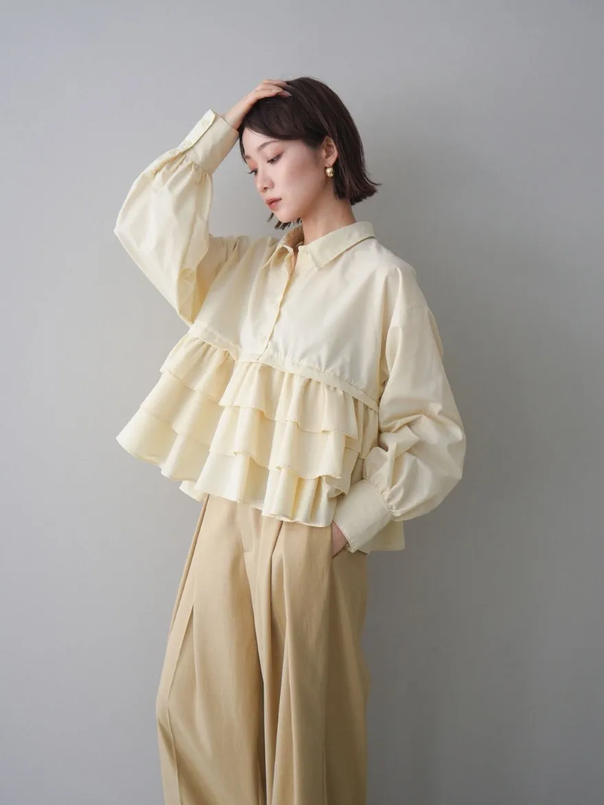 造型感的浪漫層次荷葉短版襯衫
