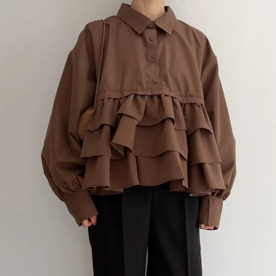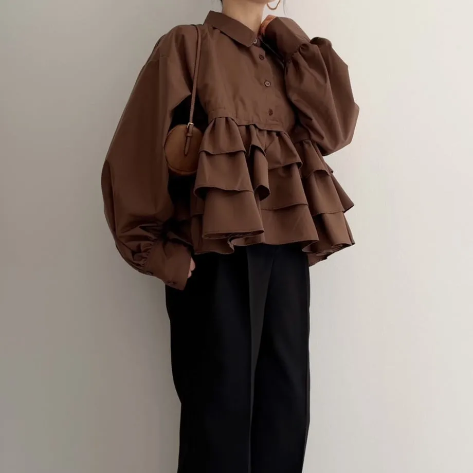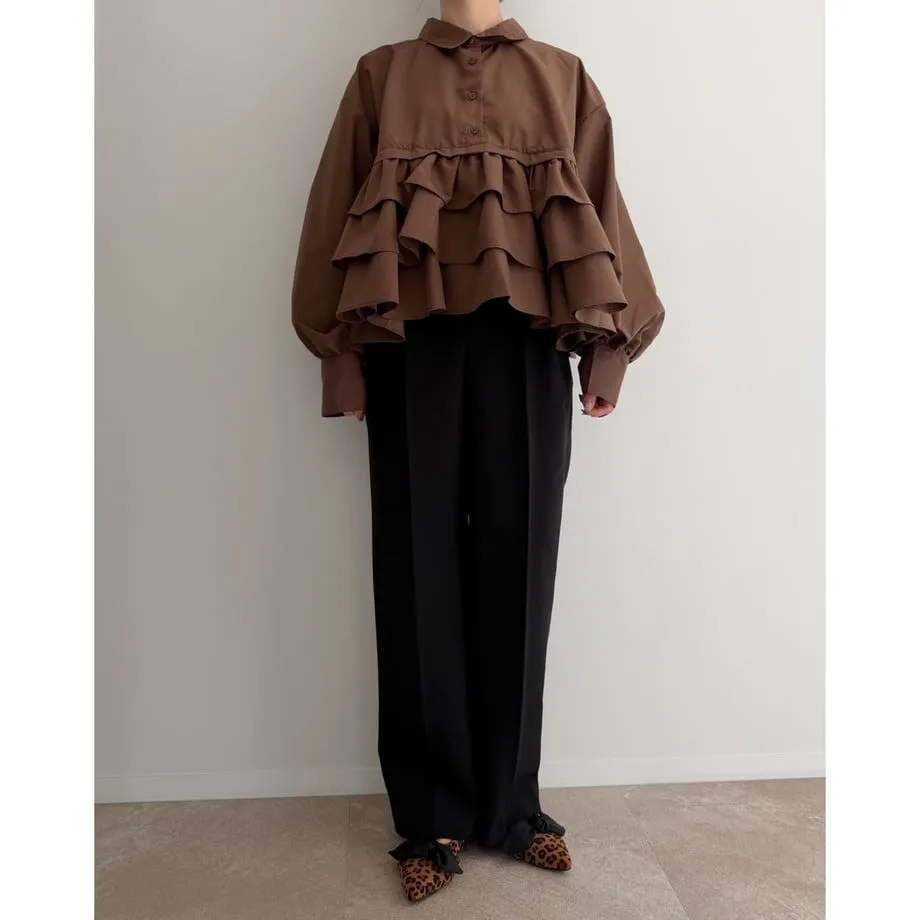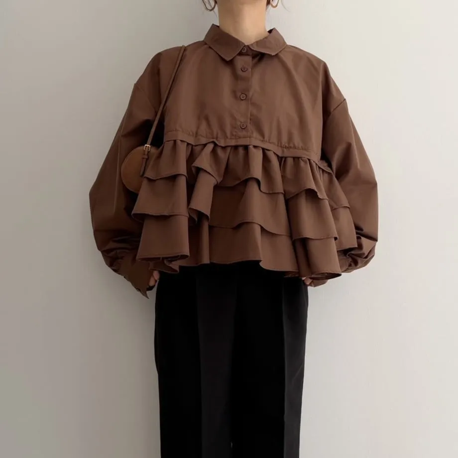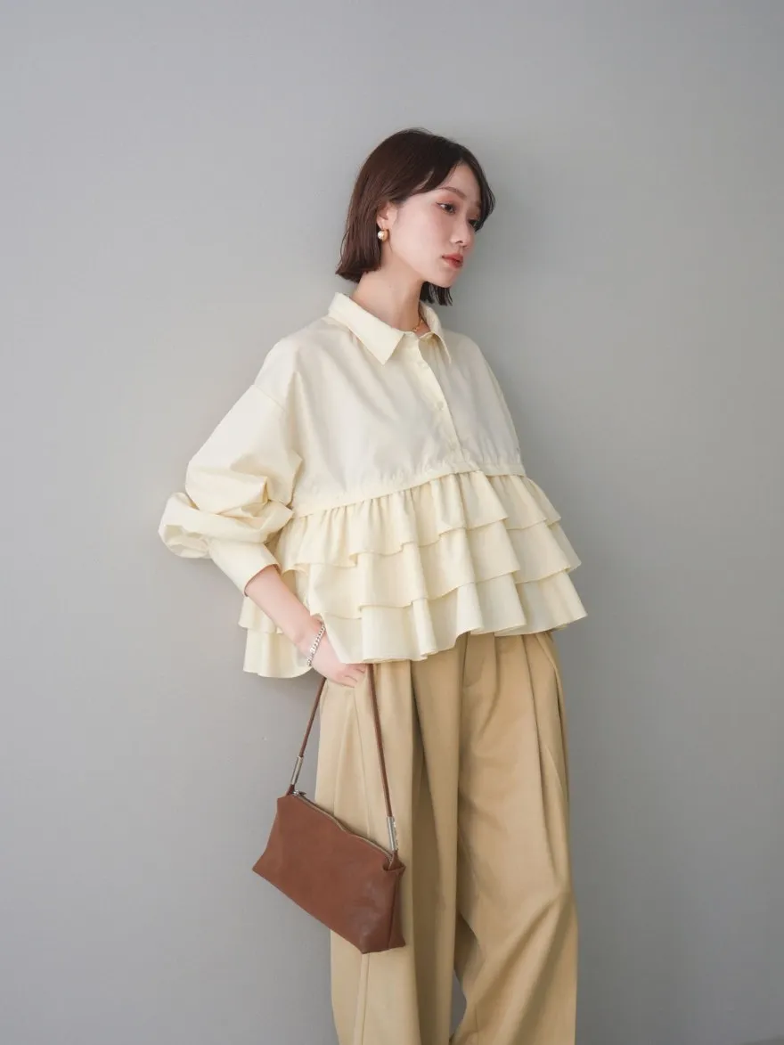 造型感的浪漫層次荷葉短版襯衫