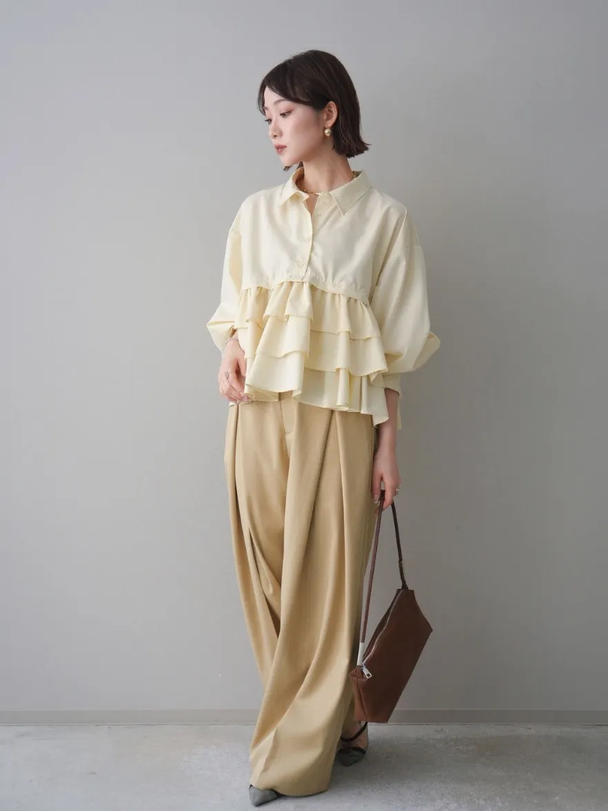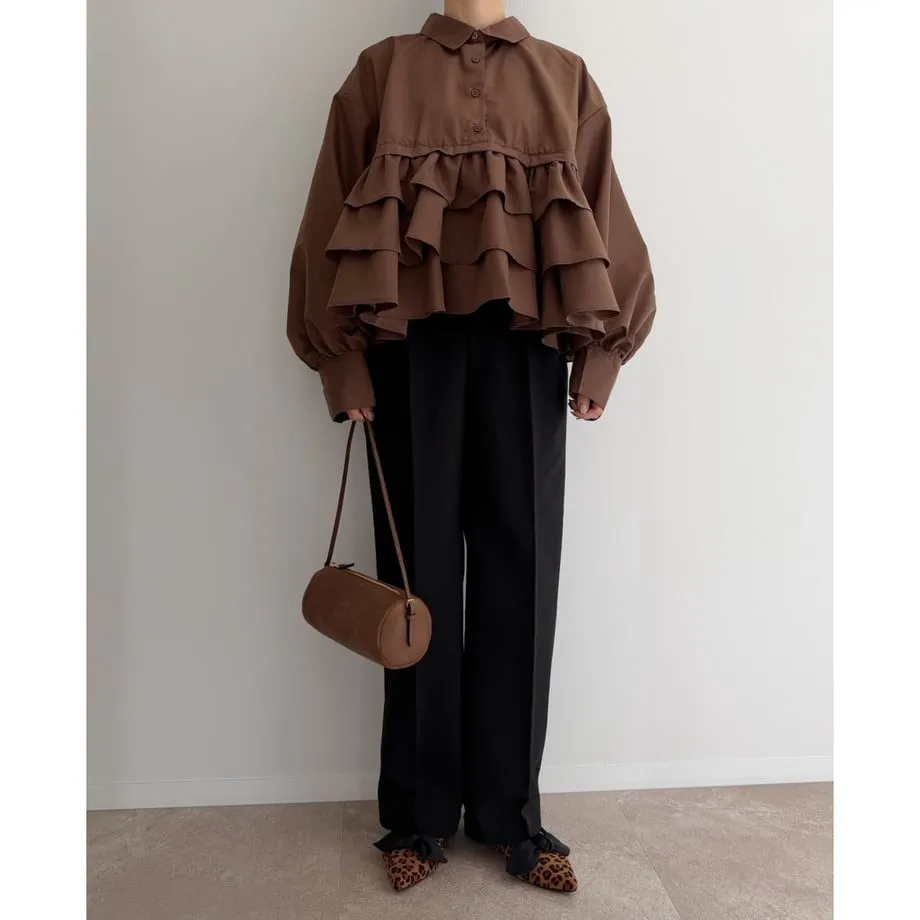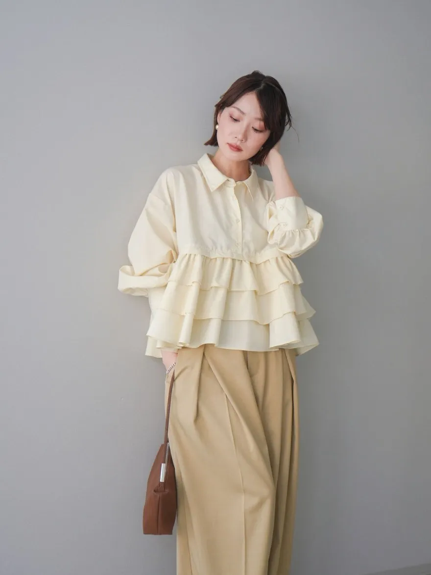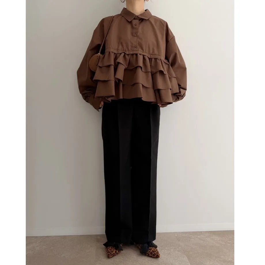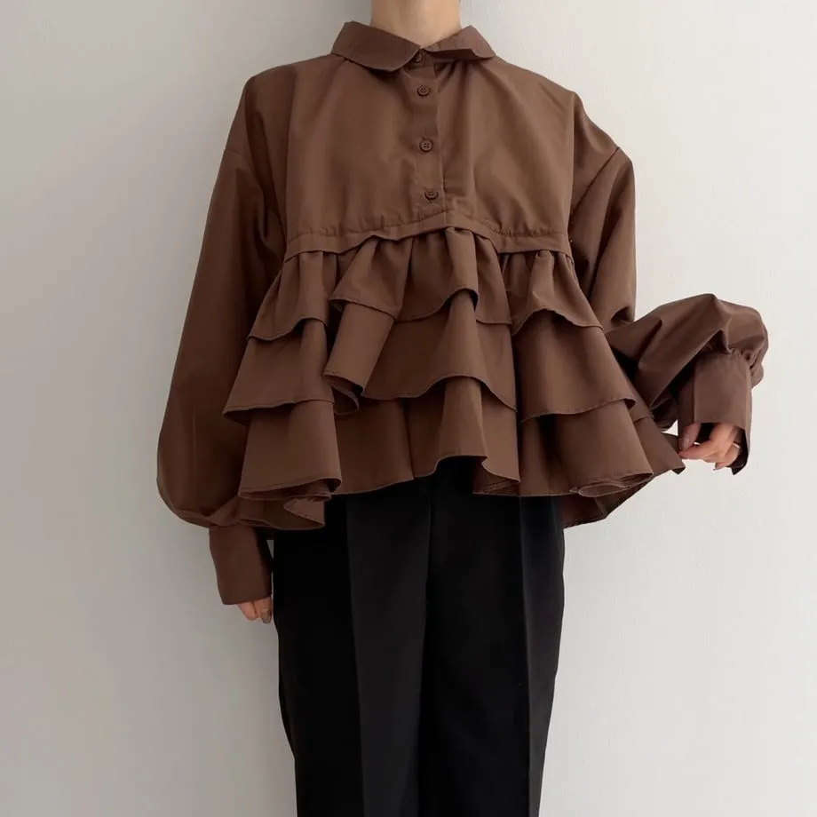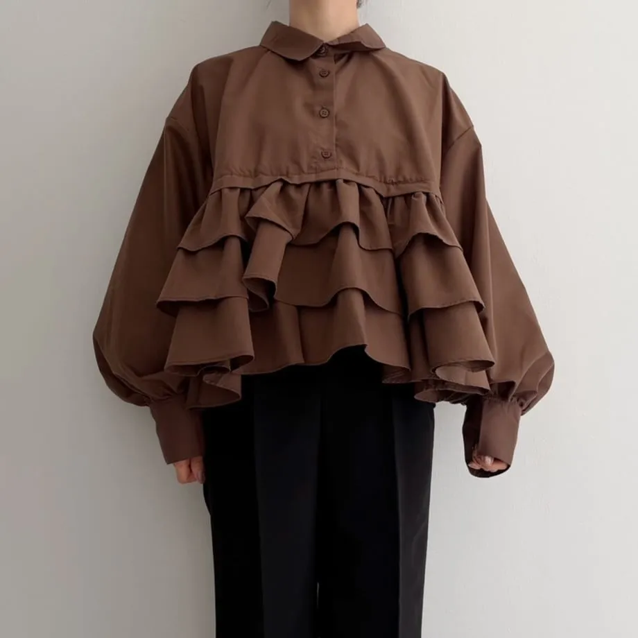 造型感的浪漫層次荷葉短版襯衫