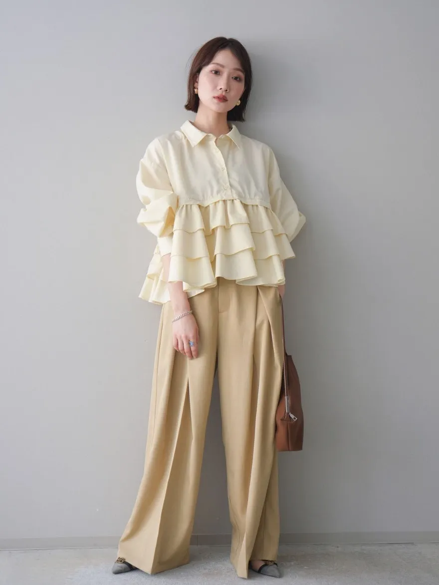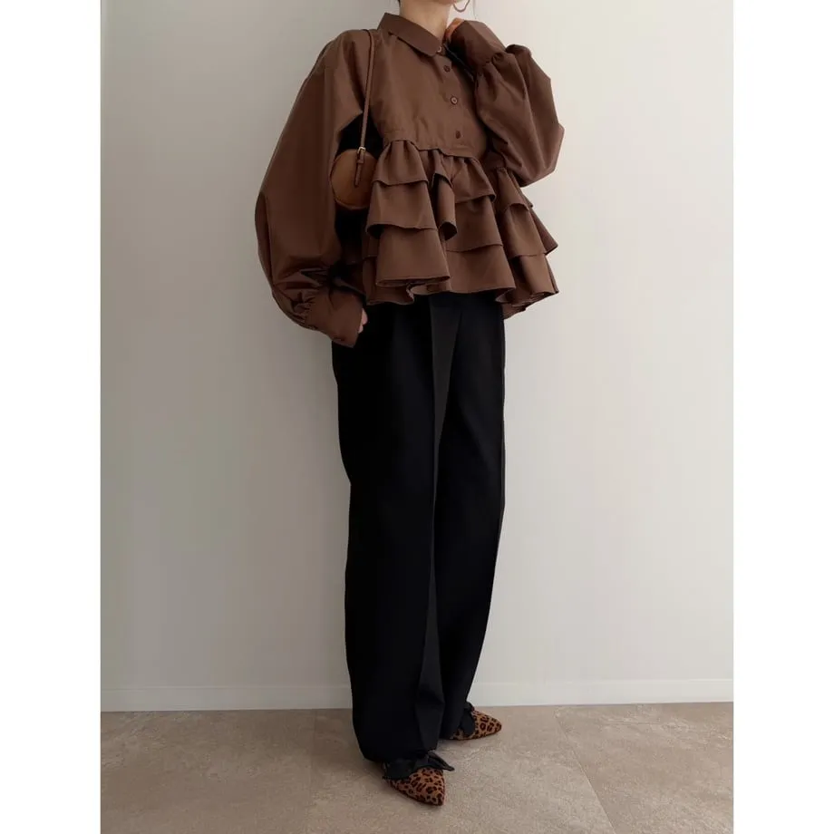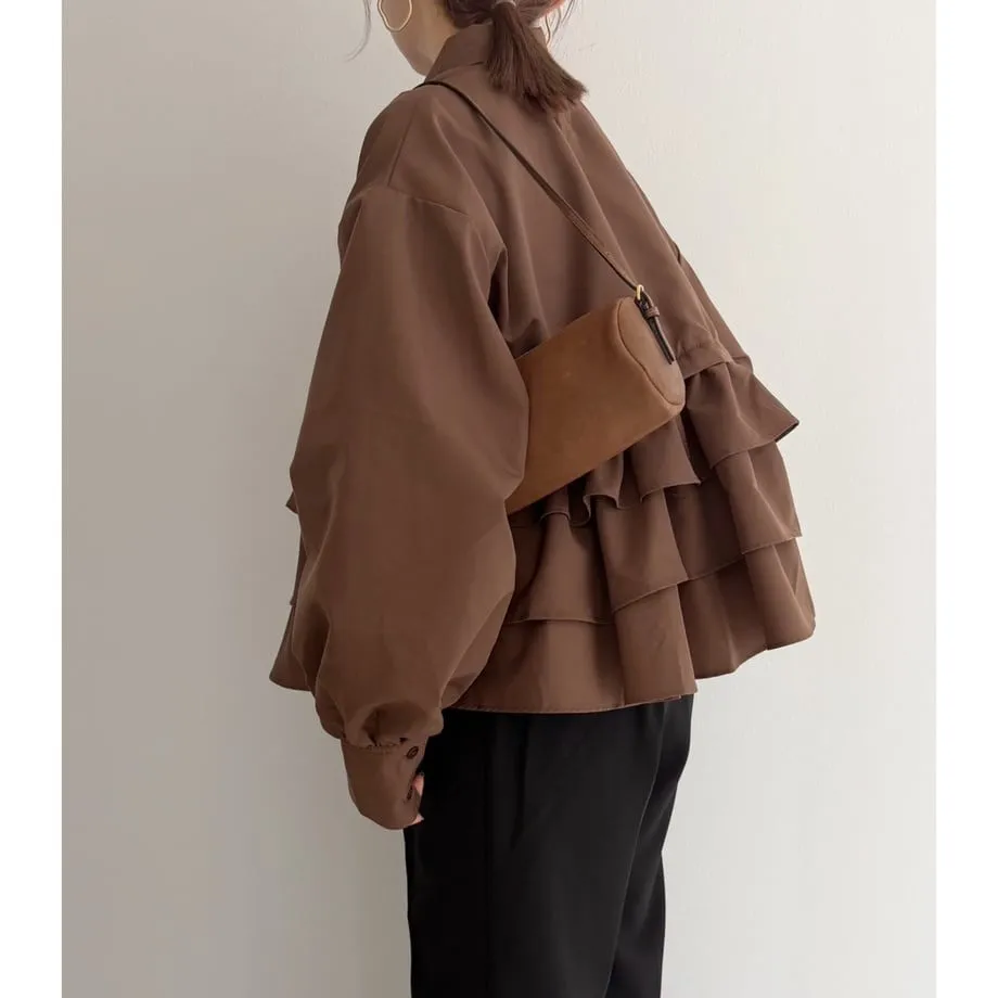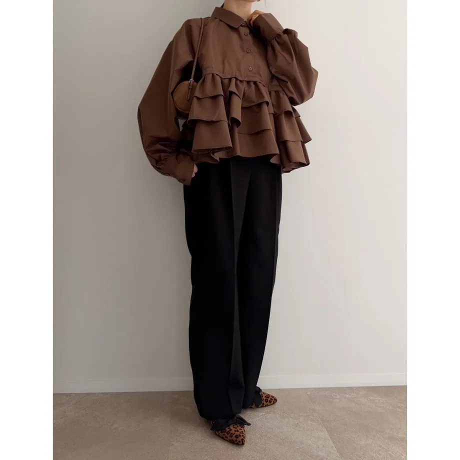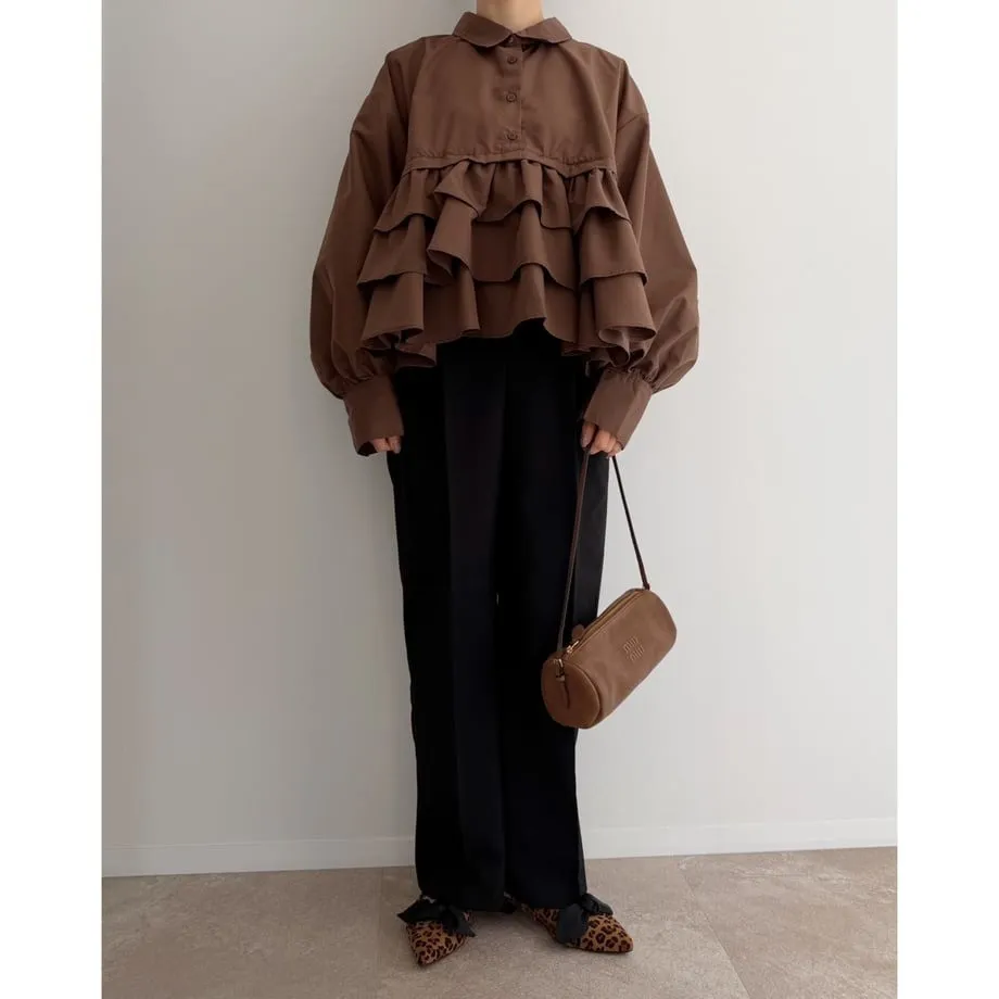 造型感的浪漫層次荷葉短版襯衫