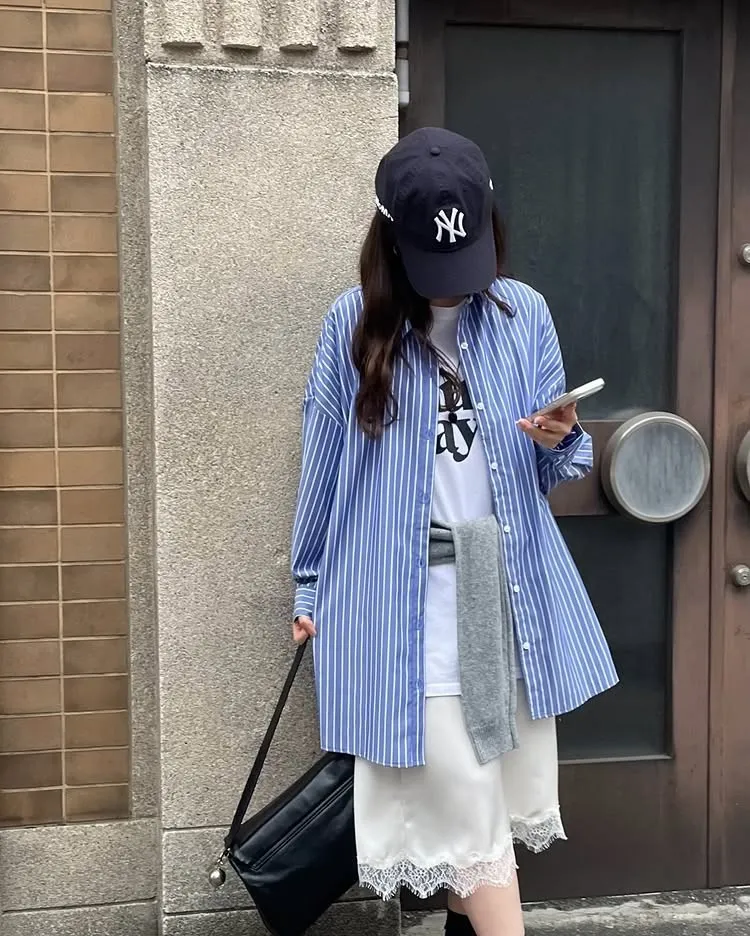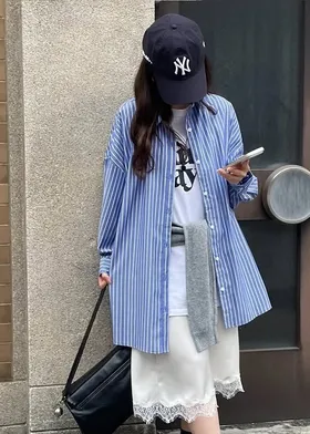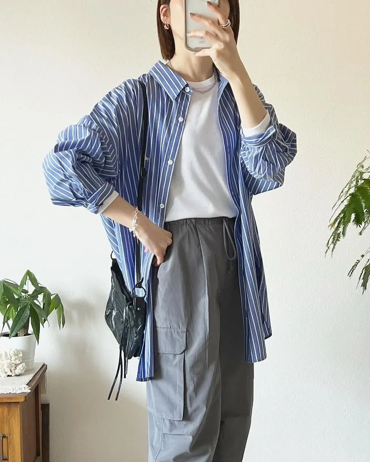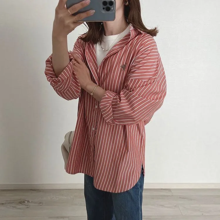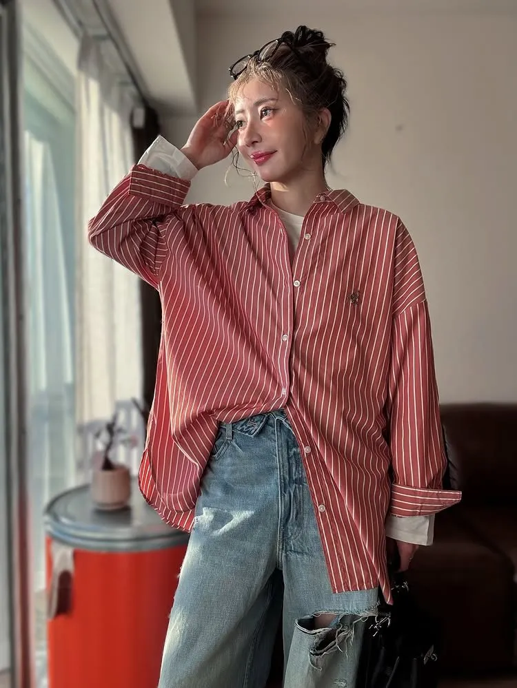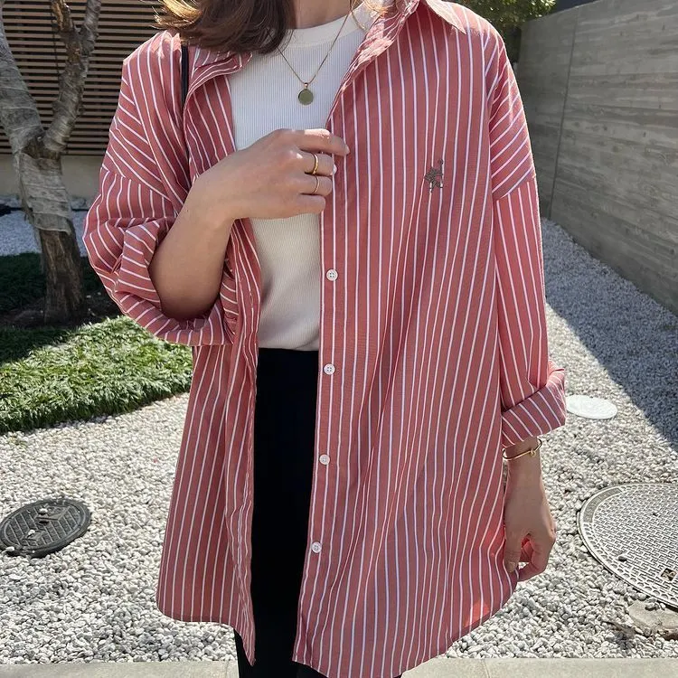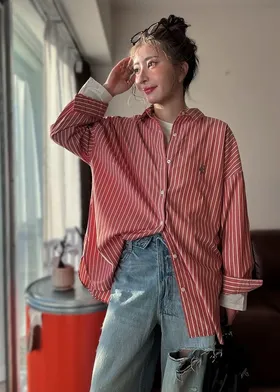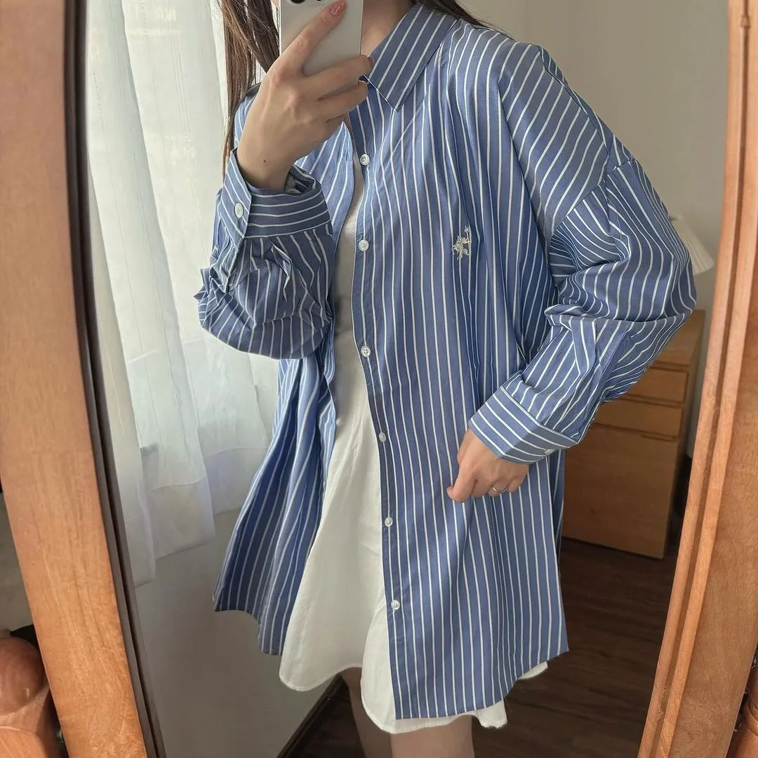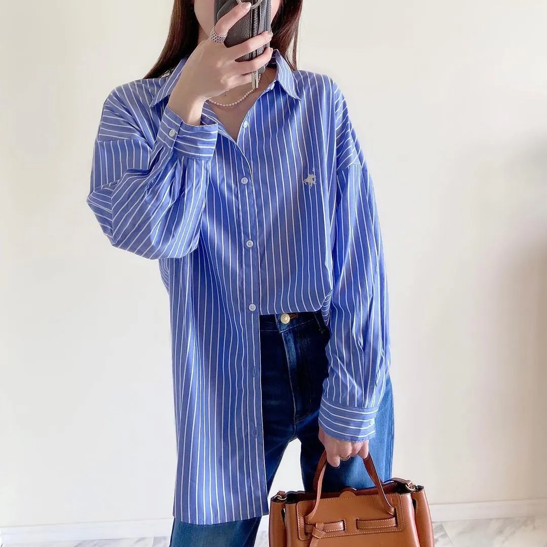 這件一定要入手~超好穿~而且春天非常好搭!!去年有販售過短袖~沒想到春天發售的長袖~價格可愛一點點耶配色線條很好看~偏比較中性風中長版~當外套也好好看~長度很OK面料有微微挺度有一個經典的小LOGO經典色販售喔好氣色橘紅條/清爽藍條<日妞也都是穿這2色~好好看>這款版型是比較寬鬆的~不用特別選大喔小幫著用M號~長度很夠~完全可以蓋住屁股