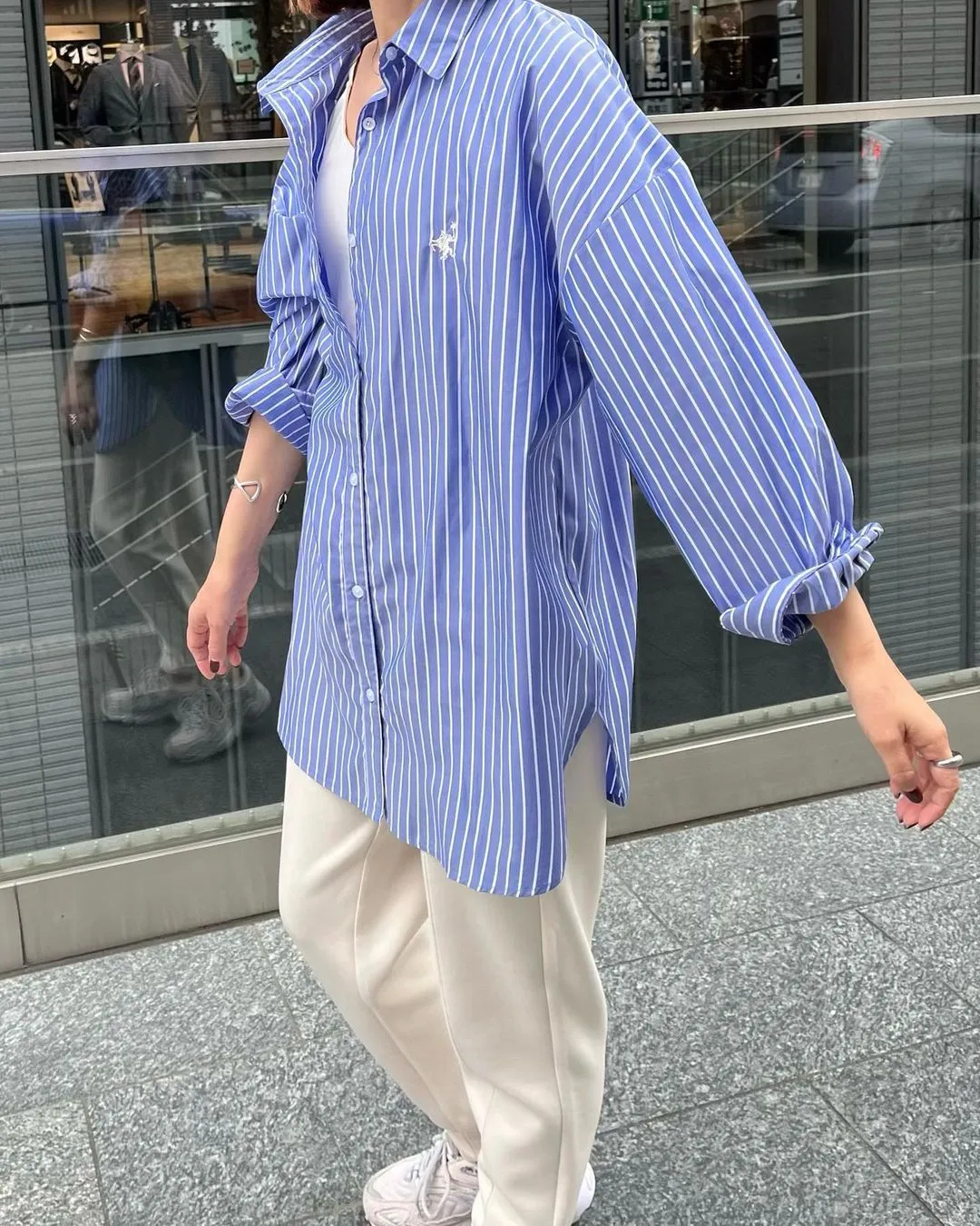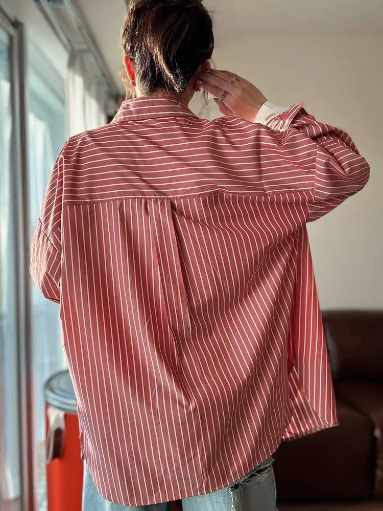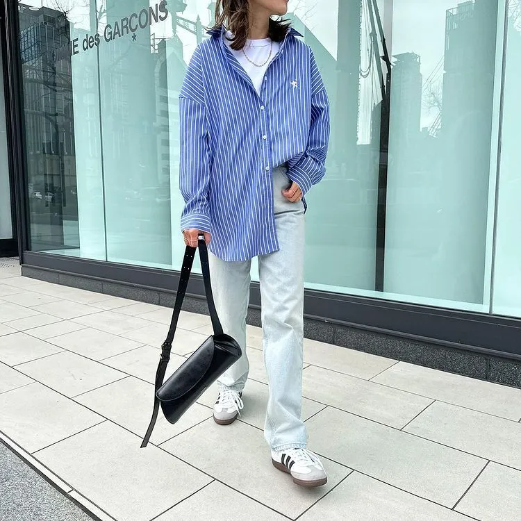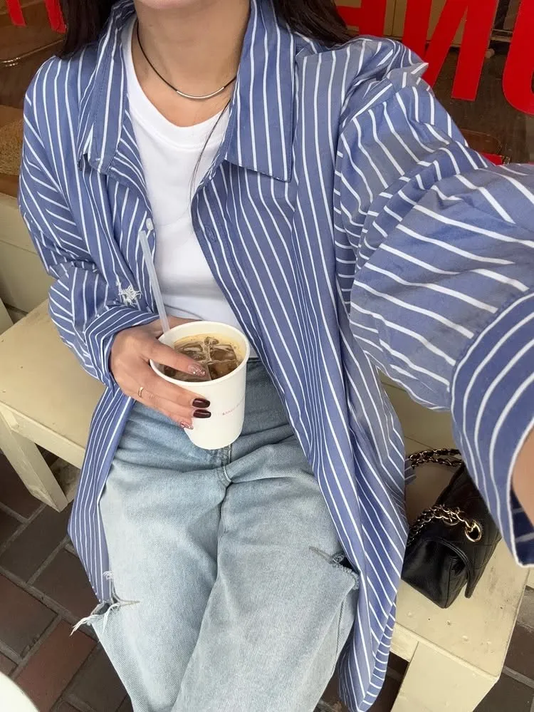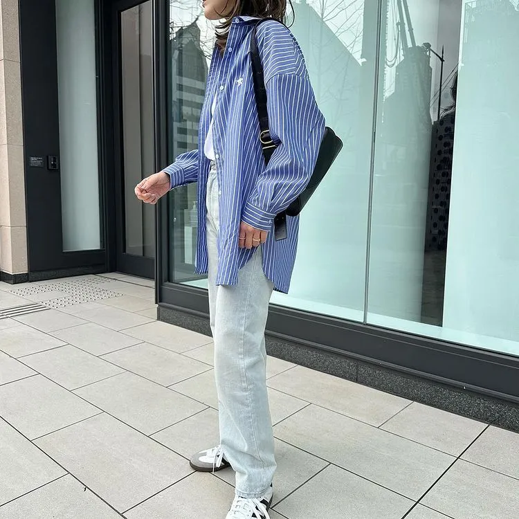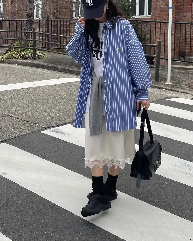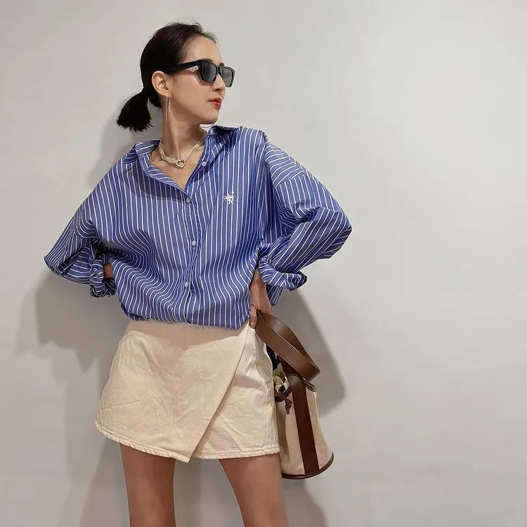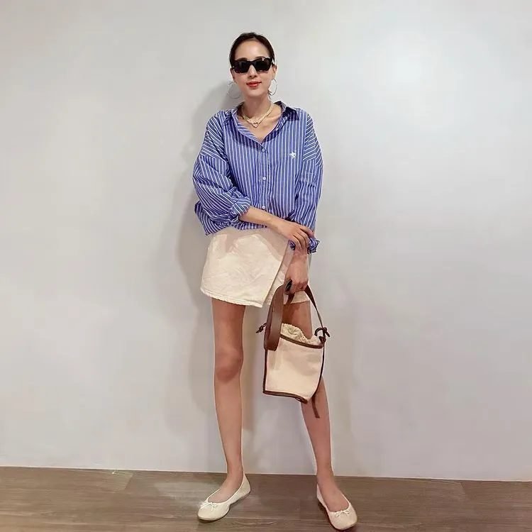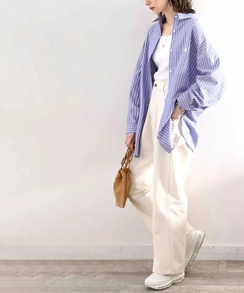 這件一定要入手~超好穿~而且春天非常好搭!!去年有販售過短袖~沒想到春天發售的長袖~價格可愛一點點耶配色線條很好看~偏比較中性風中長版~當外套也好好看~長度很OK面料有微微挺度有一個經典的小LOGO經典色販售喔好氣色橘紅條/清爽藍條<日妞也都是穿這2色~好好看>這款版型是比較寬鬆的~不用特別選大喔小幫著用M號~長度很夠~完全可以蓋住屁股
