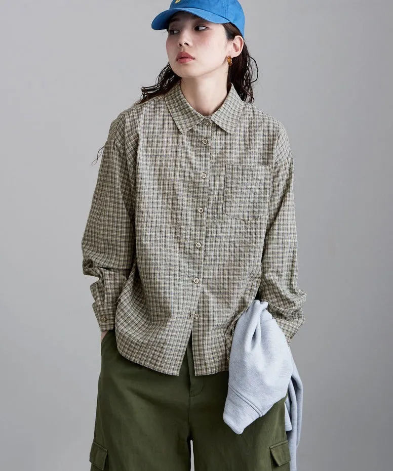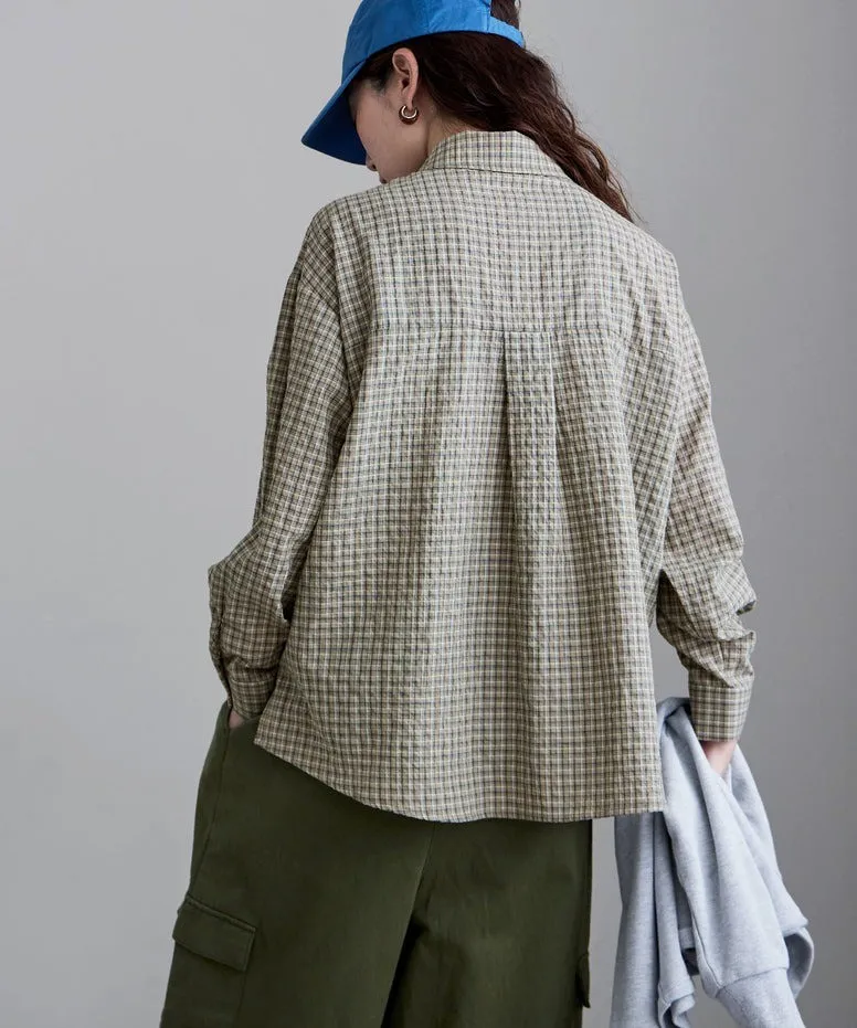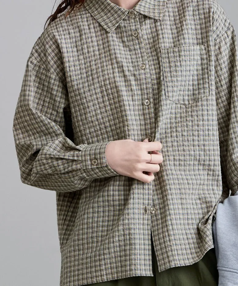 春新品~柔軟男孩感小格紋手揉棉料襯衫