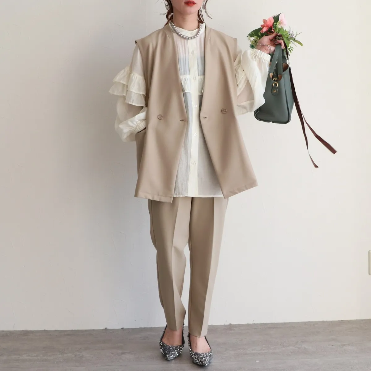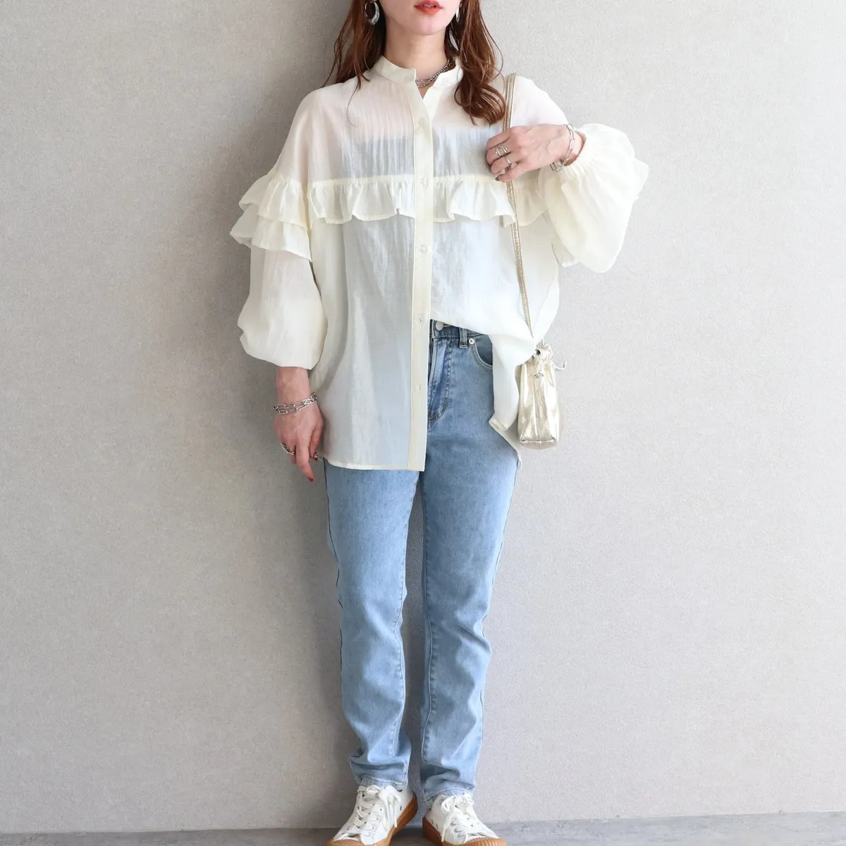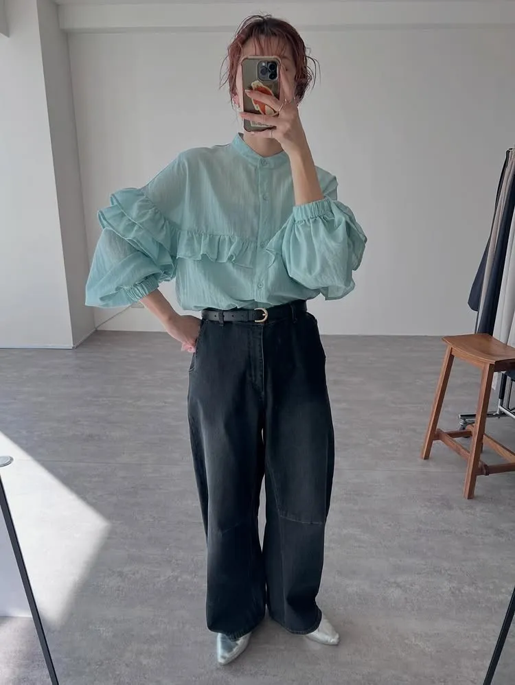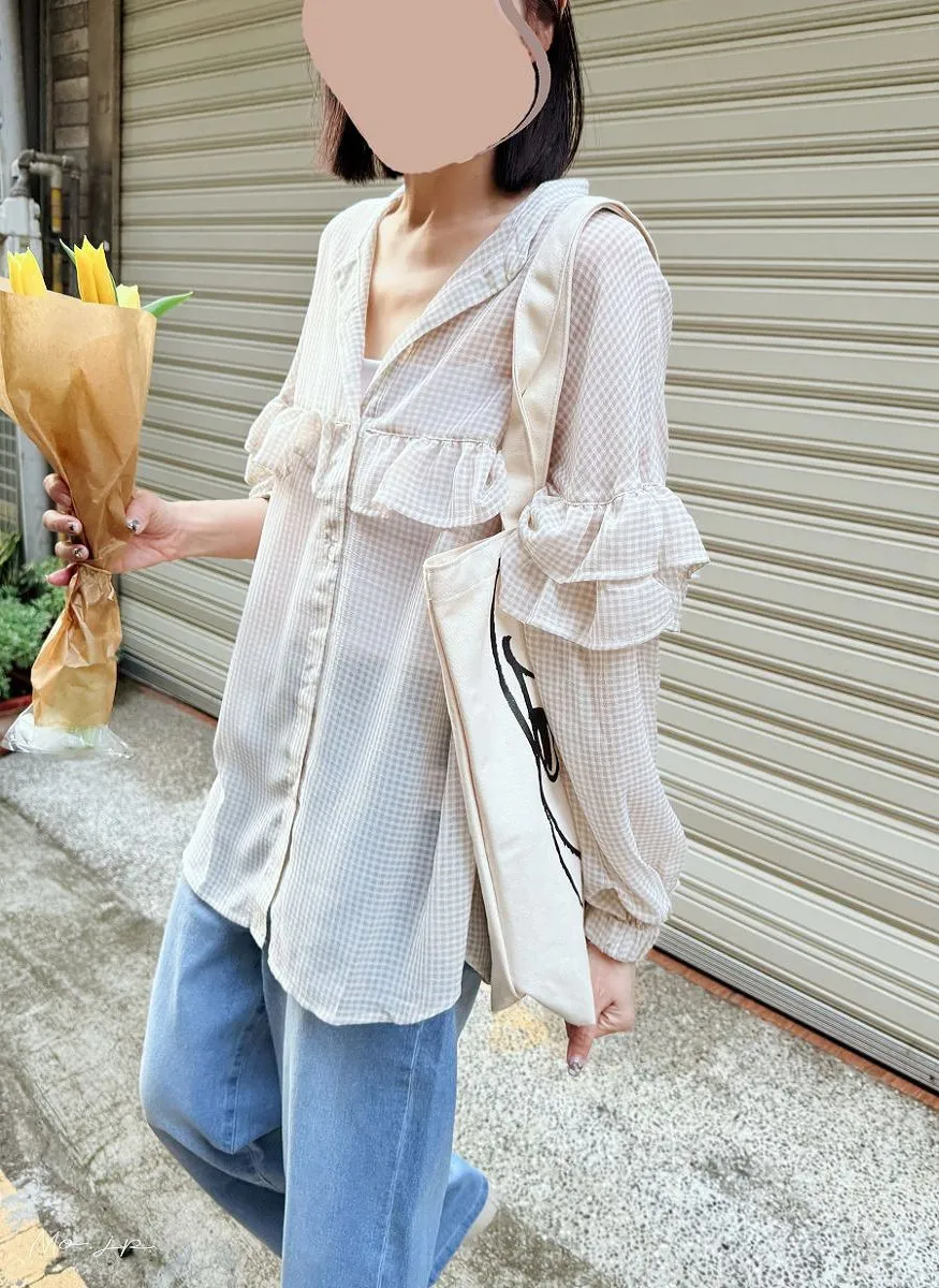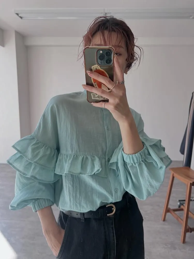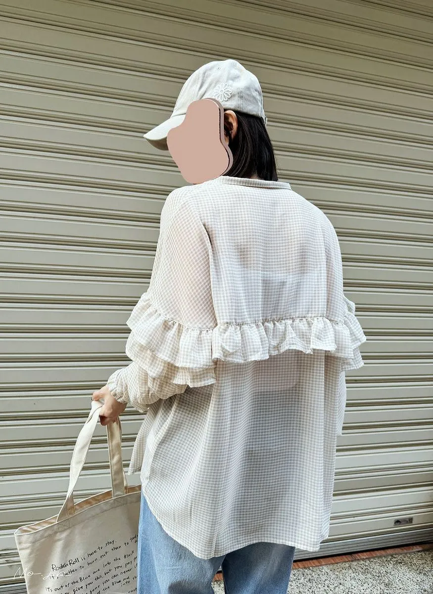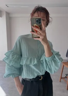 延伸到袖子雙層荷葉邊設計