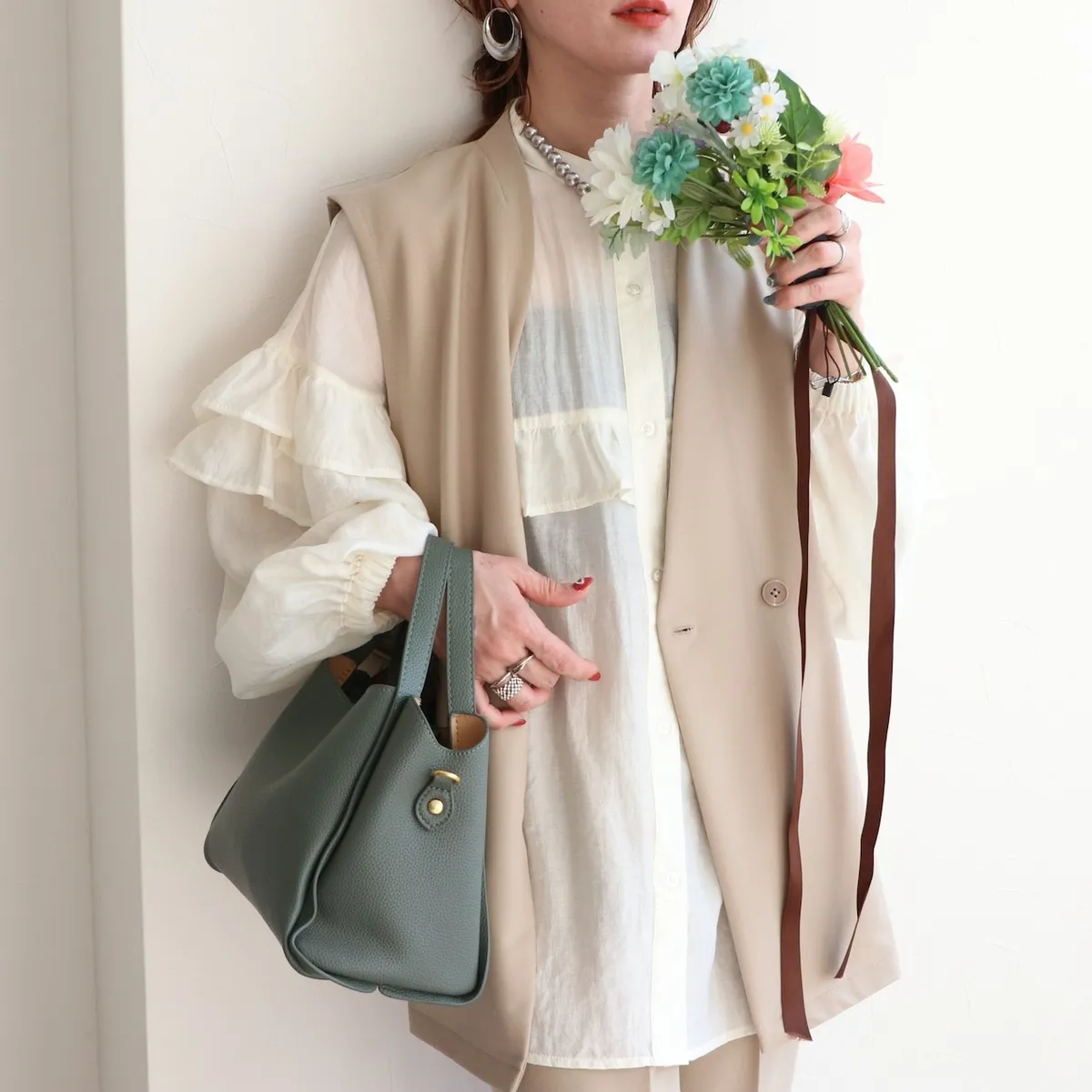 胸前浪漫感波浪荷葉造型