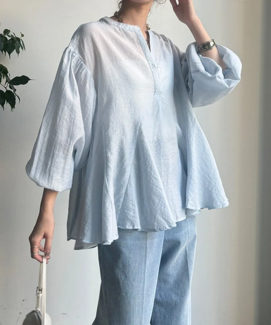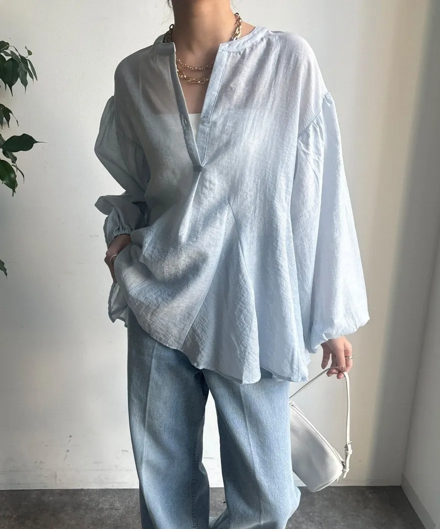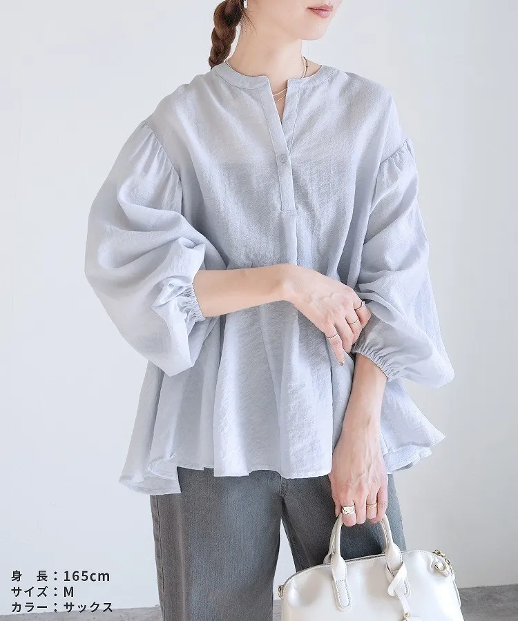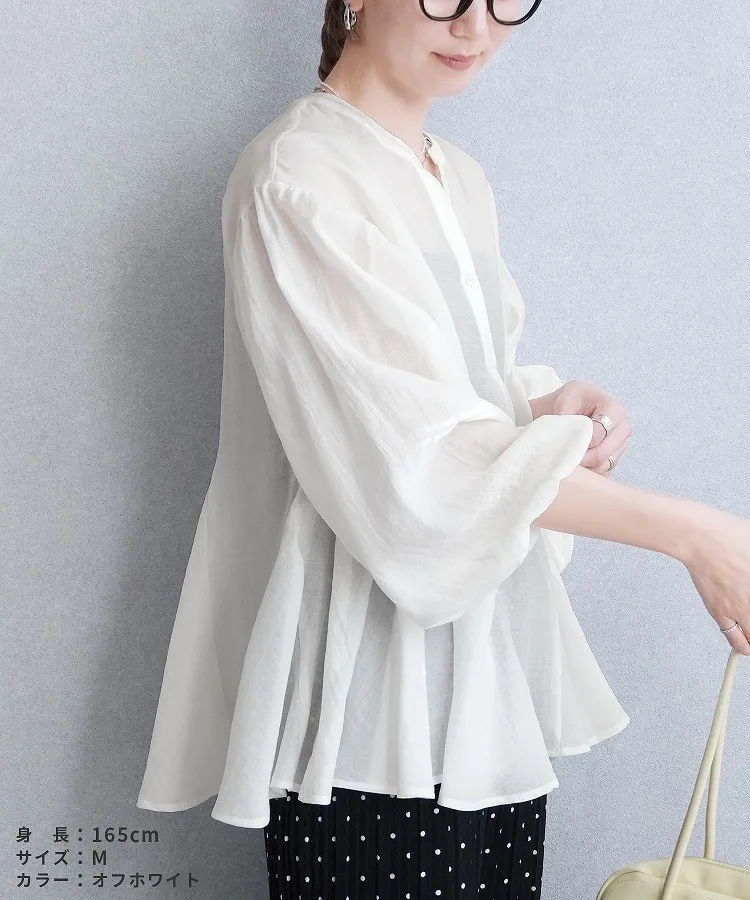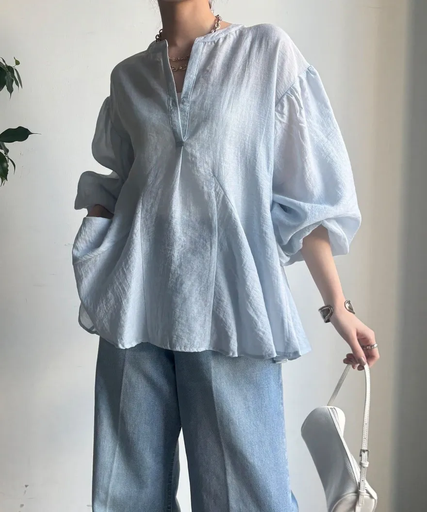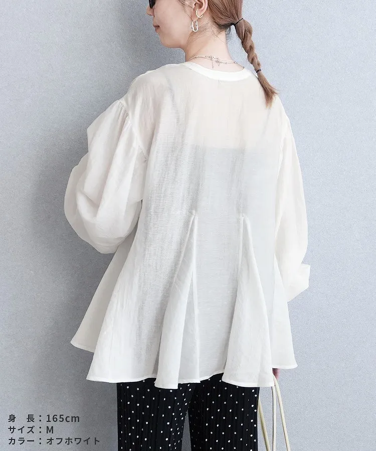 春新品~鑰匙V領飄飄魚尾小傘版澎袖襯衫