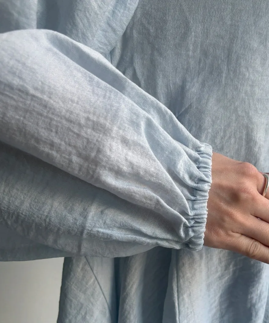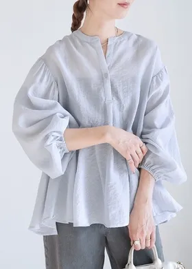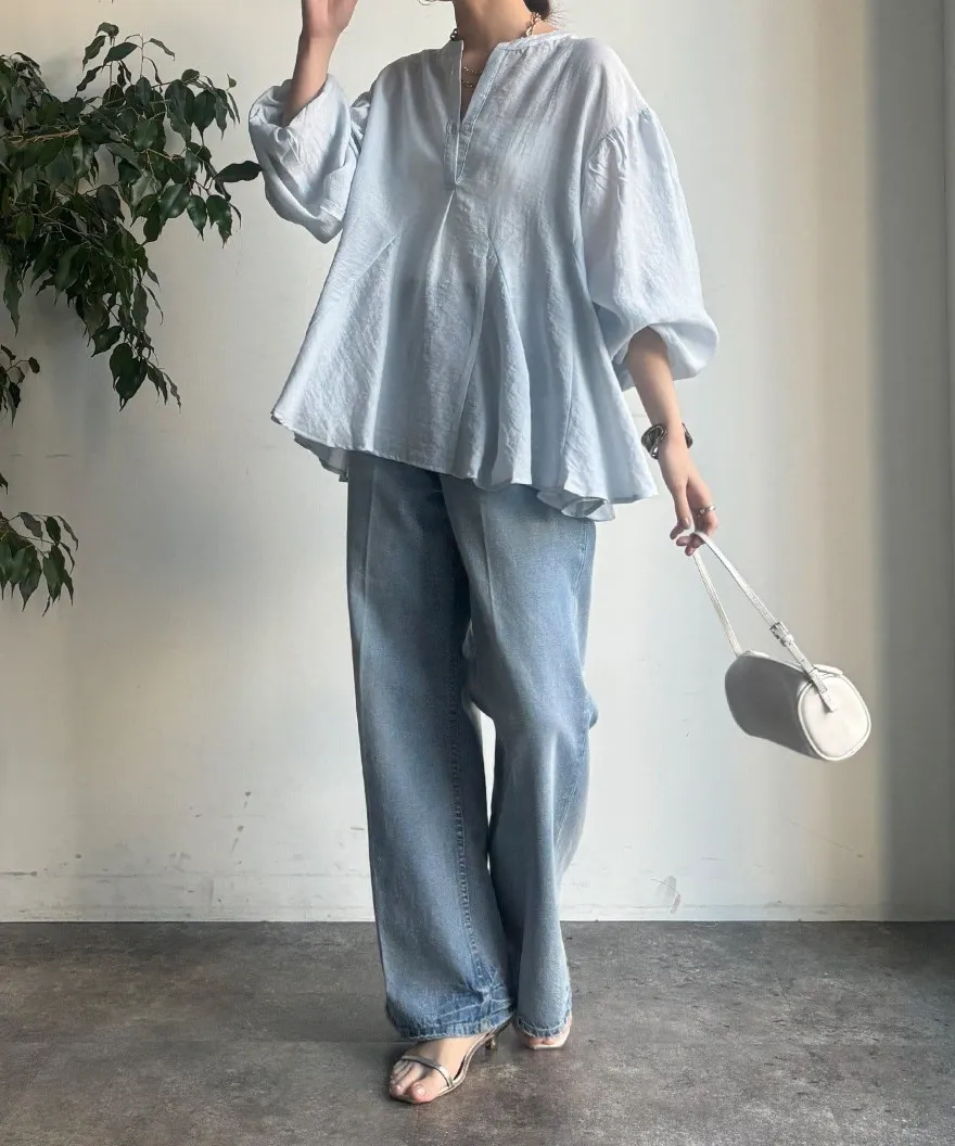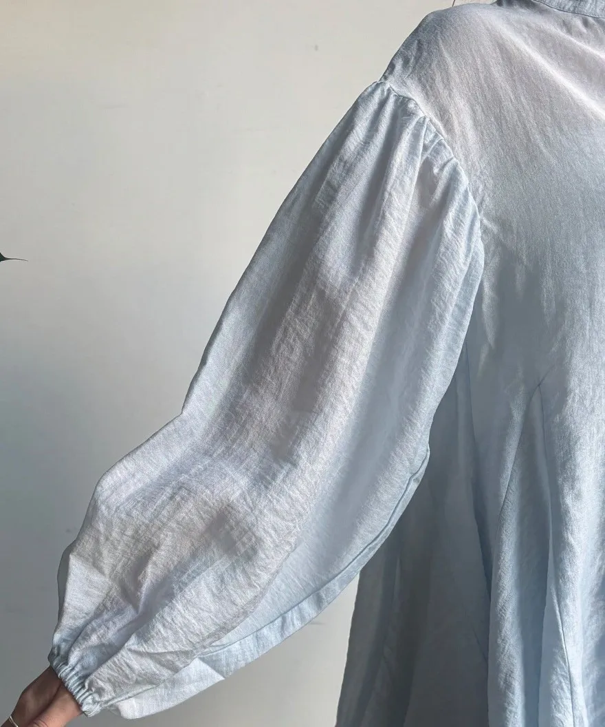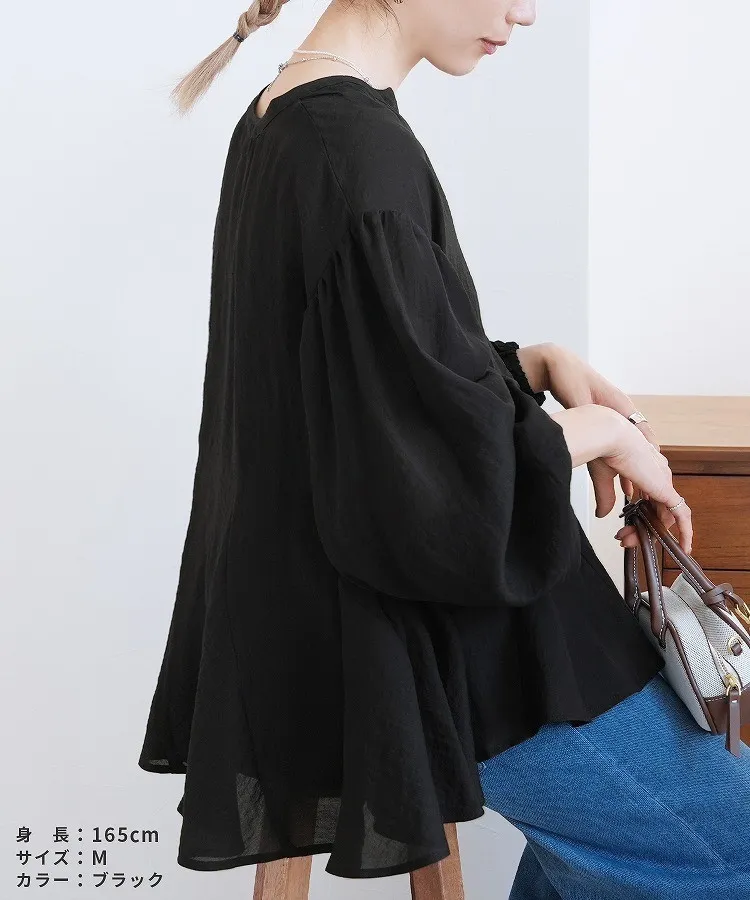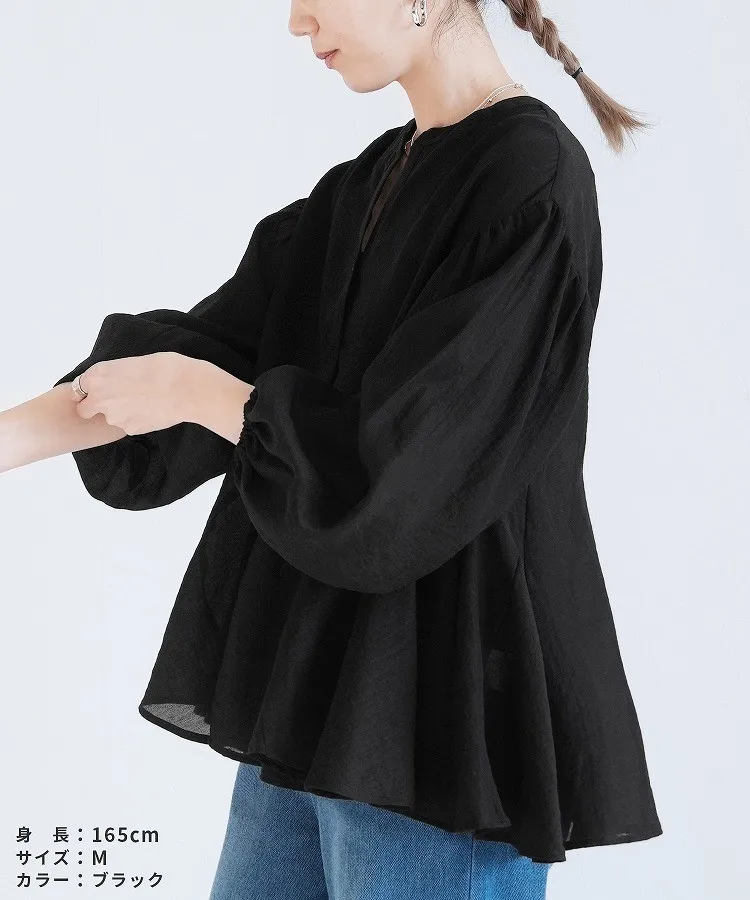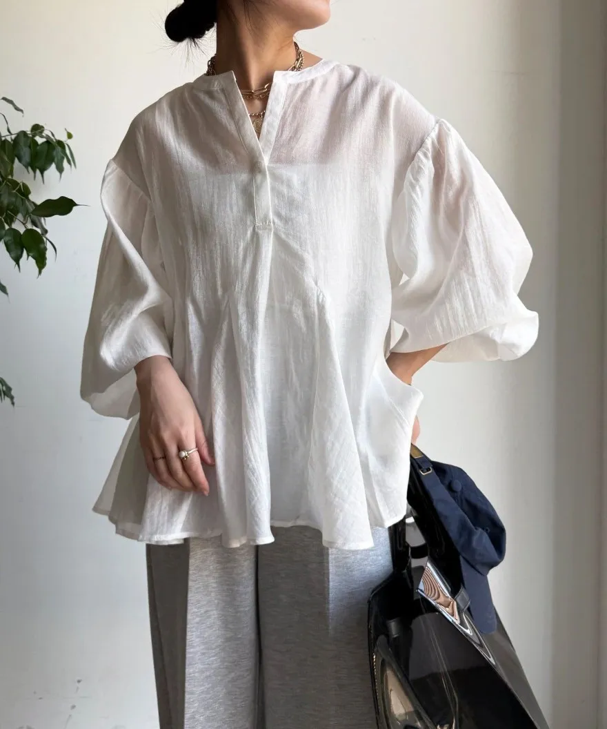 春新品~鑰匙V領飄飄魚尾小傘版澎袖襯衫